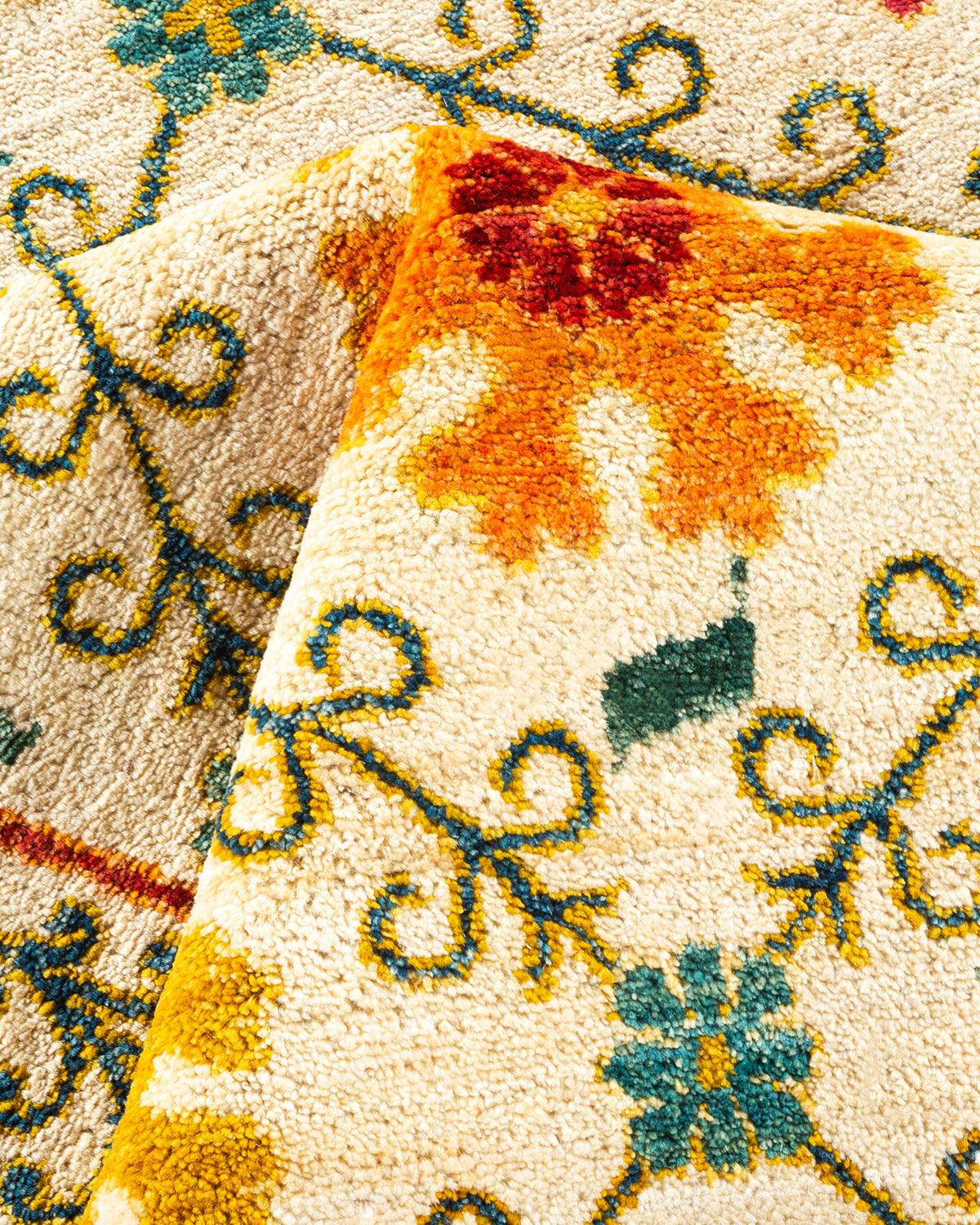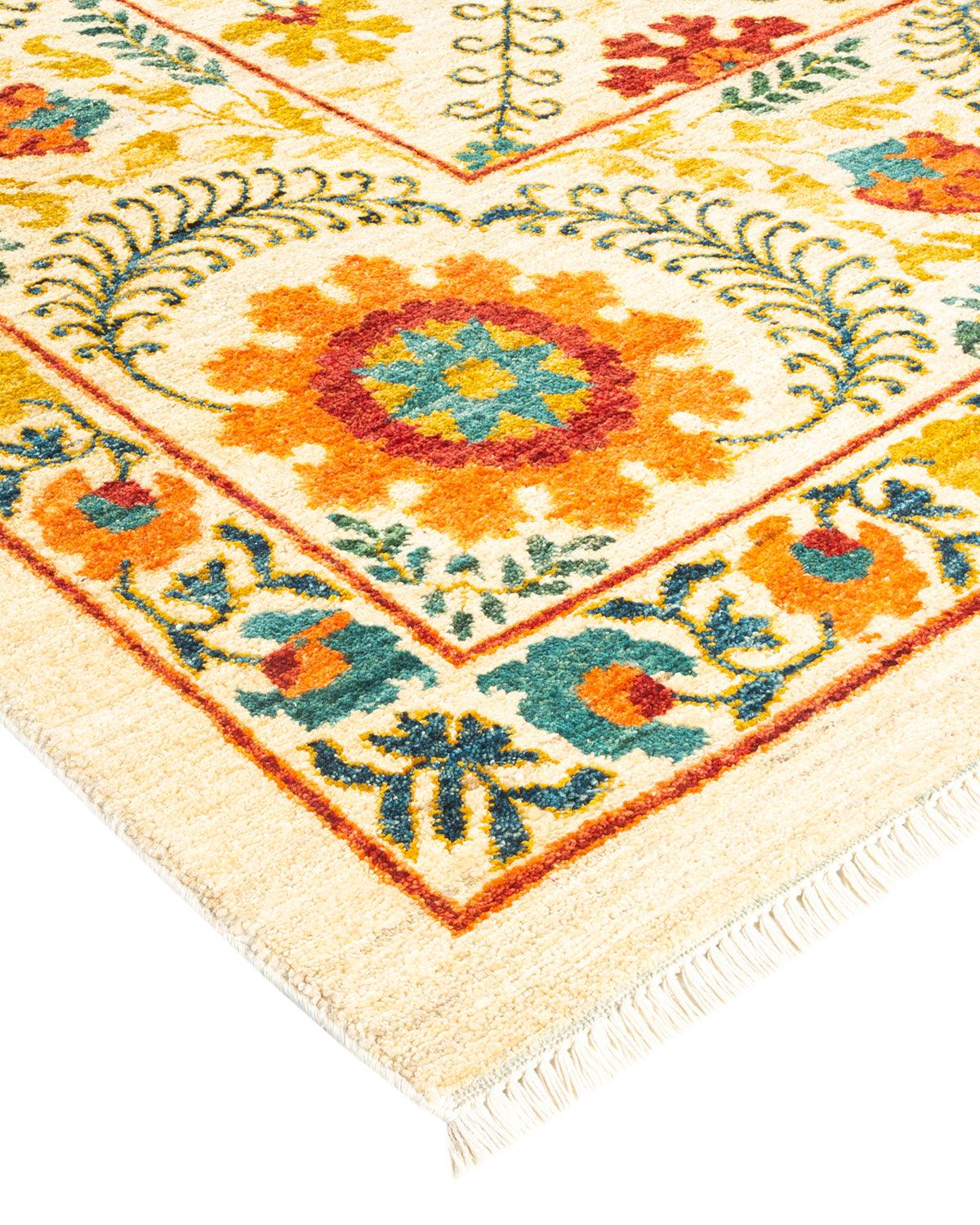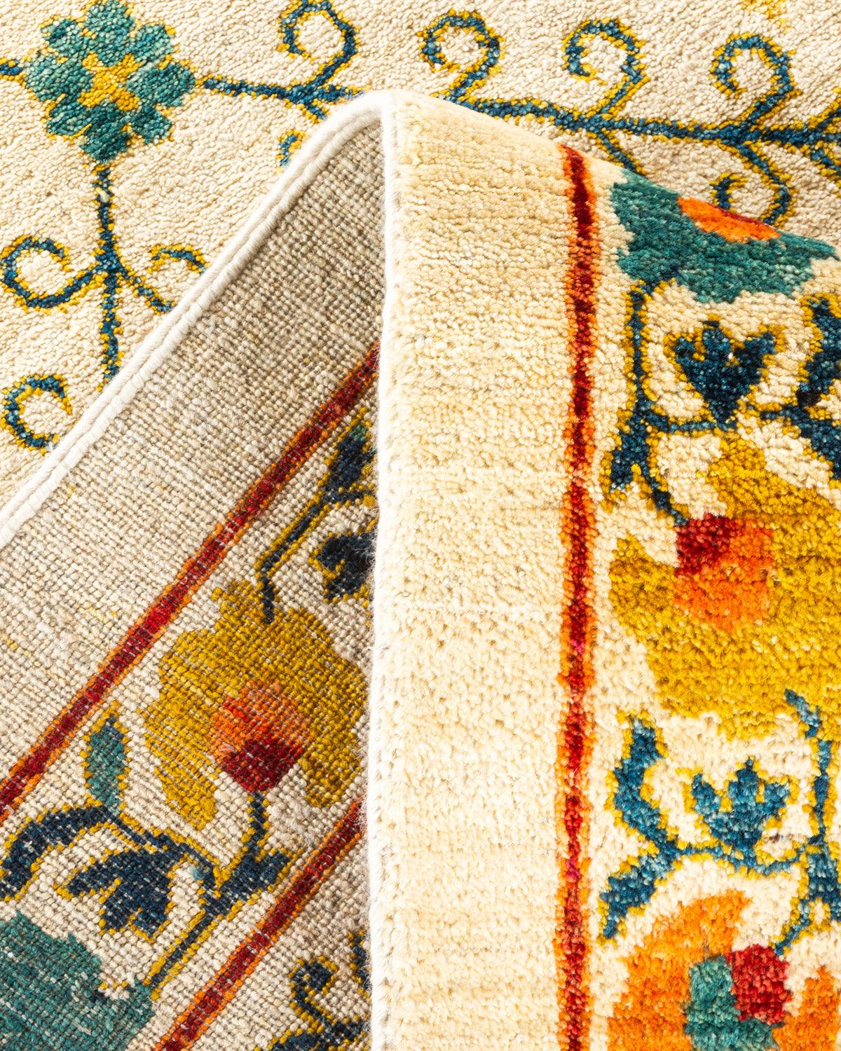 Contemporary Hand Knotted Suzani Floral Ivory Area Rug 12' 5" x 19' 1"