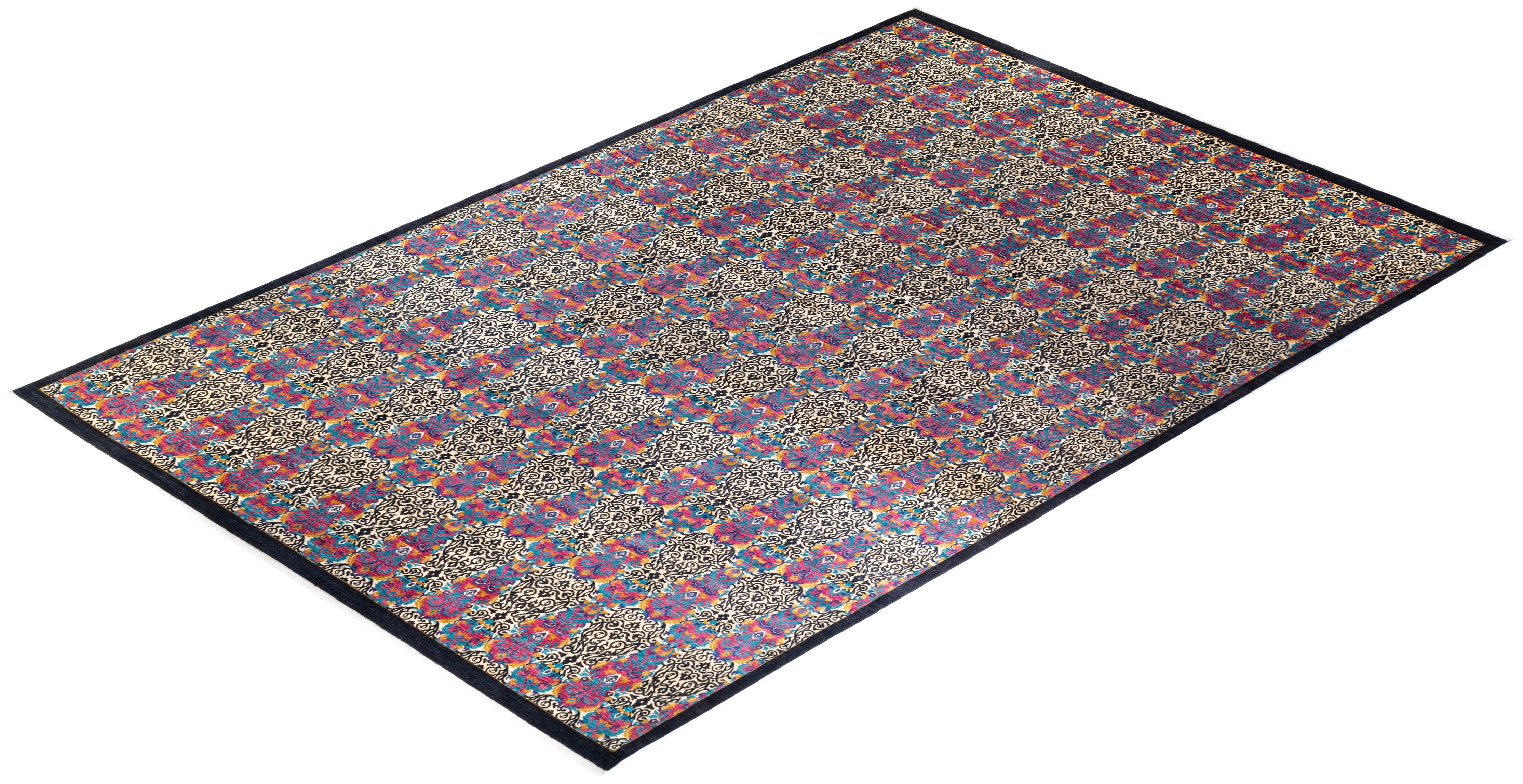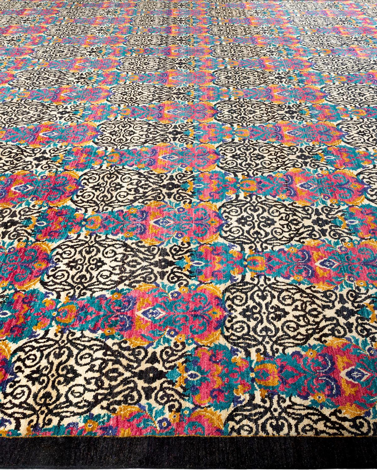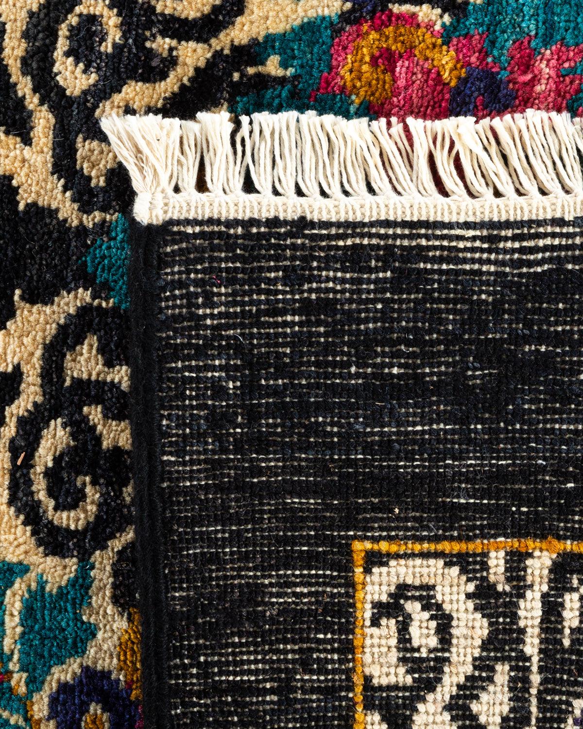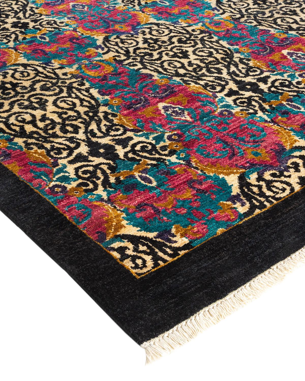 Contemporary Hand Knotted Suzani Floral Black Area Rug 11' 10" x 18' 1"