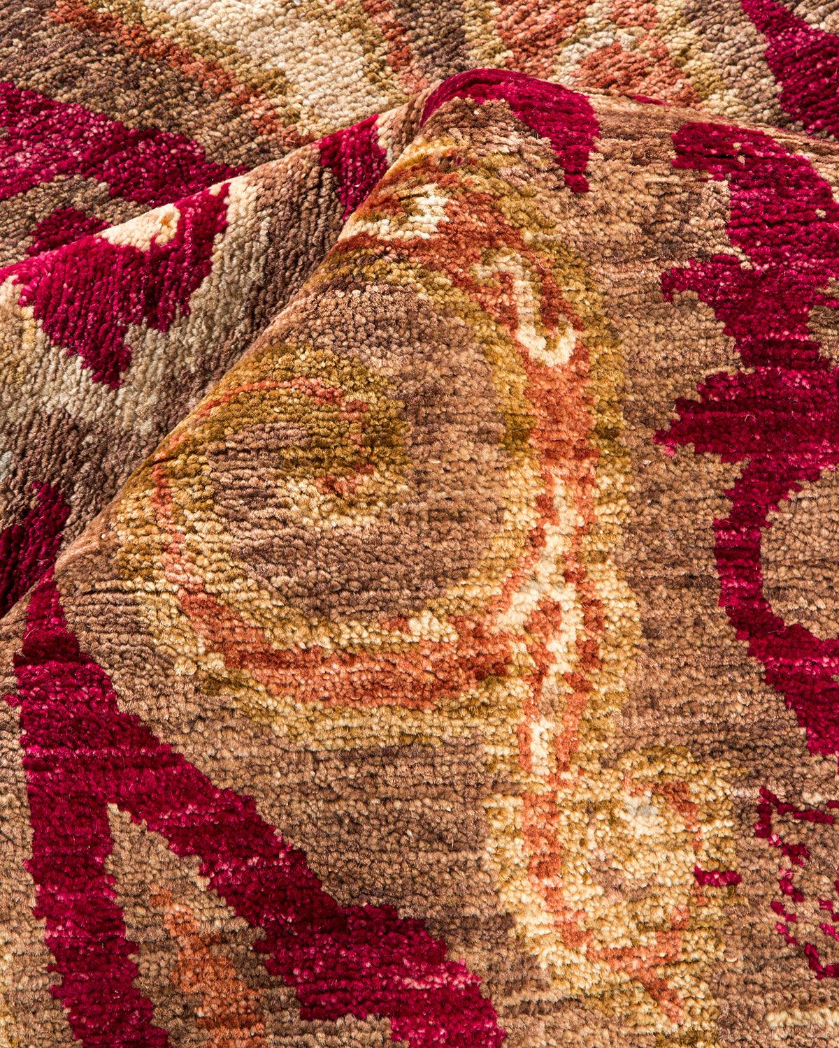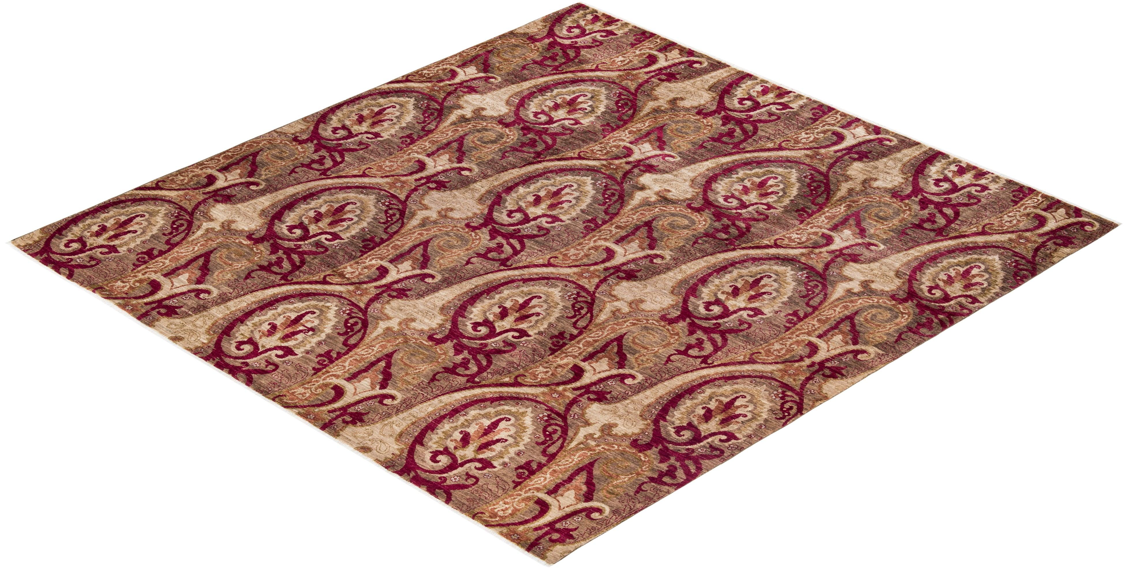 Contemporary Hand Knotted Suzani Paisley Brown Square Area Rug 8' 10" x 9' 2"
