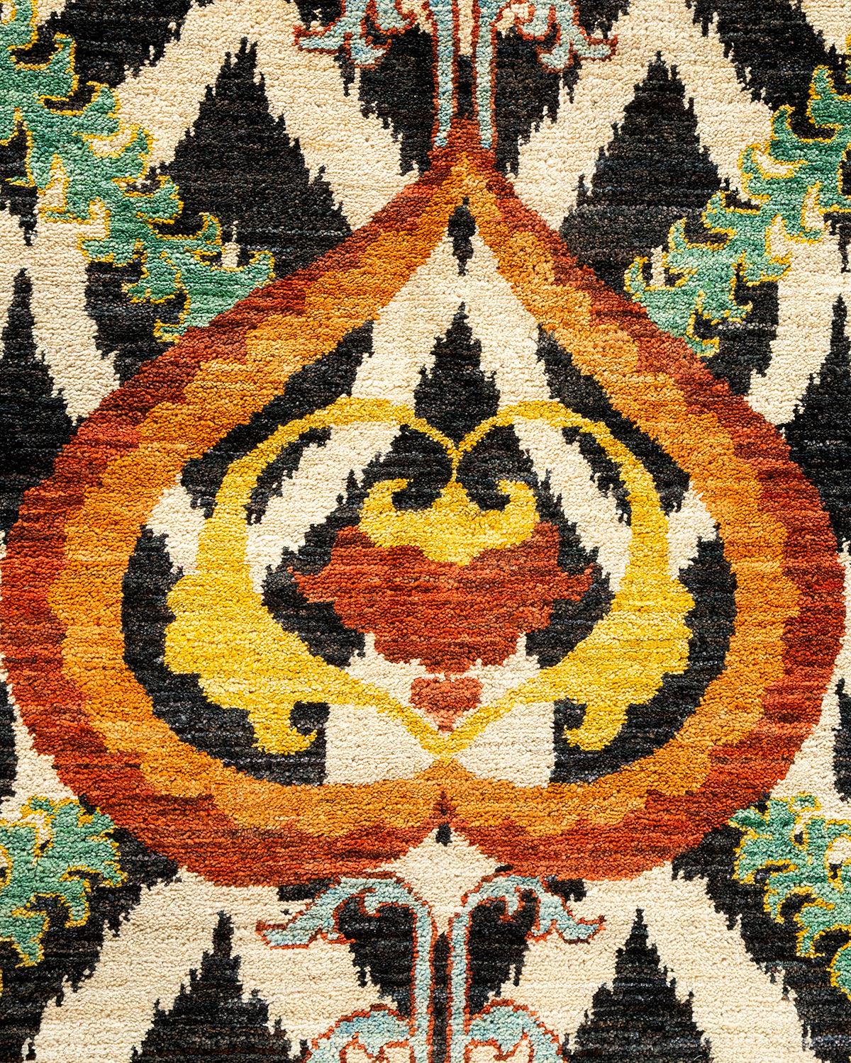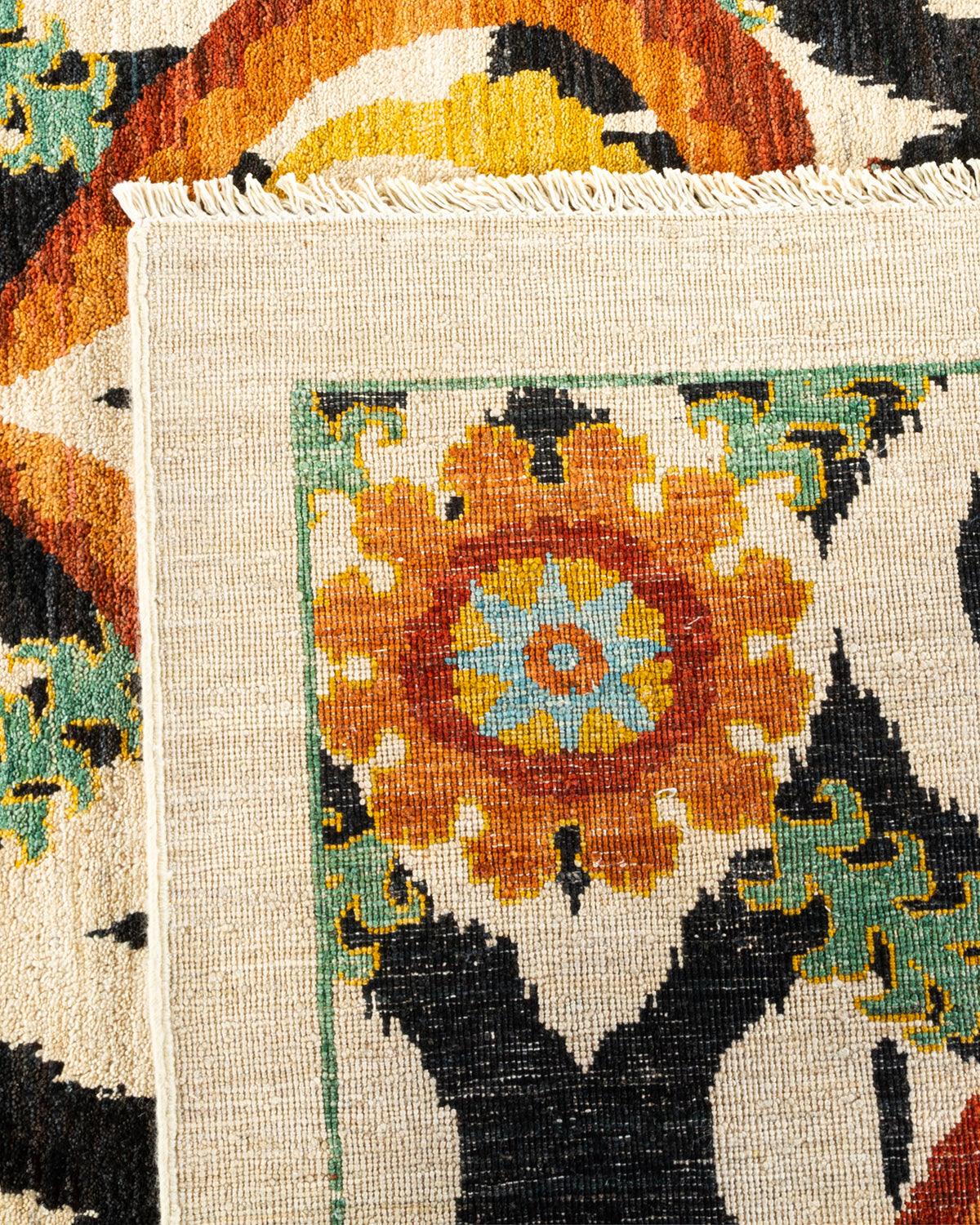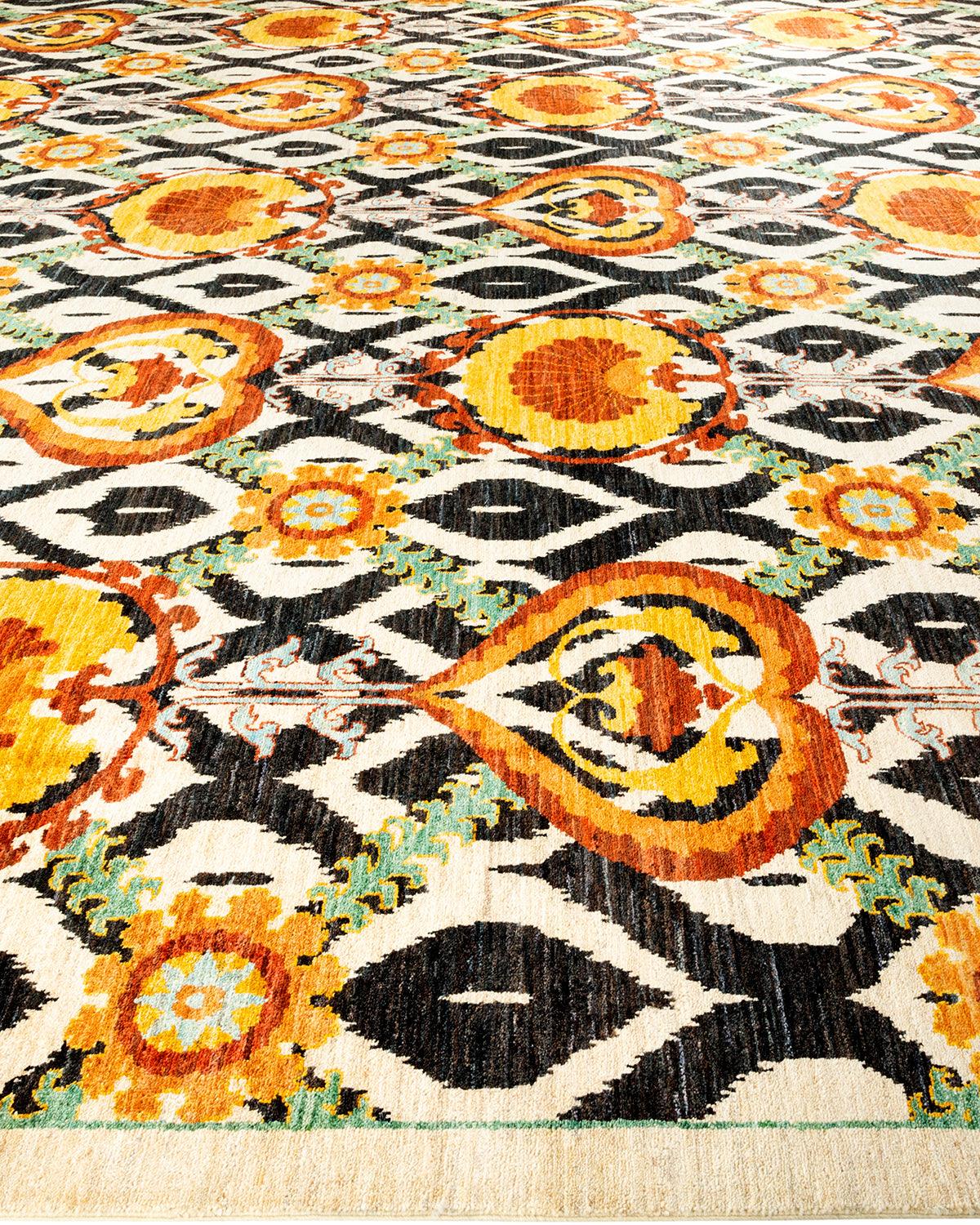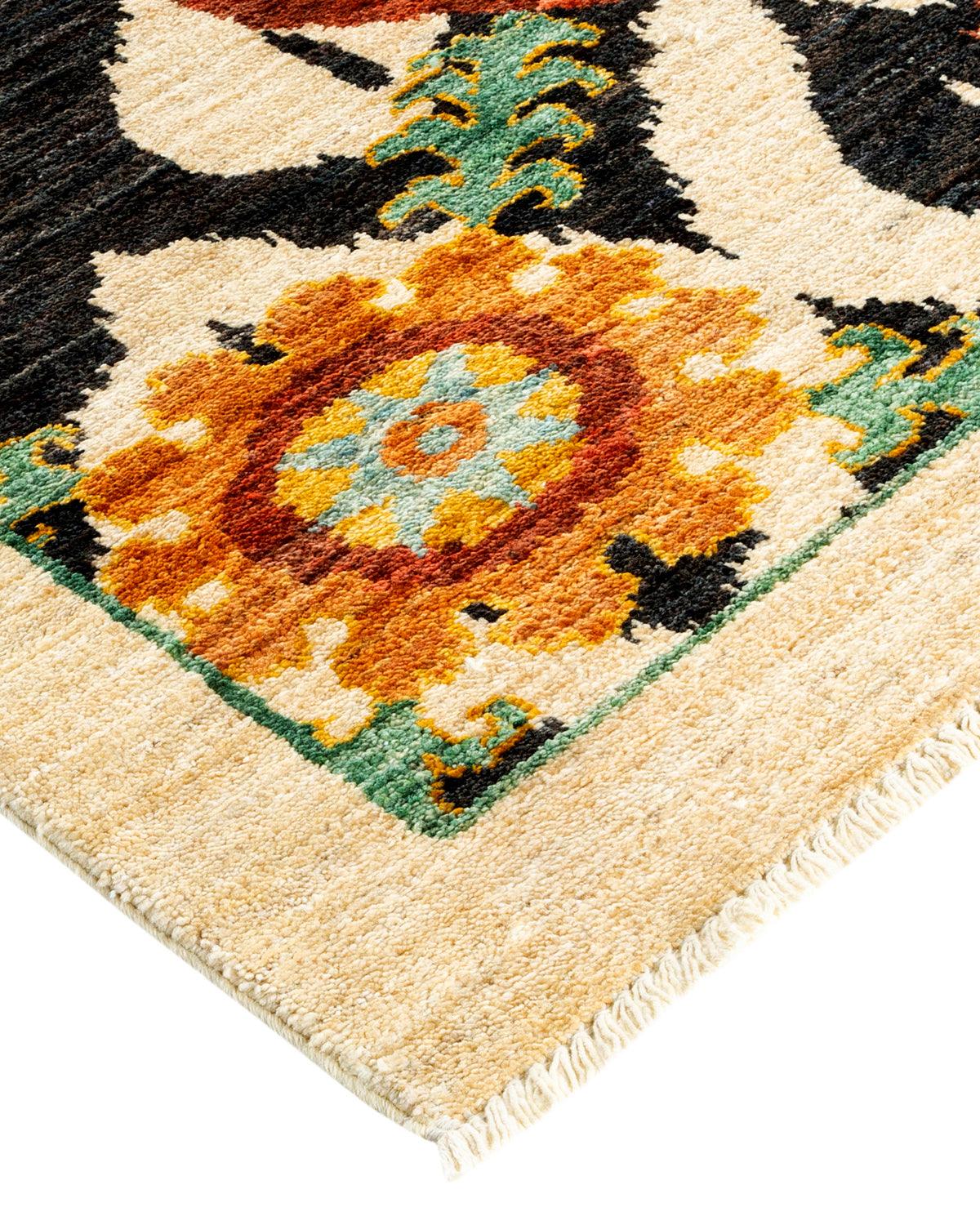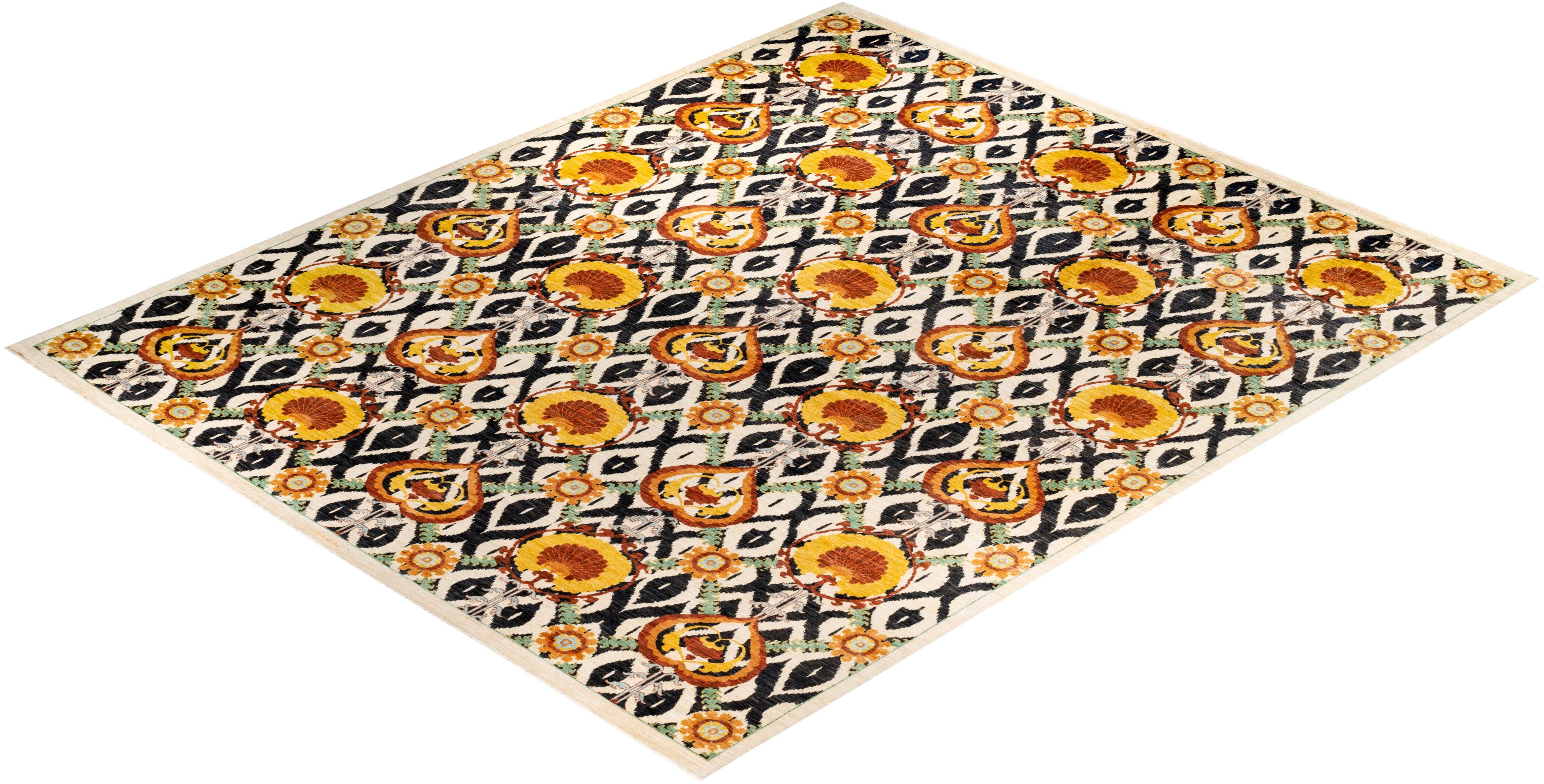 The meticulous art of hand-embroidered textiles from Uzbekistan tribes inspired the Suzani Collection of rugs. Bold motifs, particularly pomegranates, the sun, and the moon, are frequent elements, their simple yet compelling designs made even more spectacular in wool and silk. Once traditional pieces of a dowry, these rugs will easily become part of families for years to come.