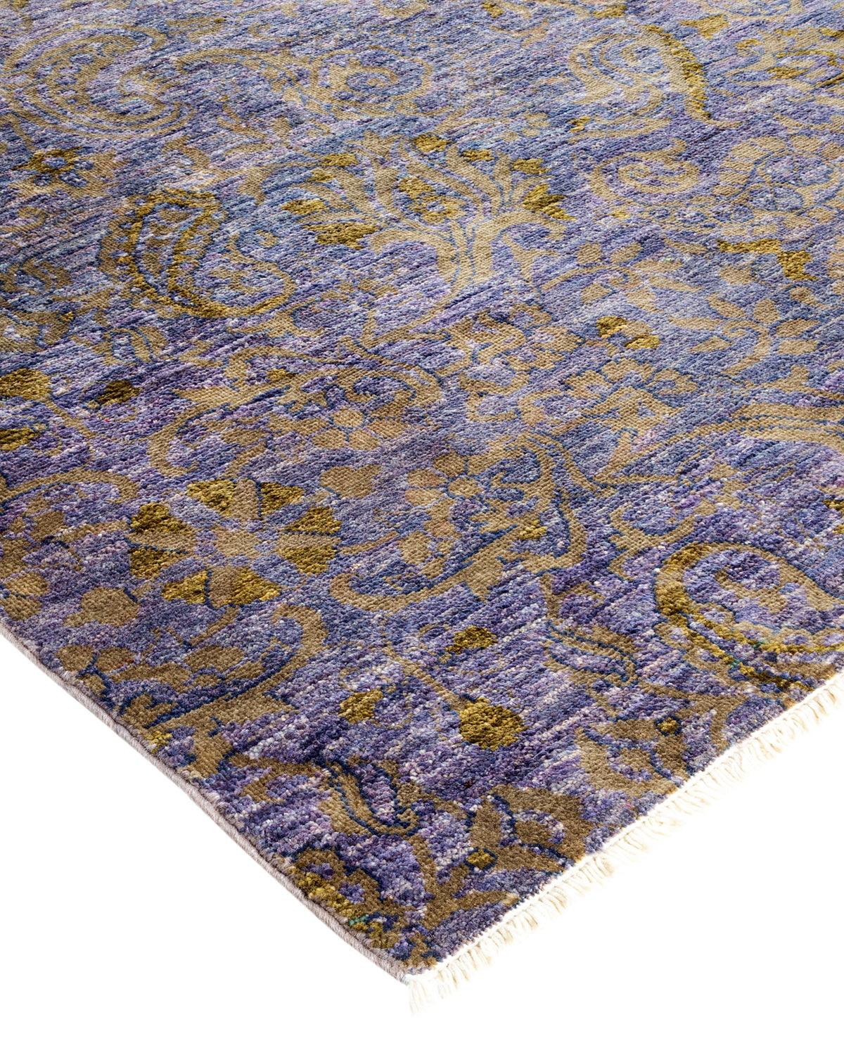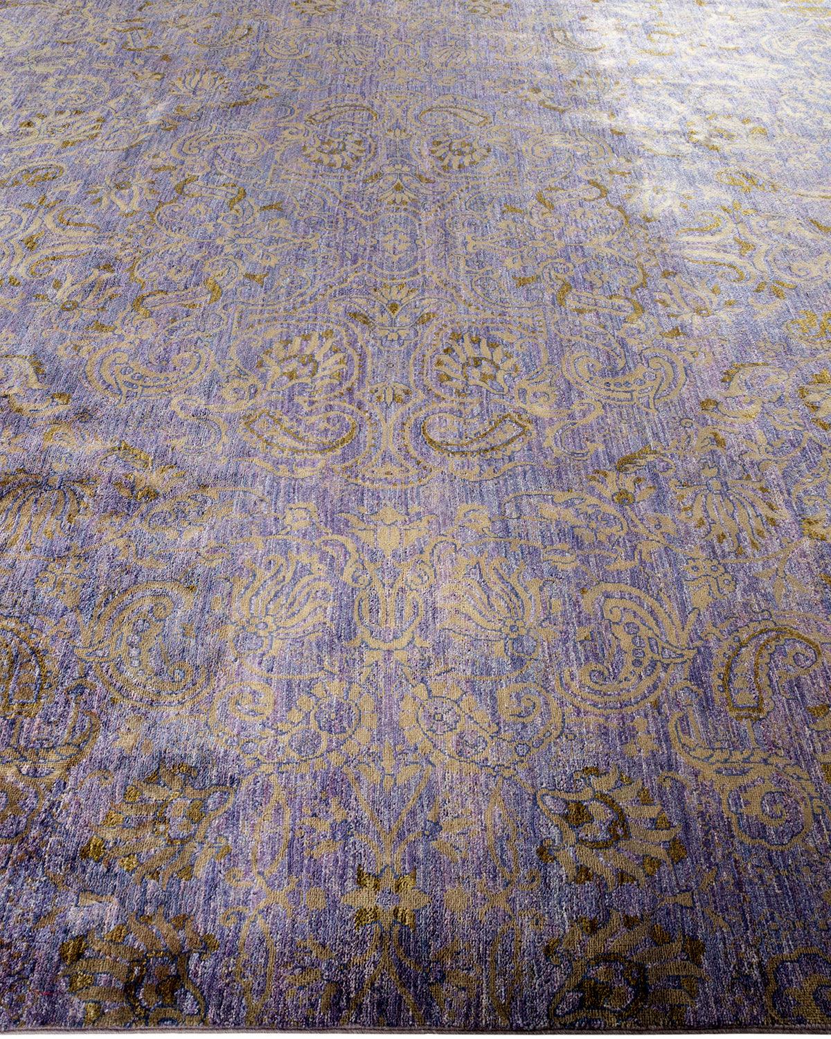 Contemporary Hand Knotted Suzani Floral Purple Area Rug 9' 1" x 11' 8"