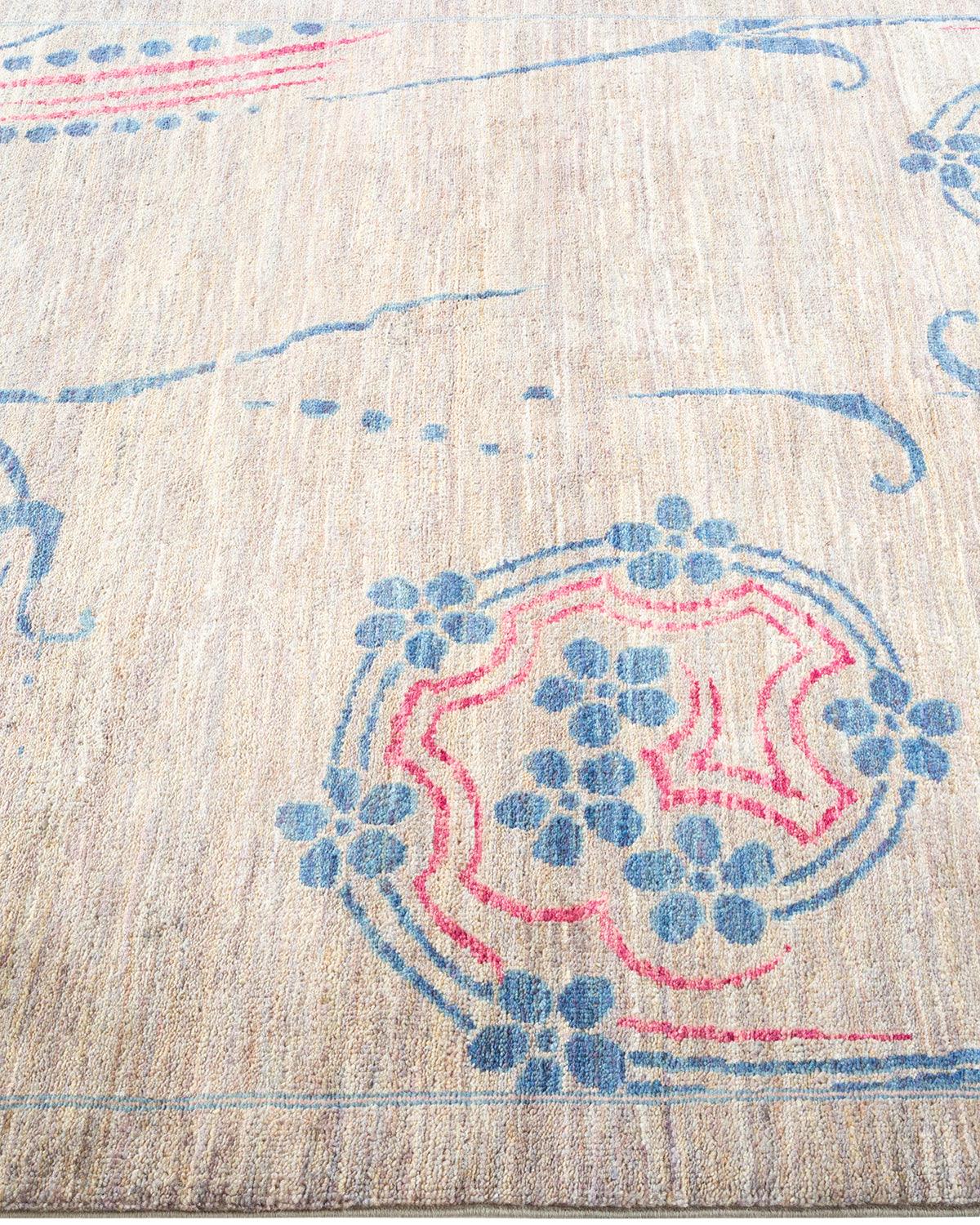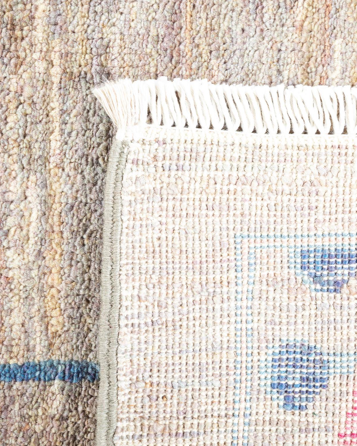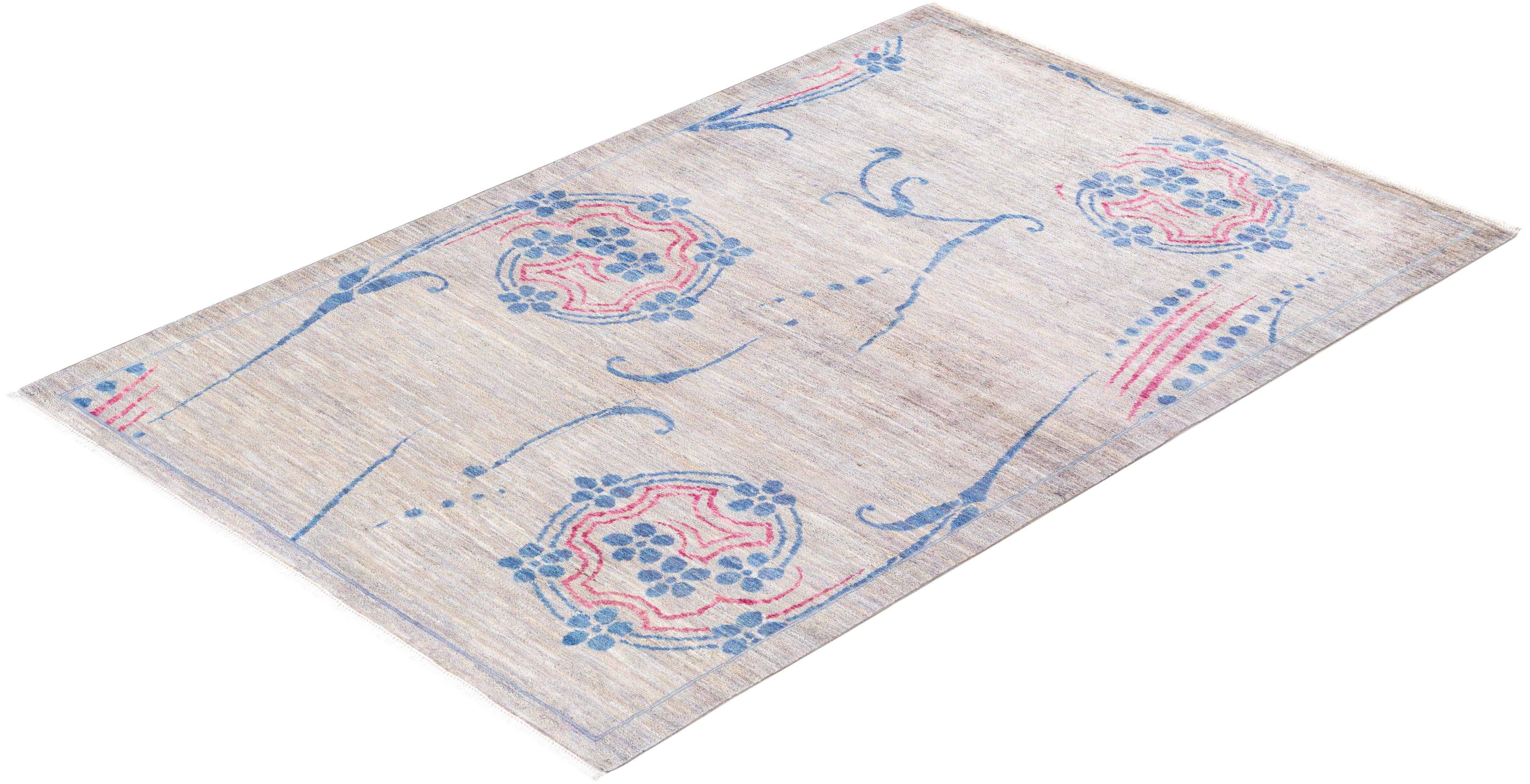 Contemporary Hand Knotted Eclectic Floral Gray Area Rug 4' 4" x 6' 7"