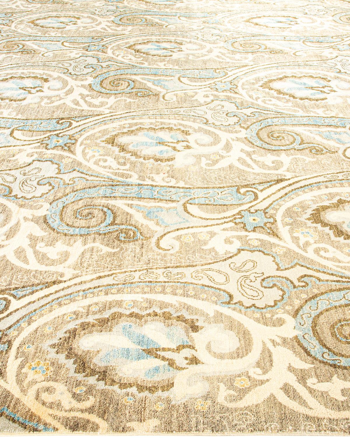 Contemporary Hand Knotted Suzani Abstract Light Gray Area Rug 10' 0" x 14' 2"