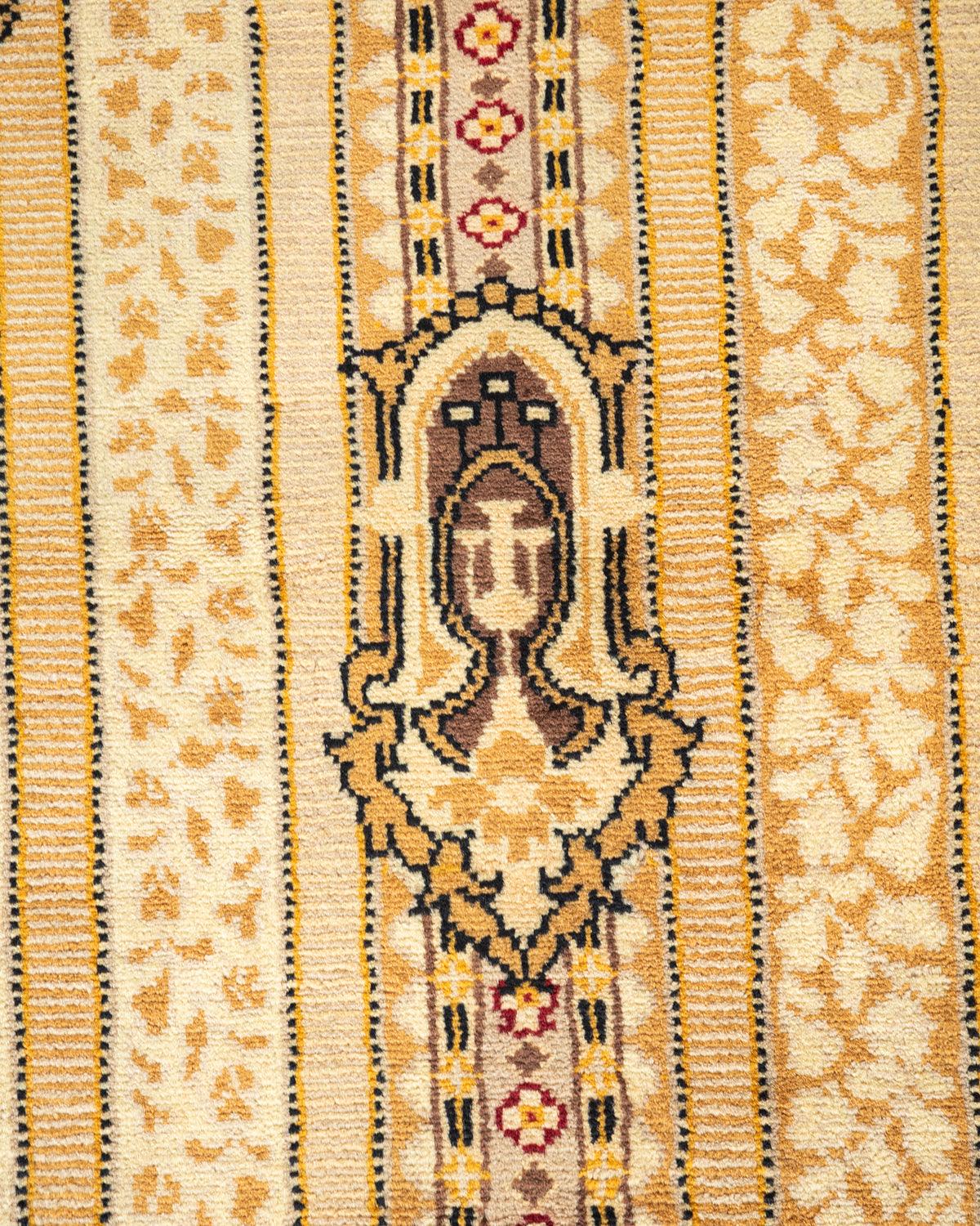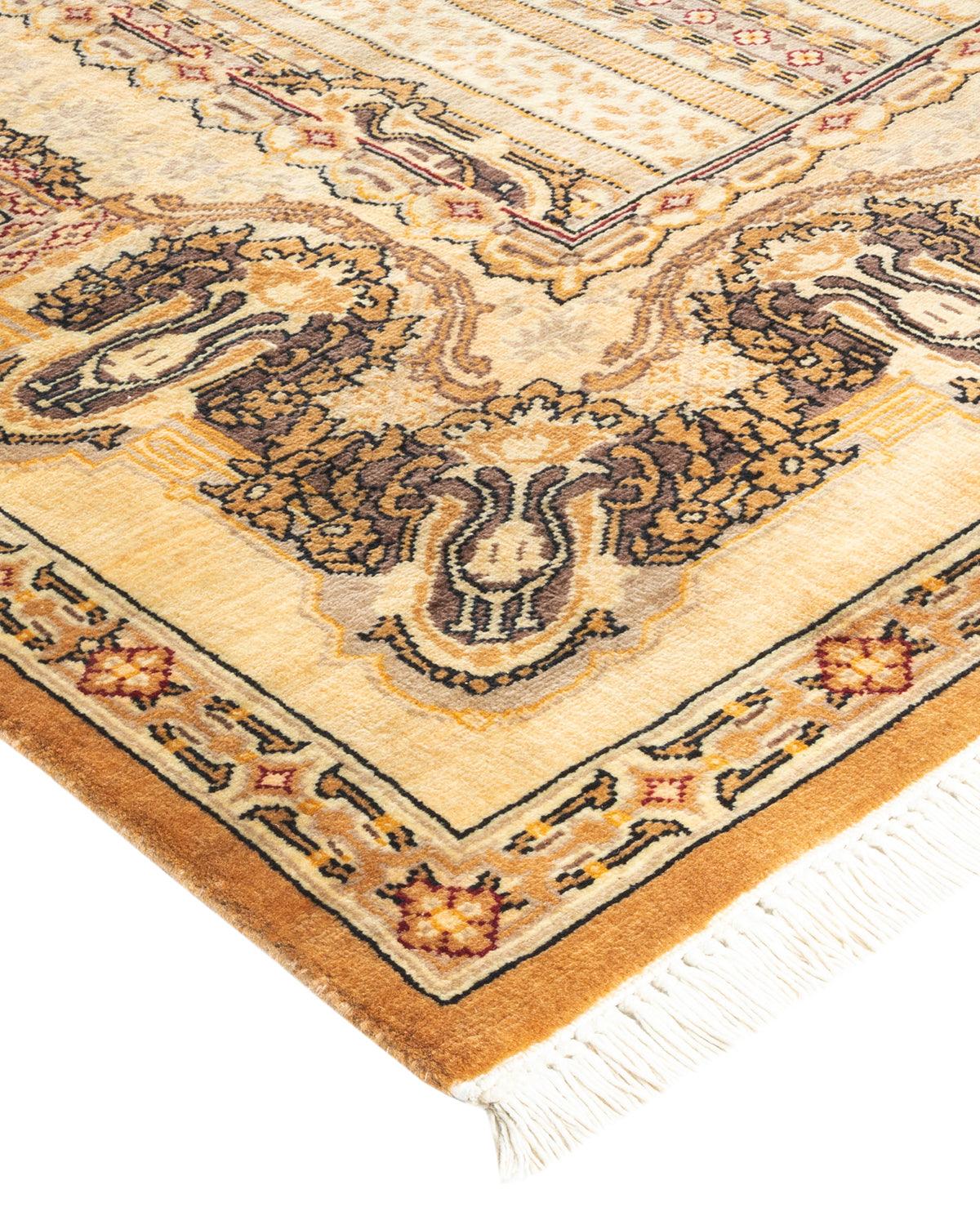 Contemporary Hand Knotted Eclectic Oriental Yellow Area Rug 4' 8" x 7' 2"