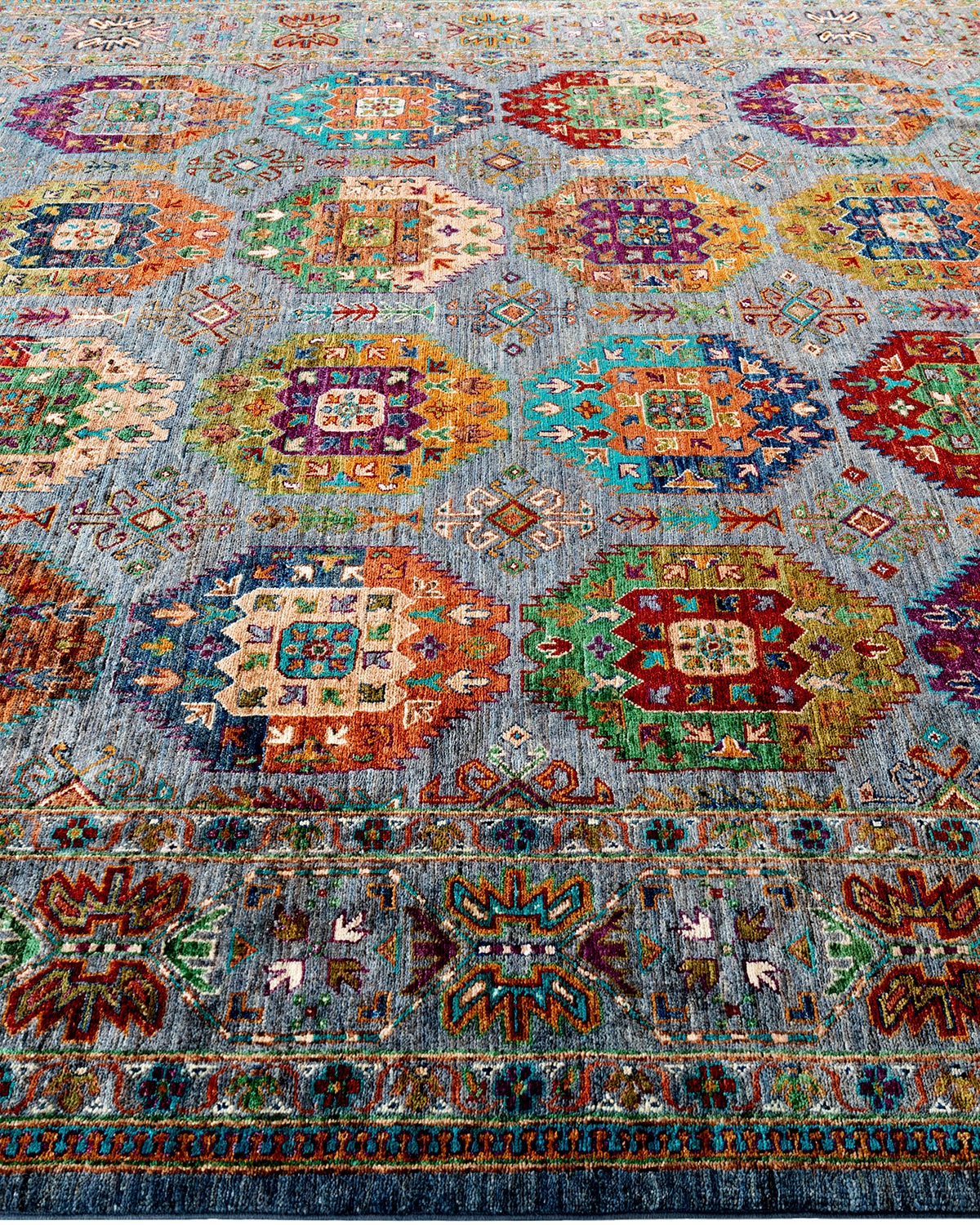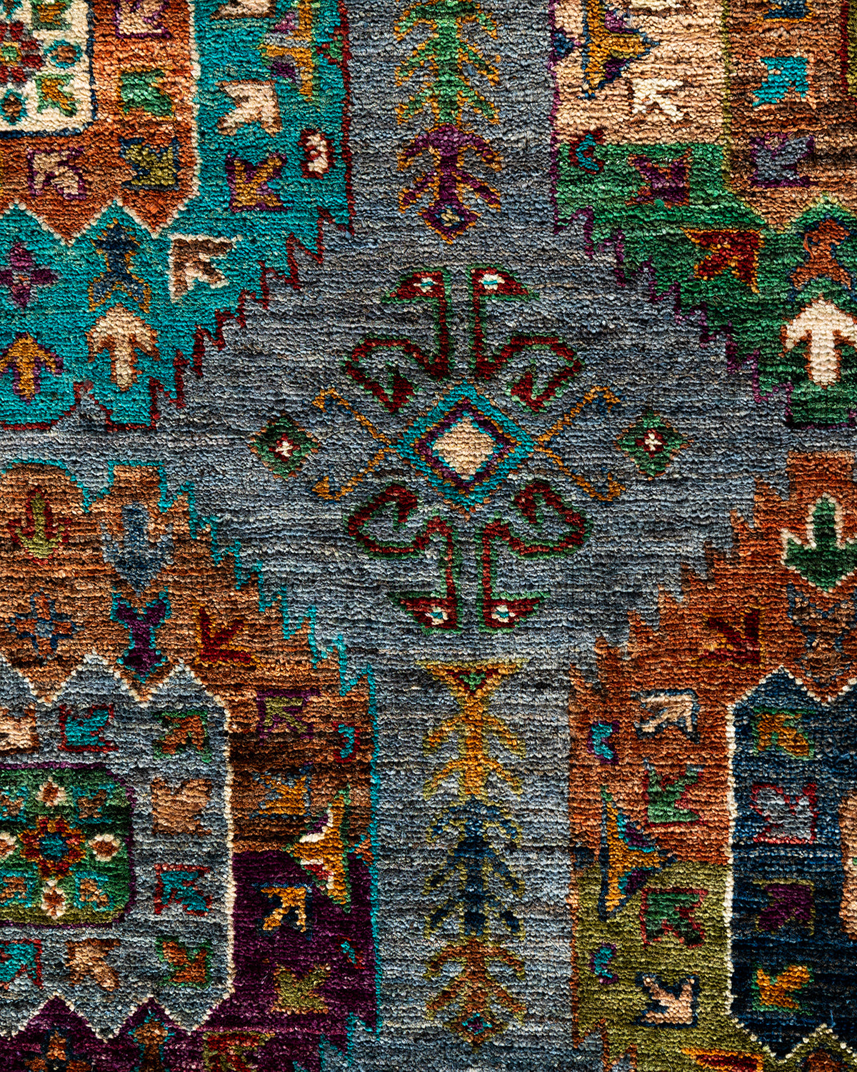 The rich textile tradition of western Africa inspired the Tribal collection of hand-knotted rugs. Incorporating a medley of geometric motifs, in palettes ranging from earthy to vivacious, these rugs bring a sense of energy as well as plush texture to any room.