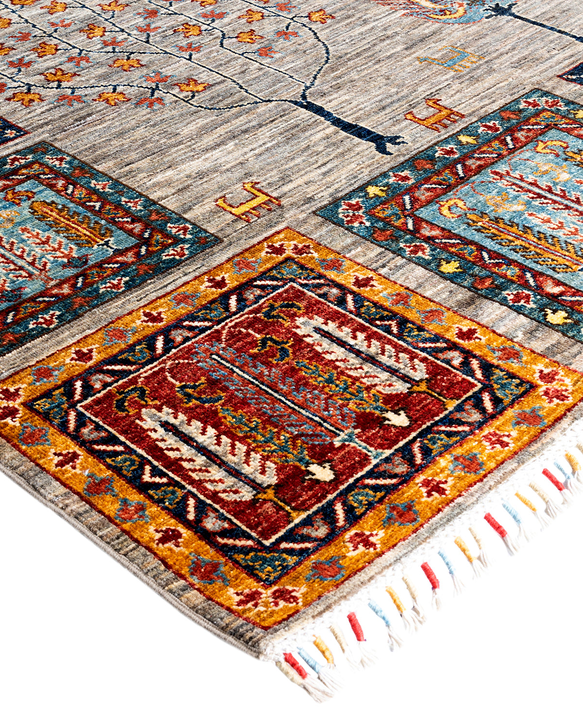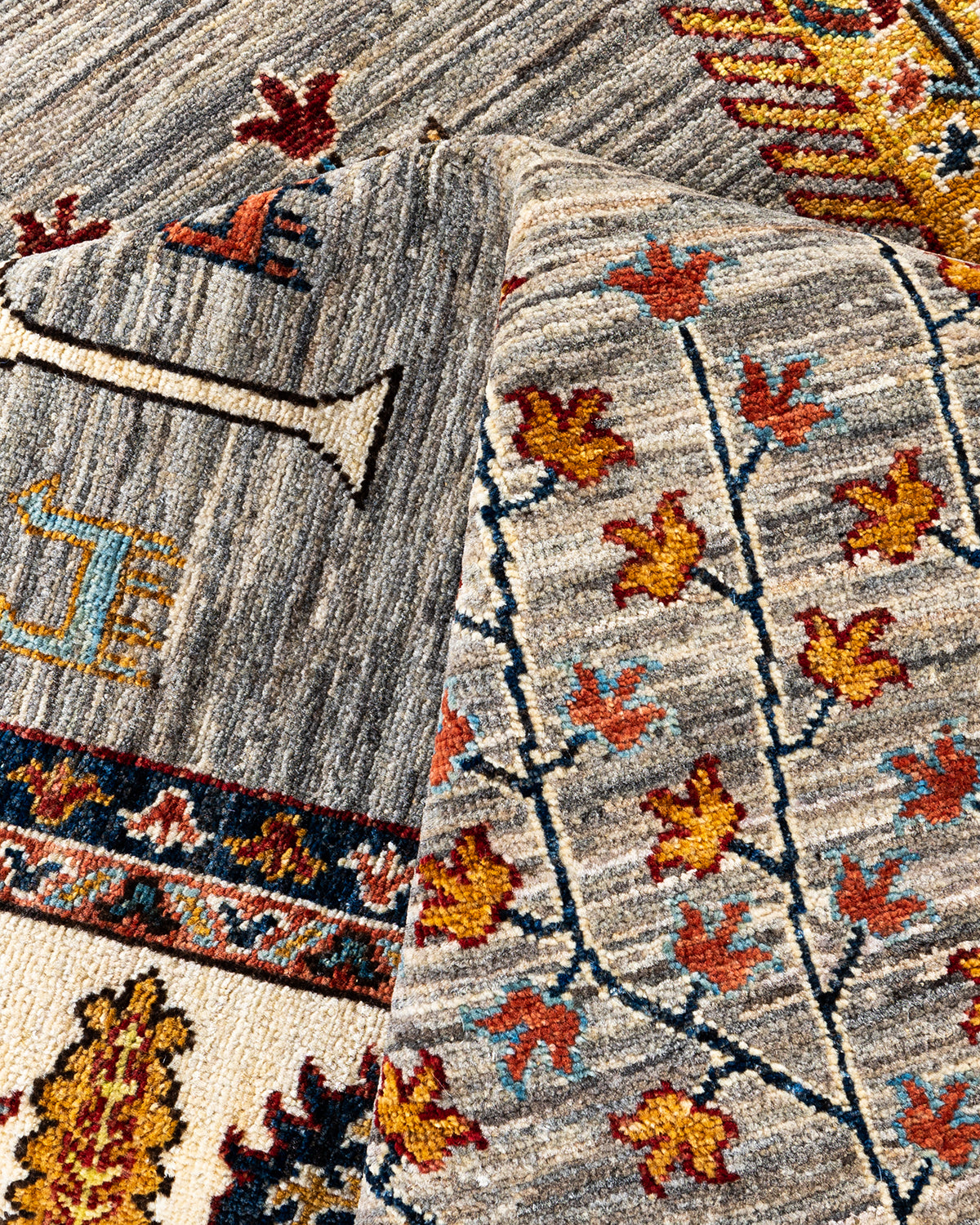 The rich textile tradition of western Africa inspired the Tribal collection of hand-knotted rugs. Incorporating a medley of geometric motifs, in palettes ranging from earthy to vivacious, these rugs bring a sense of energy as well as plush texture to any room.