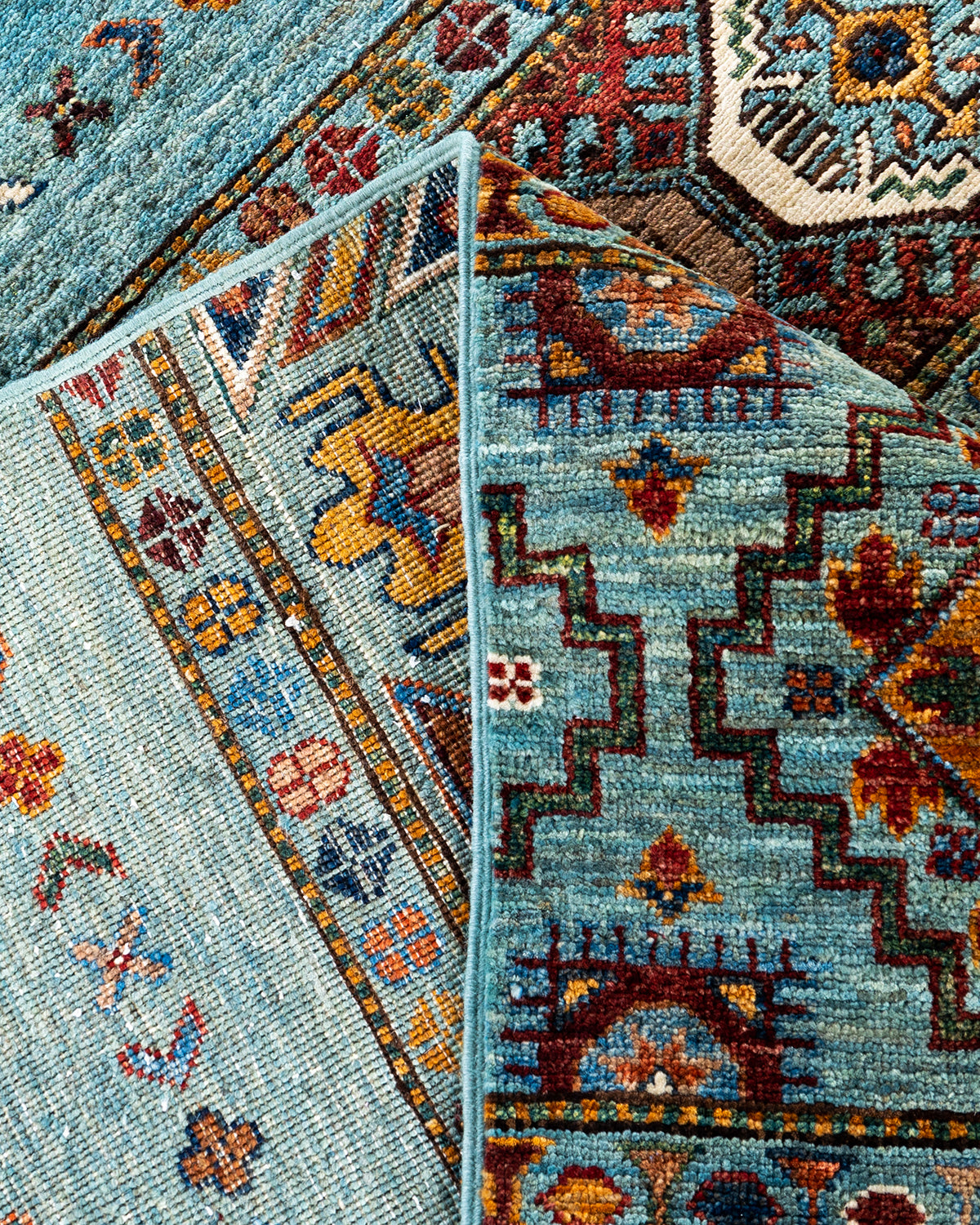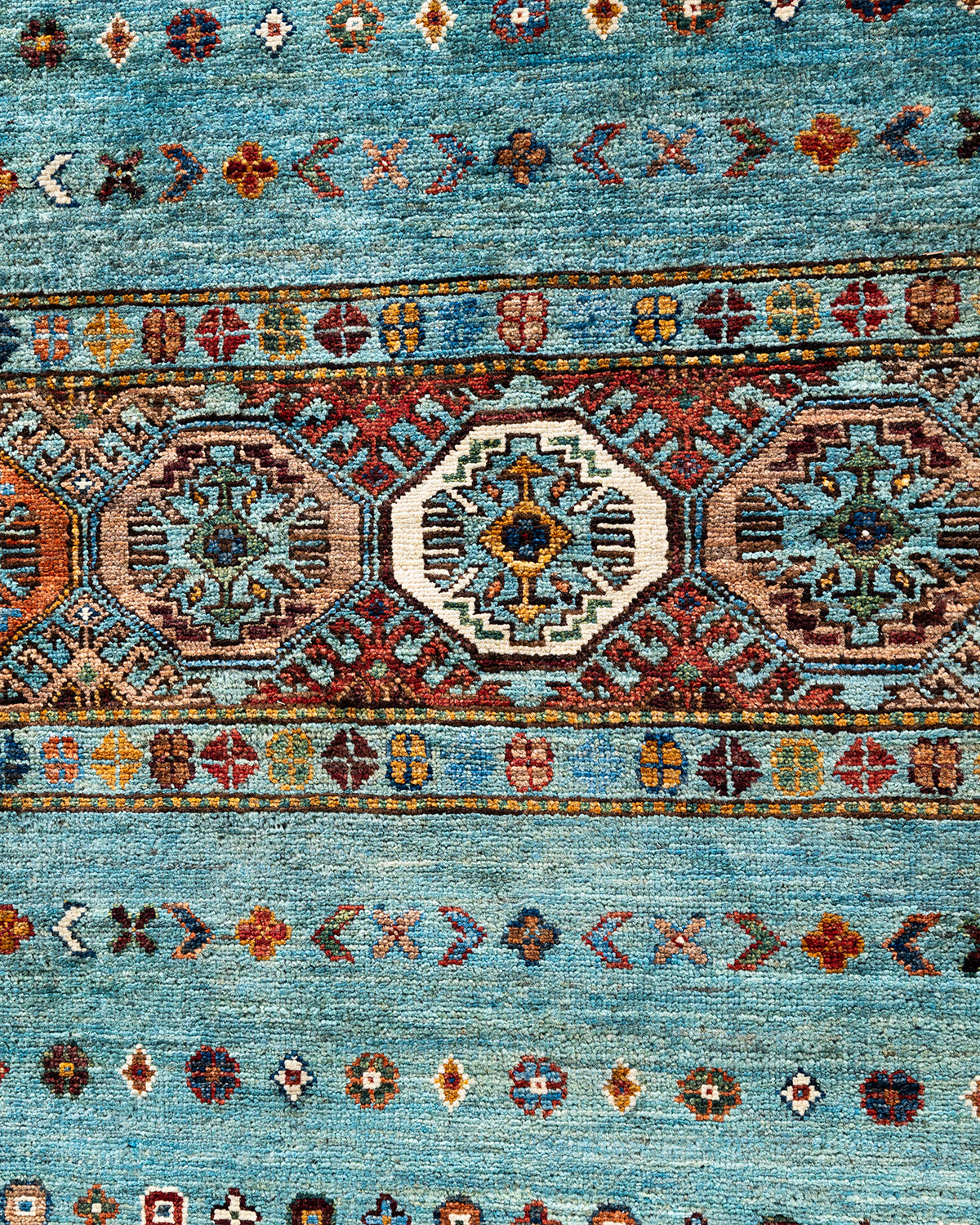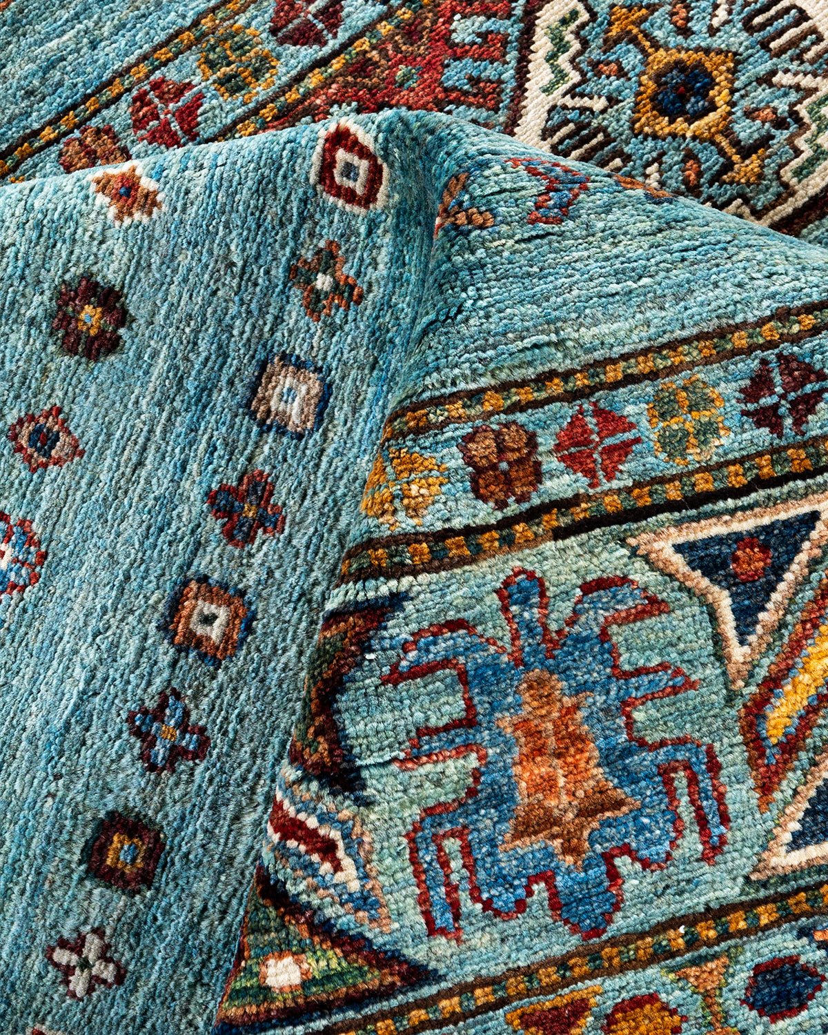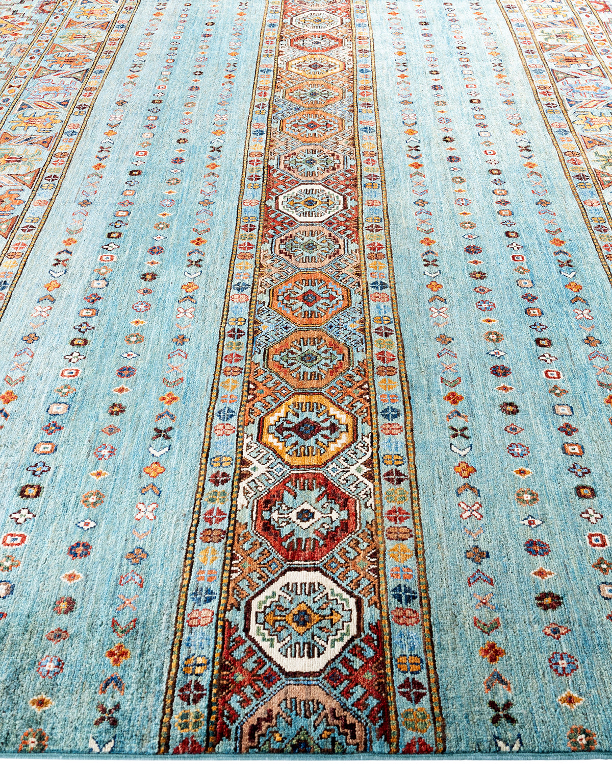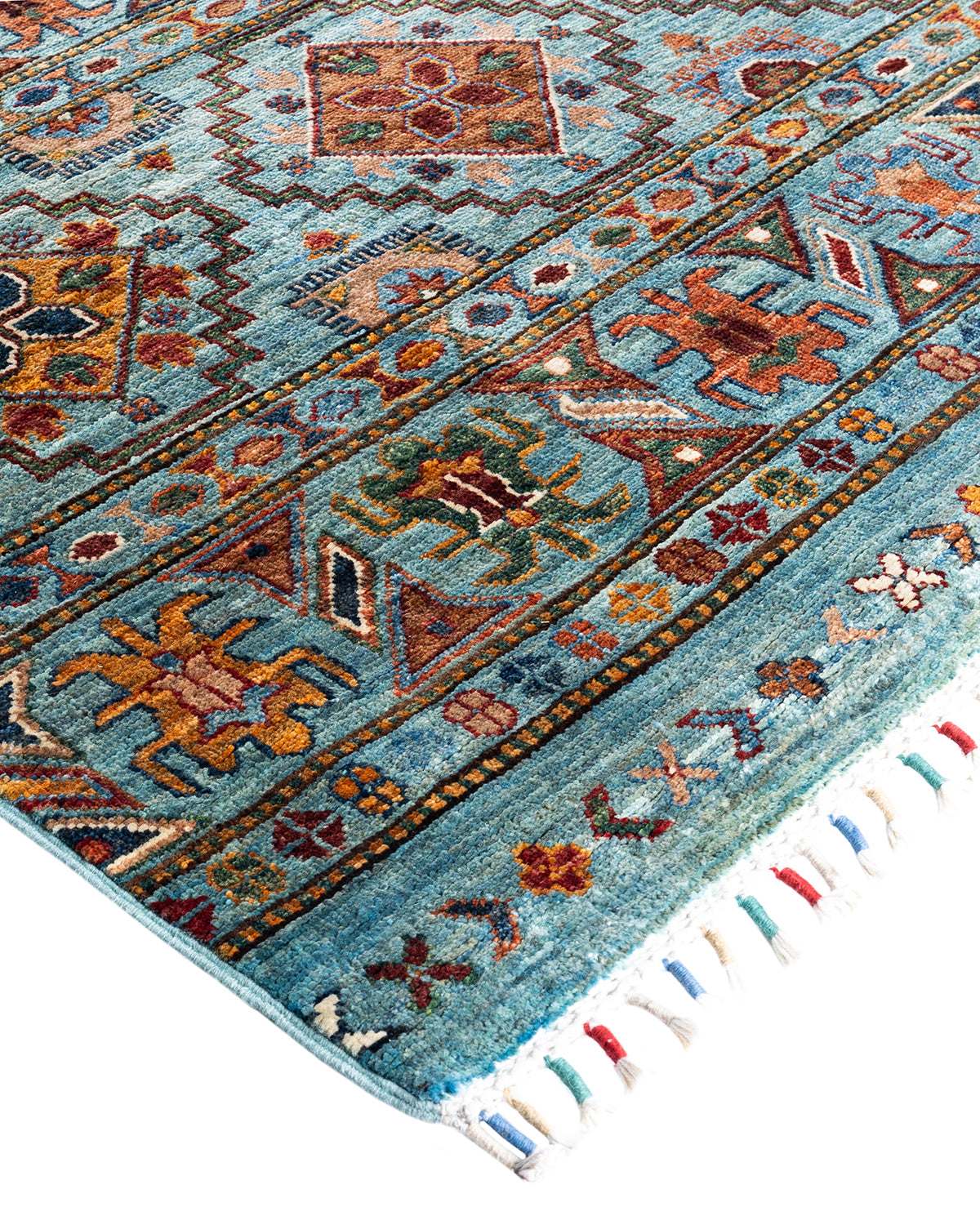 Bohemian Tribal Wool Hand Knotted Light Blue Area Rug 8' 1" x 9' 5"