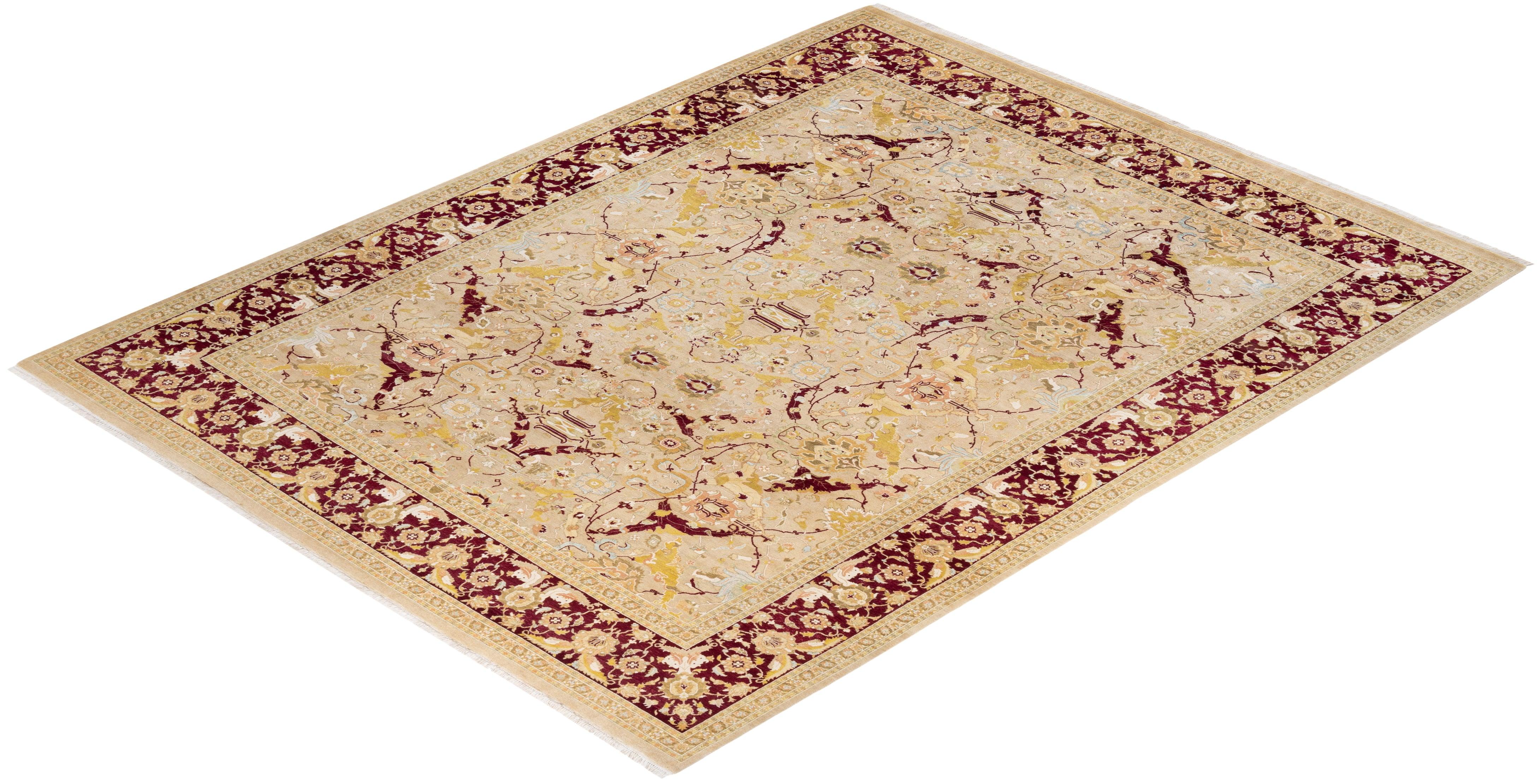 Traditional Hand Knotted Mogul Yellow Area Rug 9' 1" x 11' 8"