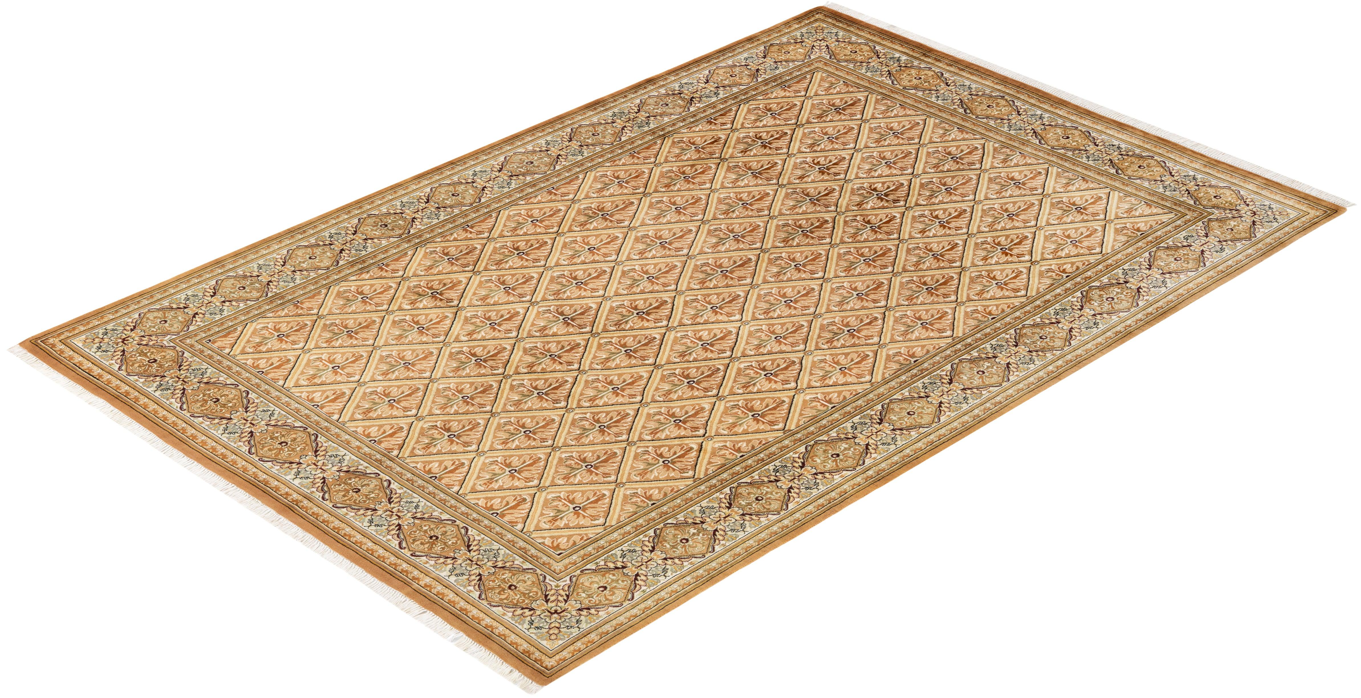 Traditional Hand Knotted Mogul Geometric Yellow Area Rug 6' 2" x 9' 1"