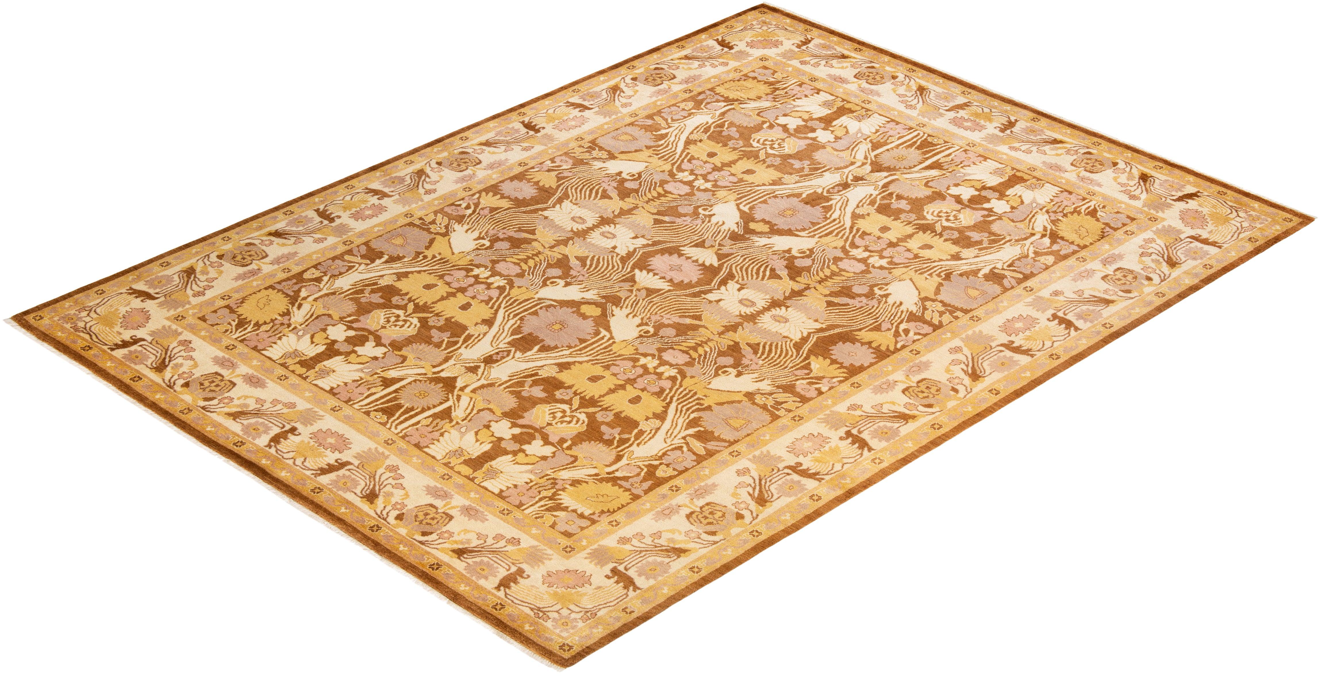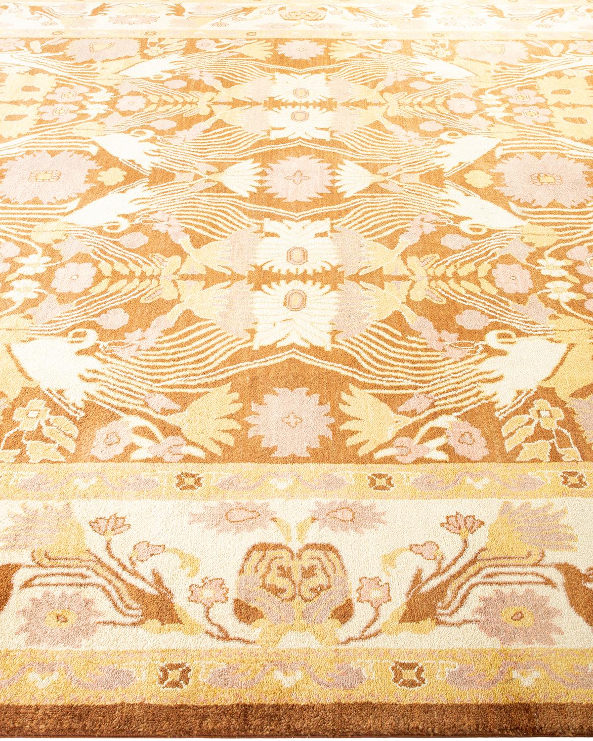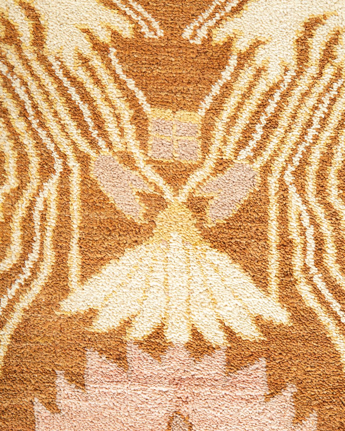 Contemporary Hand Knotted Eclectic Yellow Area Rug 9' 1" x 12' 5"