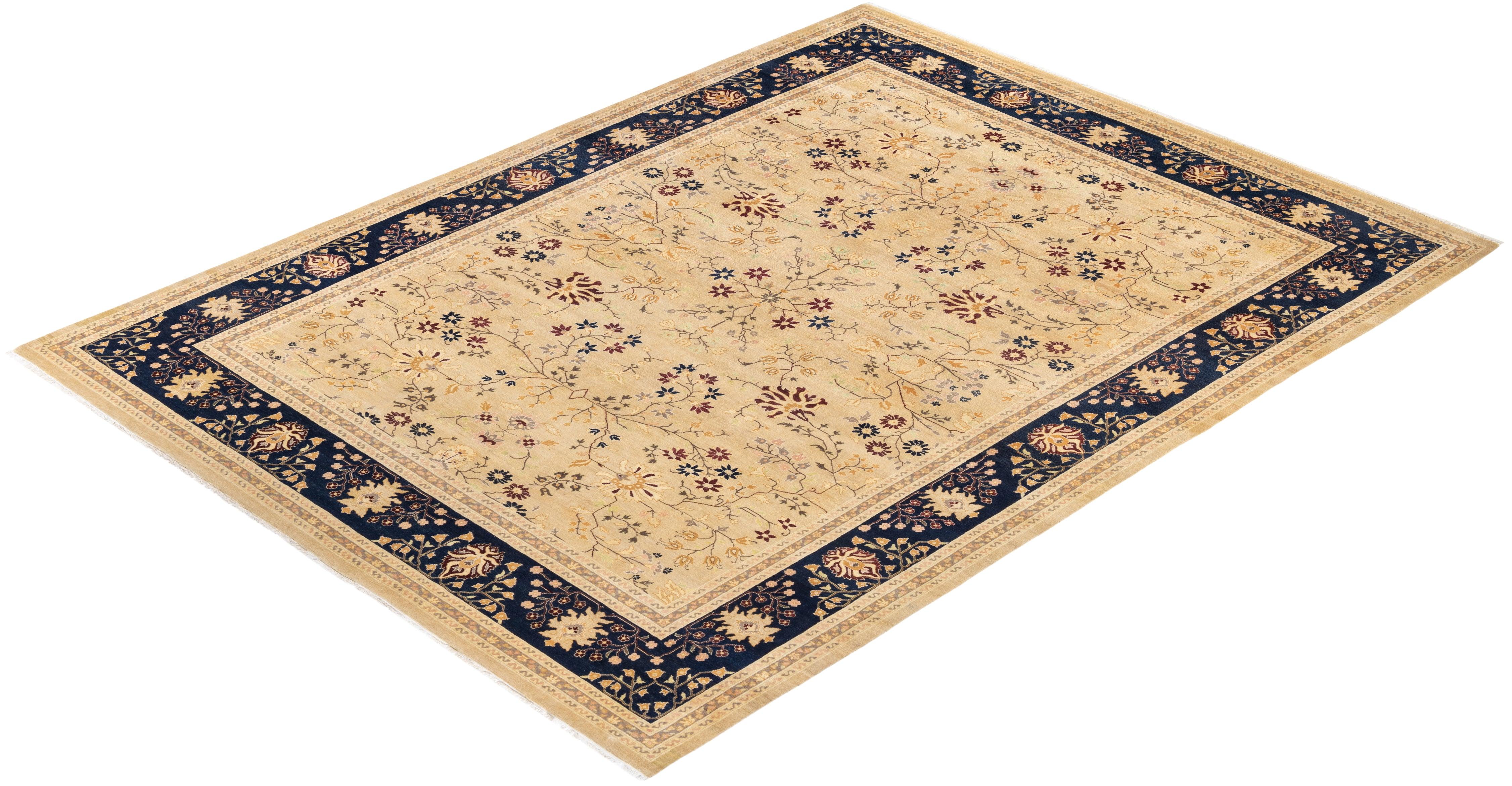 Traditional Hand Knotted Mogul Floral Yellow Area Rug 9' 3" x 12' 1"