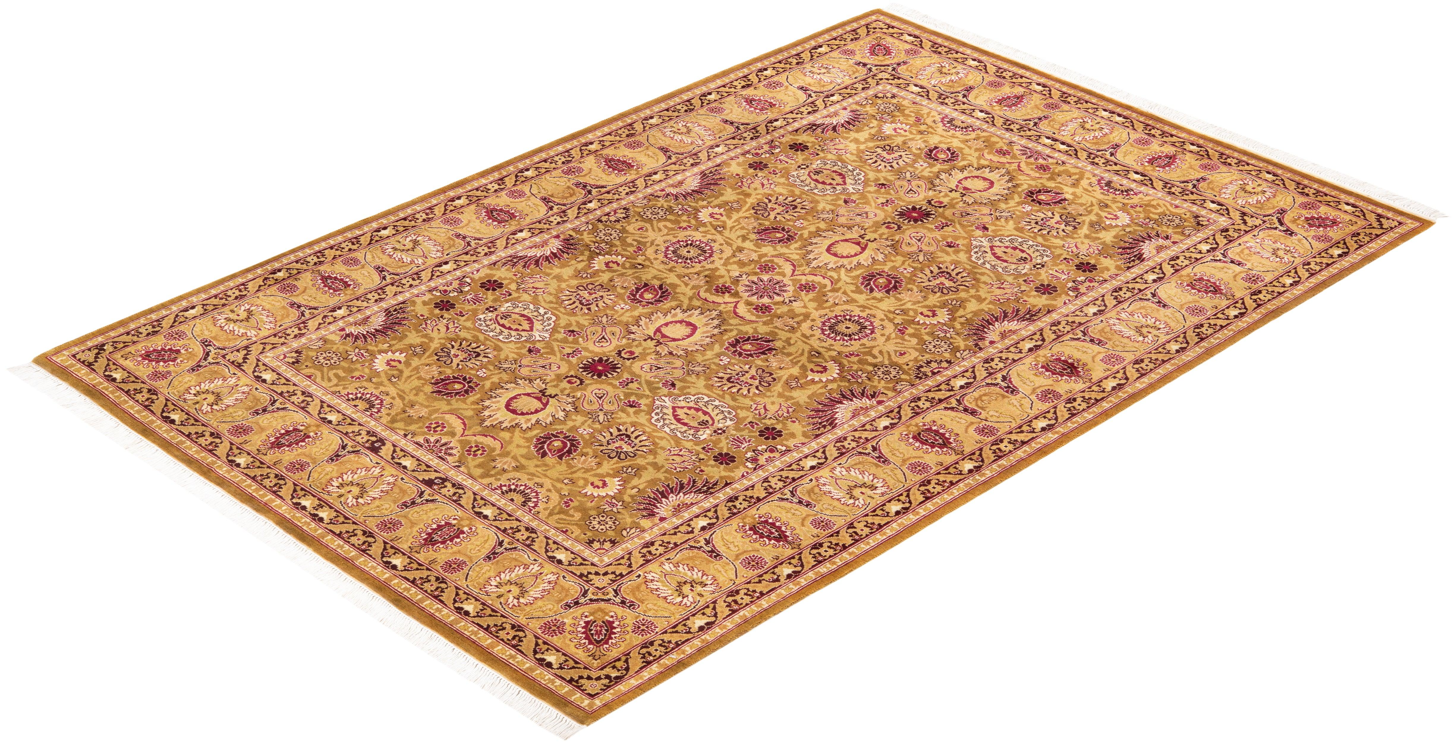 Traditional Hand Knotted Mogul Oriental Yellow Area Rug 4' 3" x 6' 4"