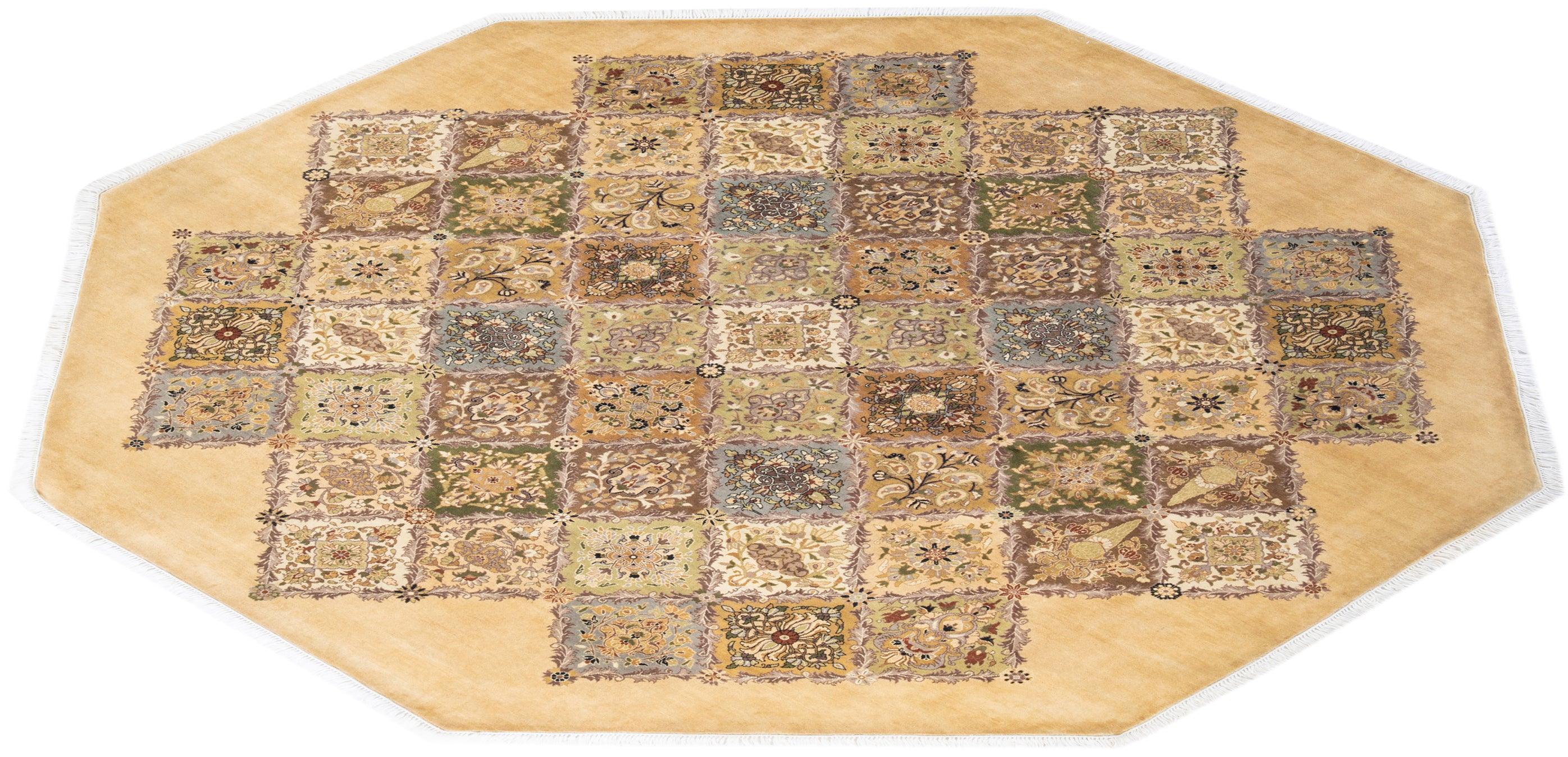 Traditional Hand Knotted Mogul Overdyed Yellow Octagon Area rug 8' 1" x 8' 1"