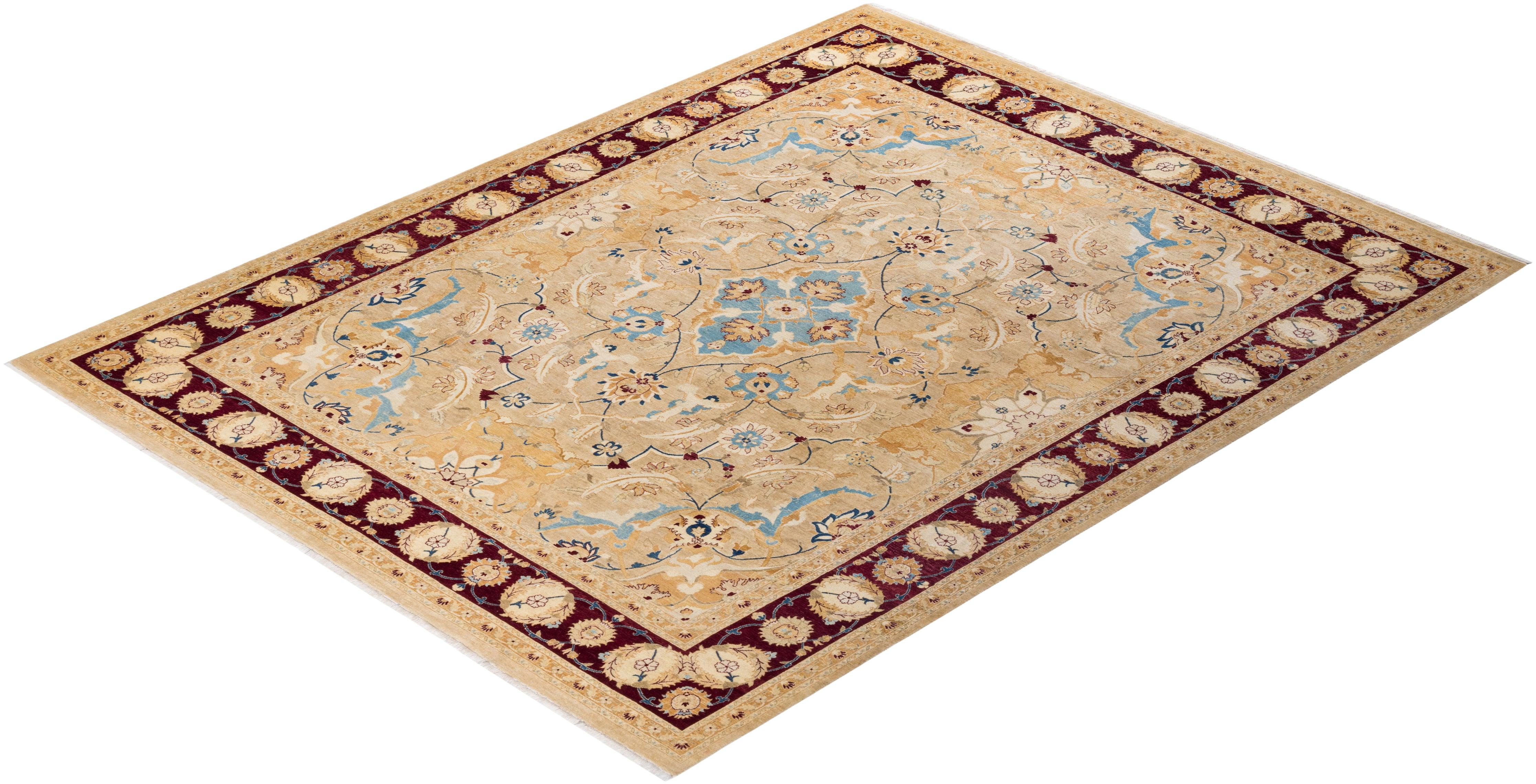 Traditional Hand Knotted Mogul Floral Yellow Area Rug 8' 1" x 10' 7"