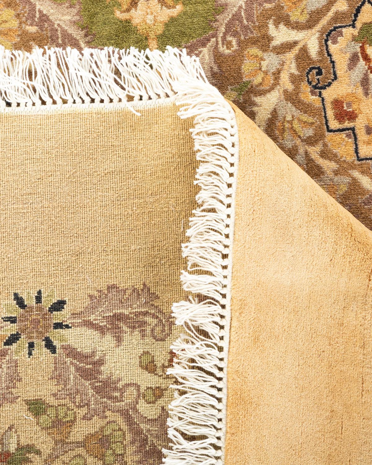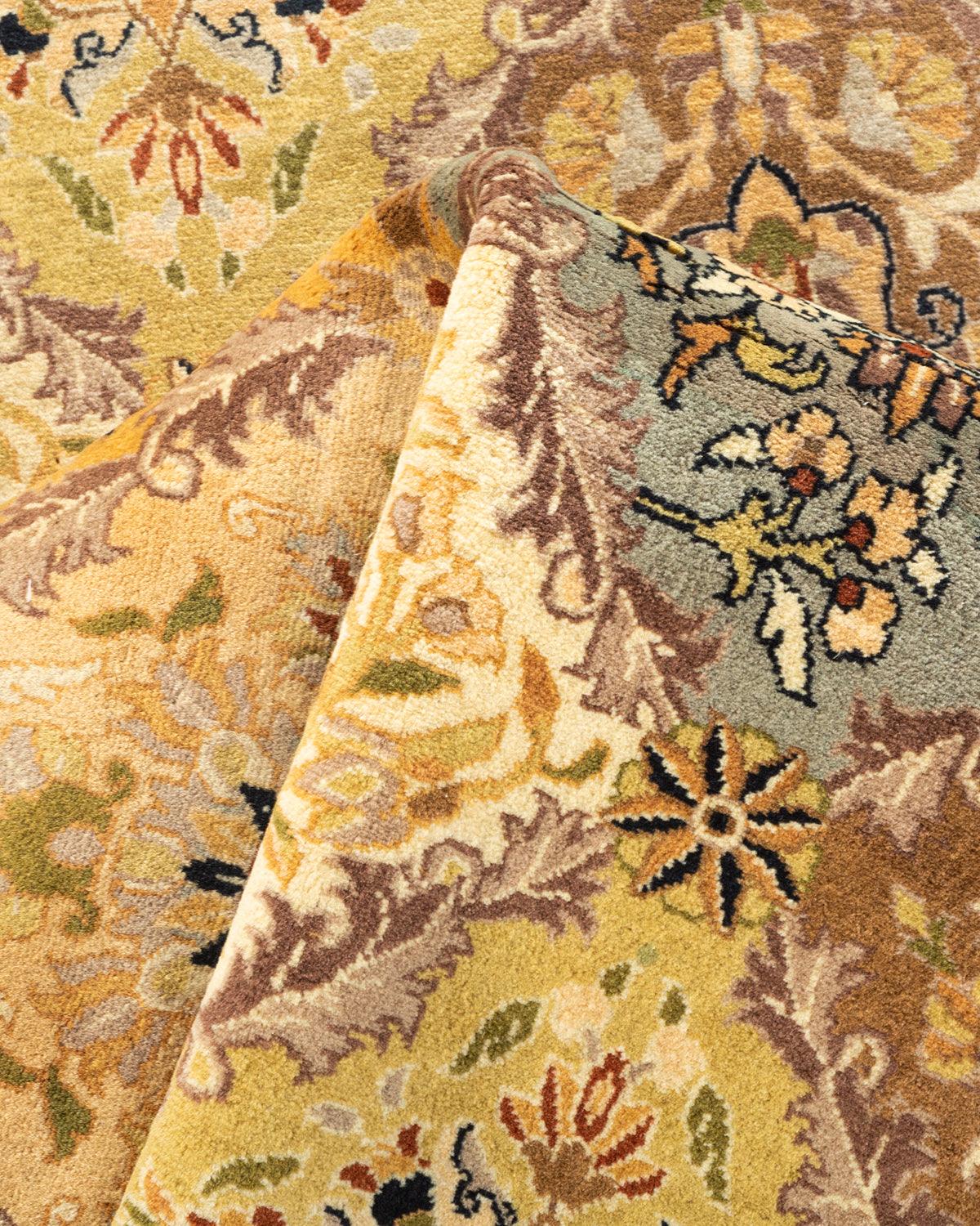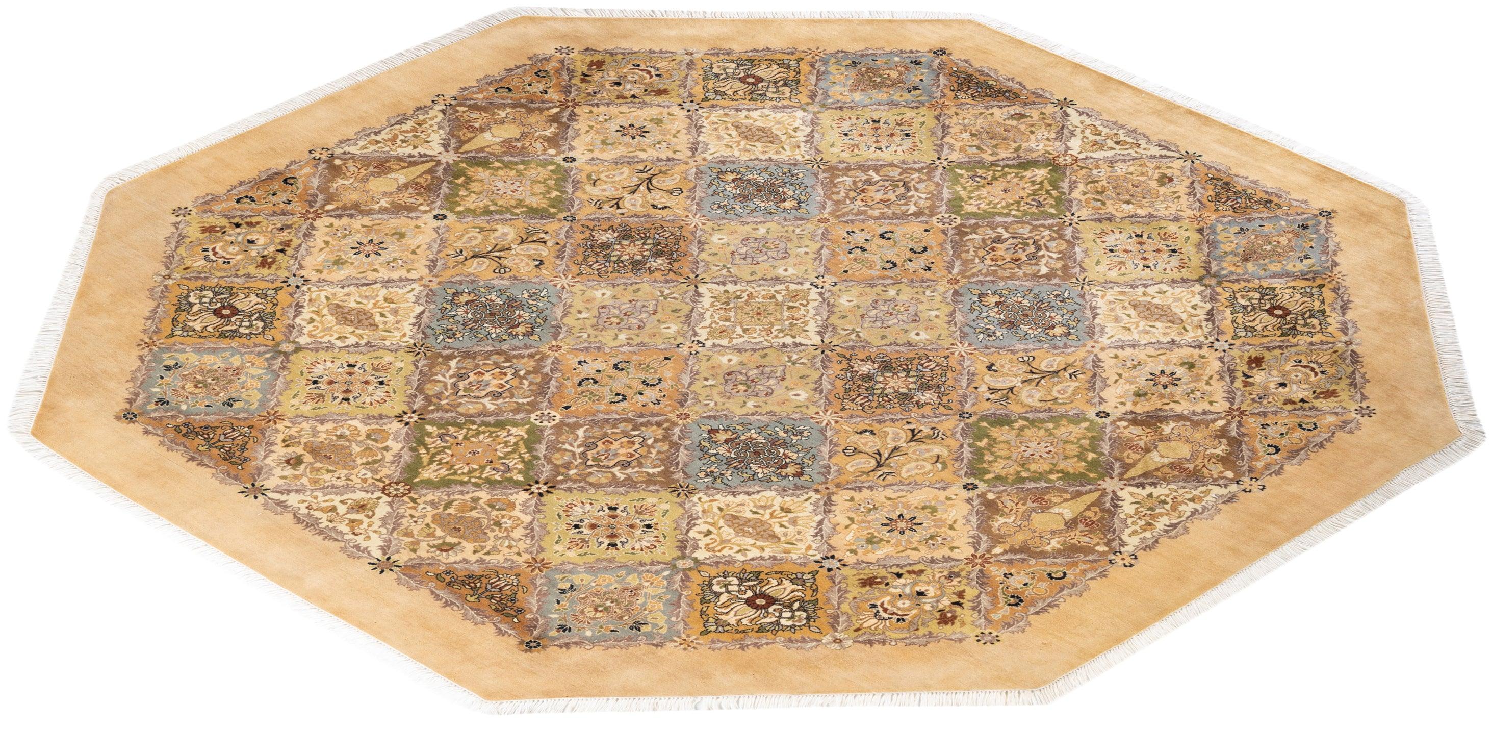 Traditional Hand Knotted Mogul Oriental Yellow Octagon Area rug 8' 1" x 8' 1"