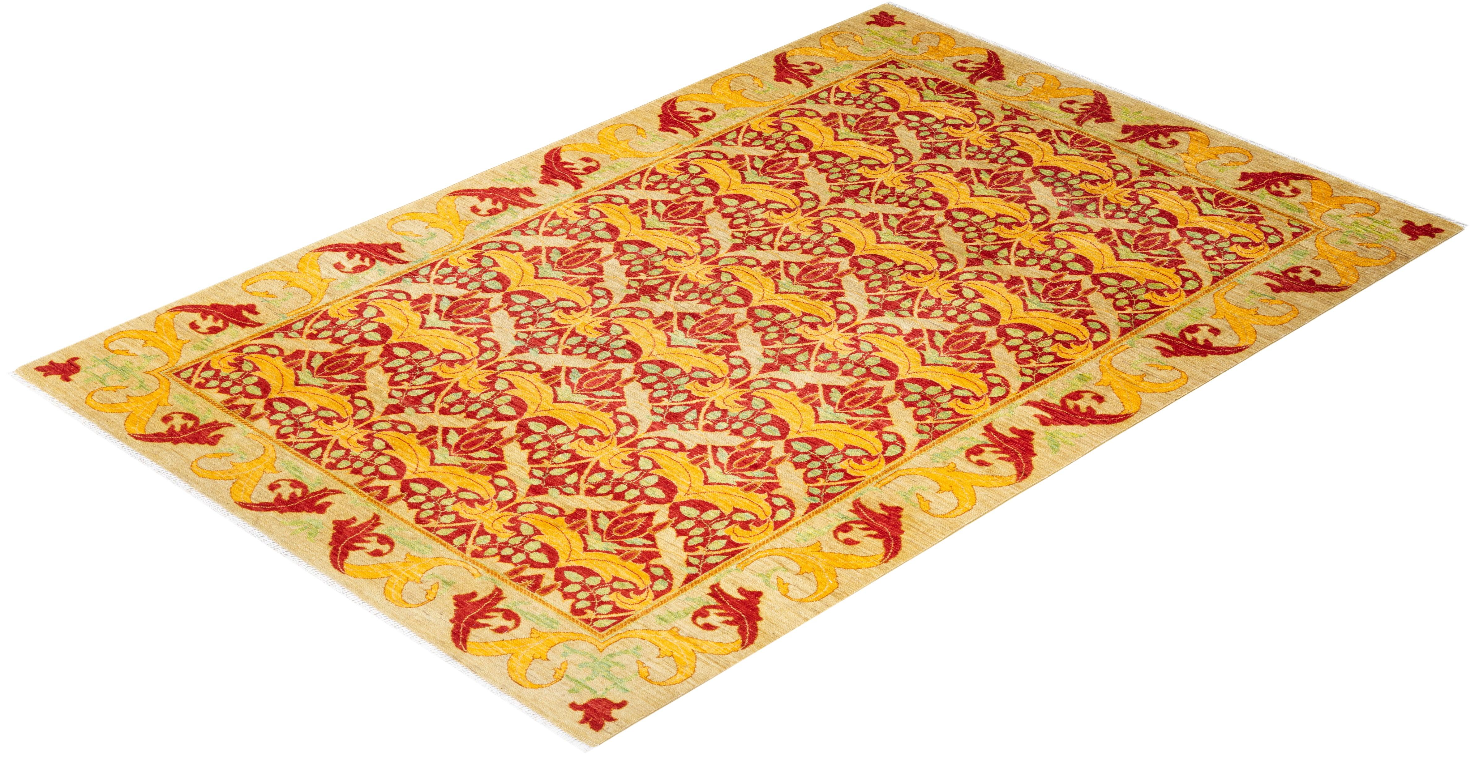 With simple, bold, yet informal designs and a broad palette of colors that ranges from earthy hues to brilliant gems, the rugs in the Arts & Crafts collection infuse a room with a sense of sophisticated rebellion. Nature-inspired motifs are the focal point in lieu of more traditional motifs. Skillfully made with sumptuous wool piles, these rugs bring a harmonious freedom and charming irreverence to any space.