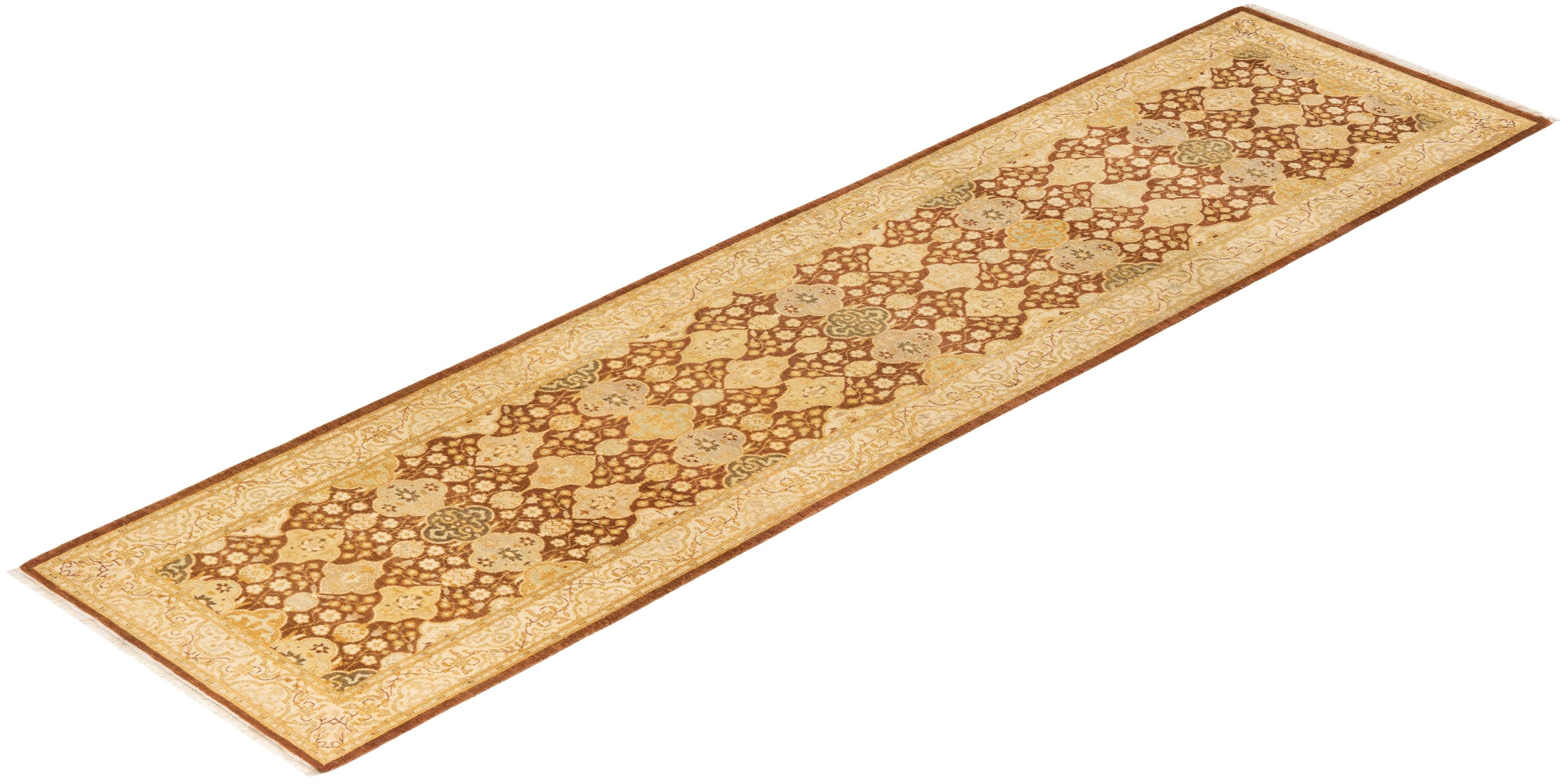 Traditional Hand Knotted Mogul Oriental Yellow Runner 2' 6" x 10' 3"