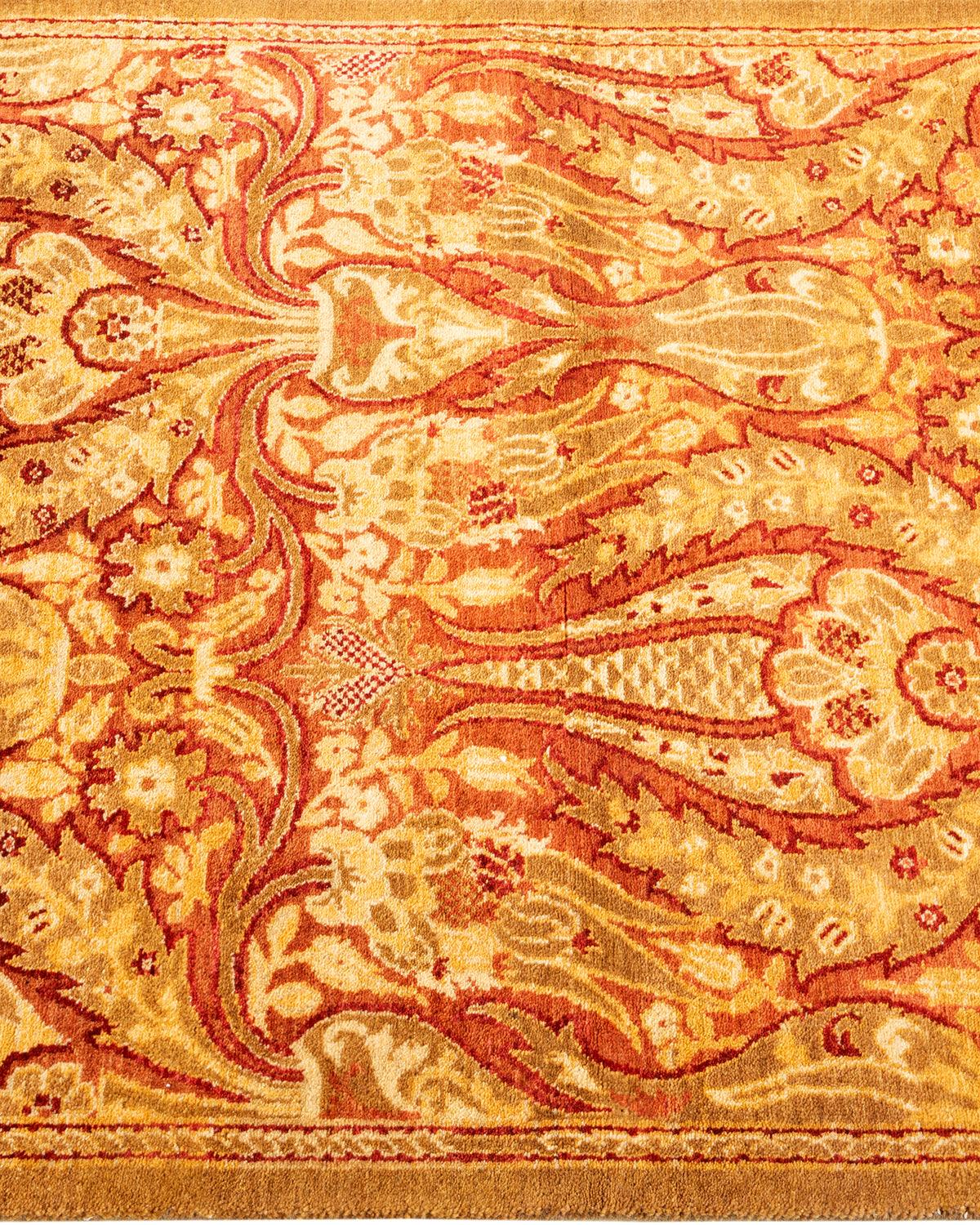 Traditional Hand Knotted Mogul Floral Yellow Runner 2' 8" x 8' 1"