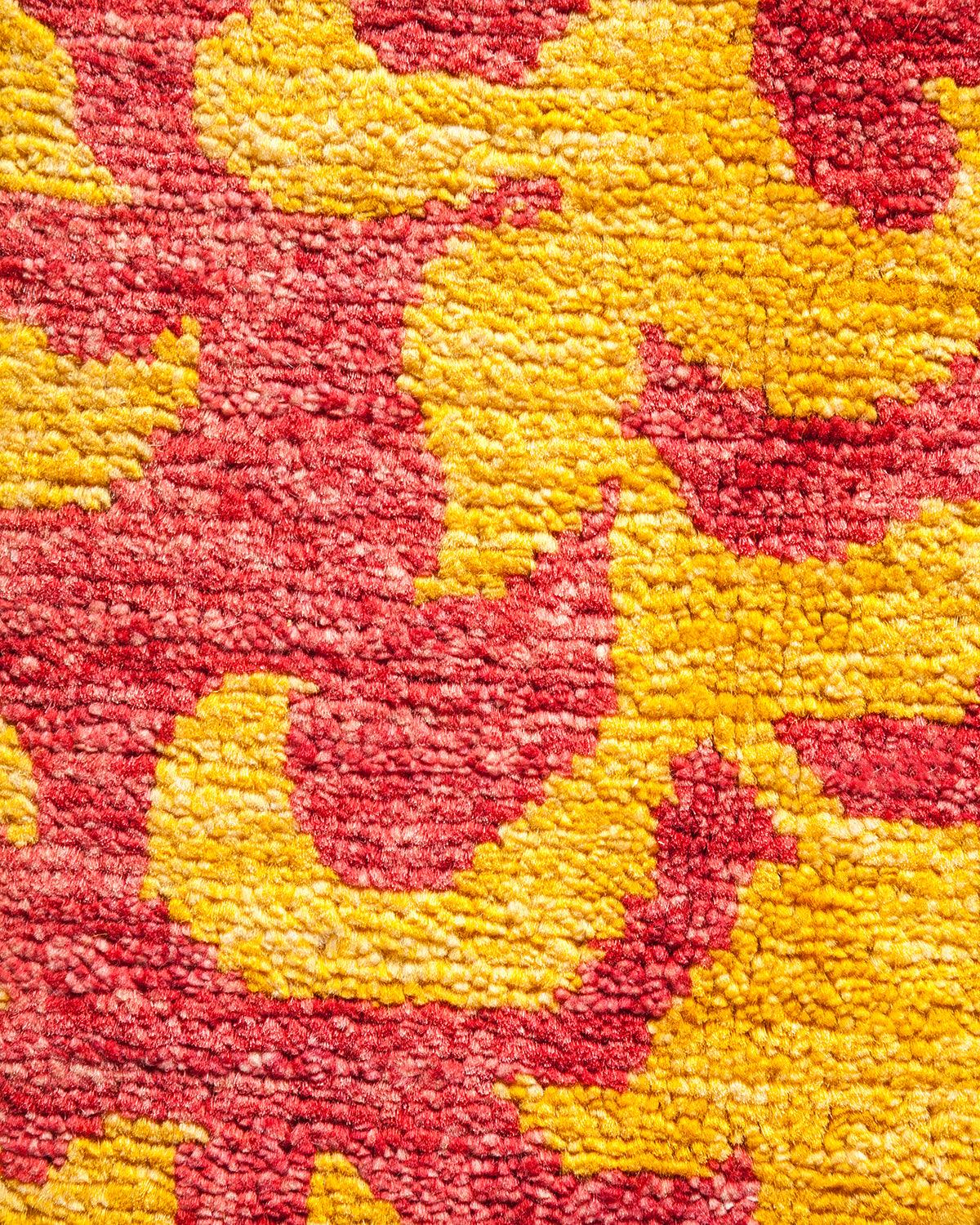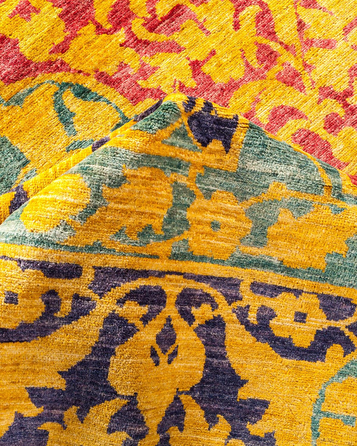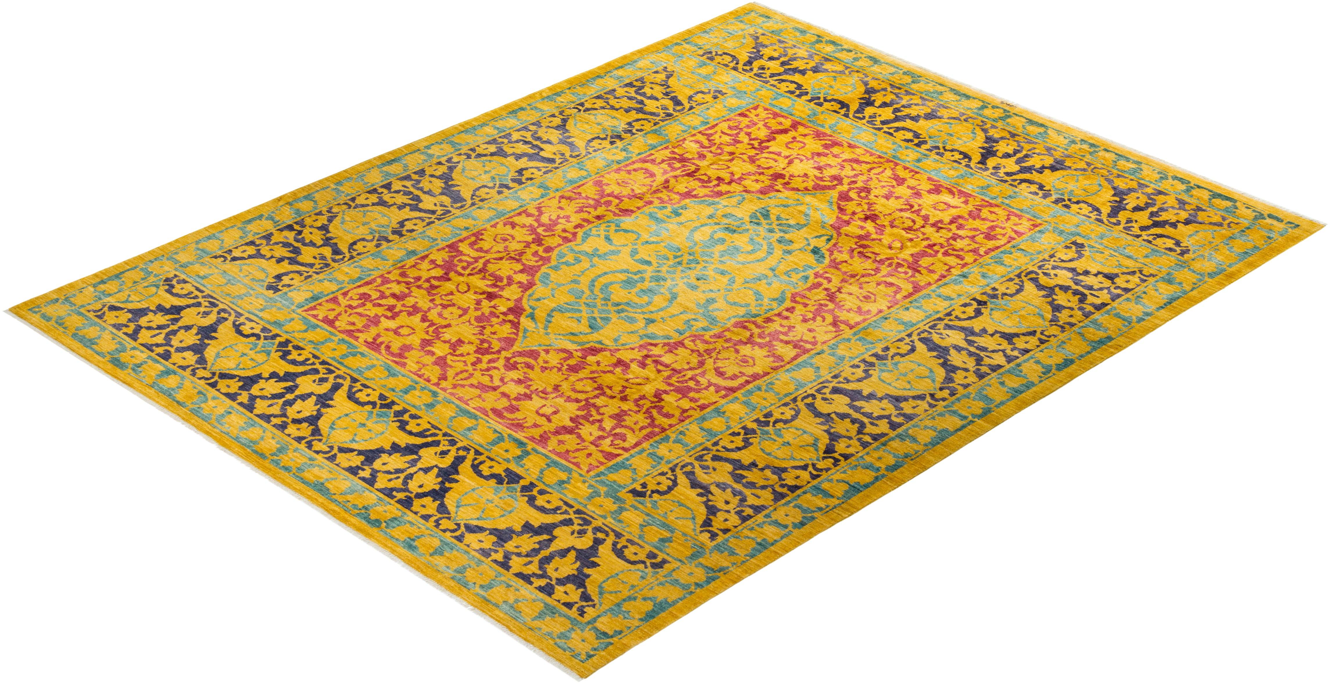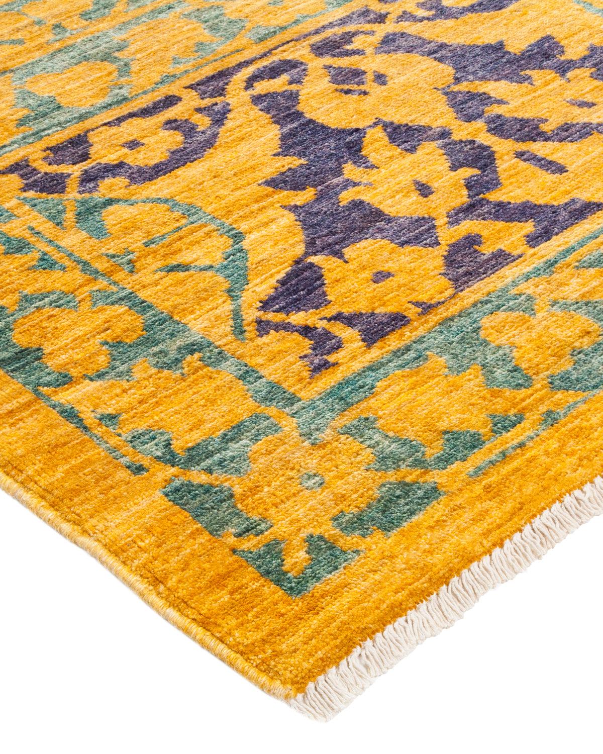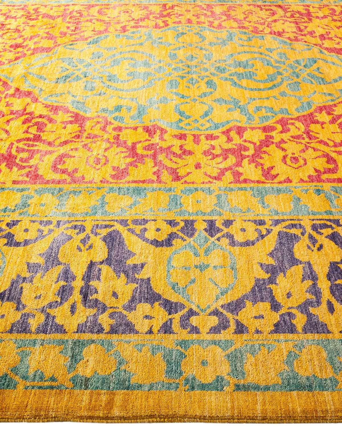 Contemporary Hand Knotted Eclectic Floral Yellow Area Rug 9' 3" x 11' 9"