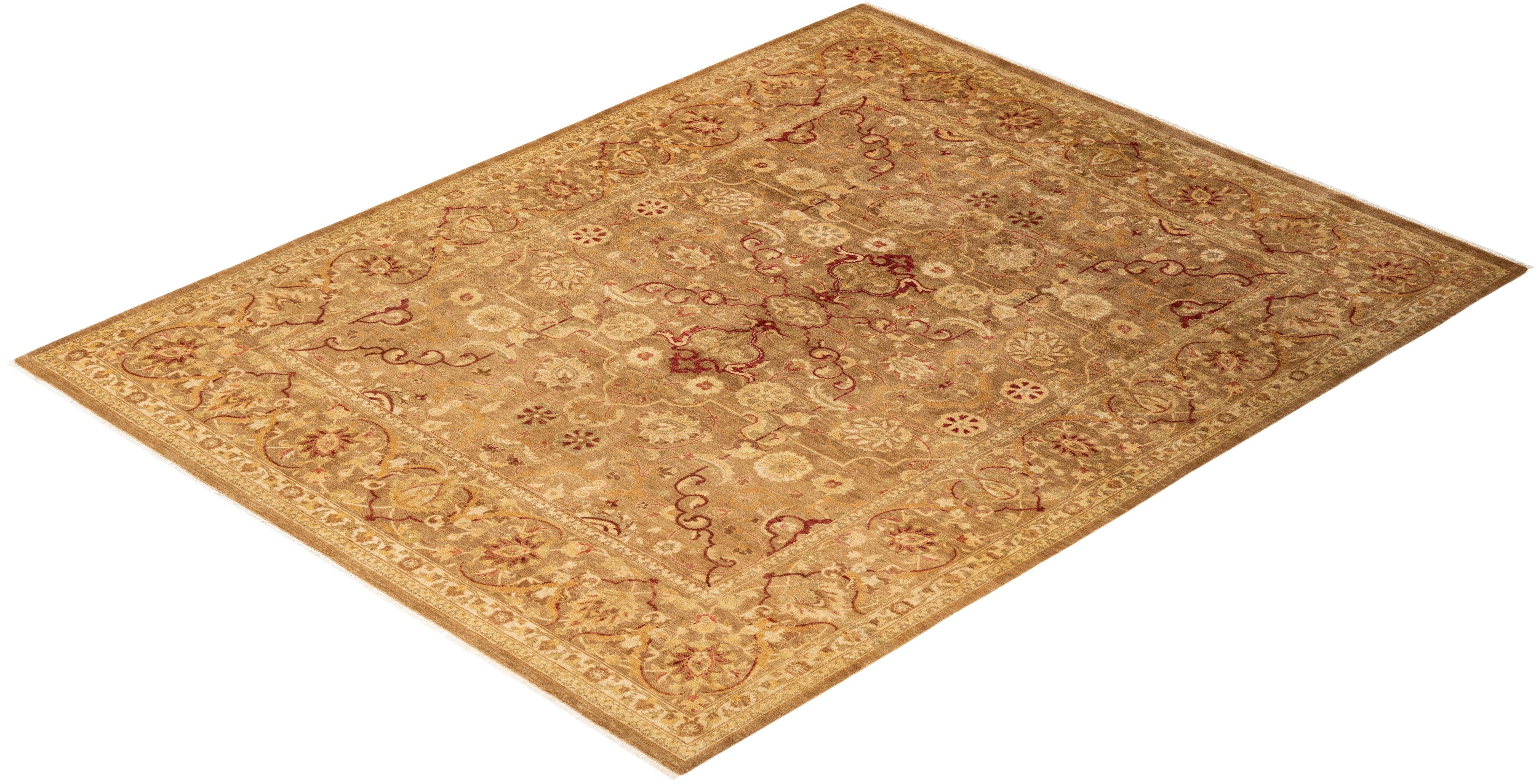 Contemporary Hand Knotted Eclectic Oriental Yellow Area Rug 7' 10" x 10' 1"