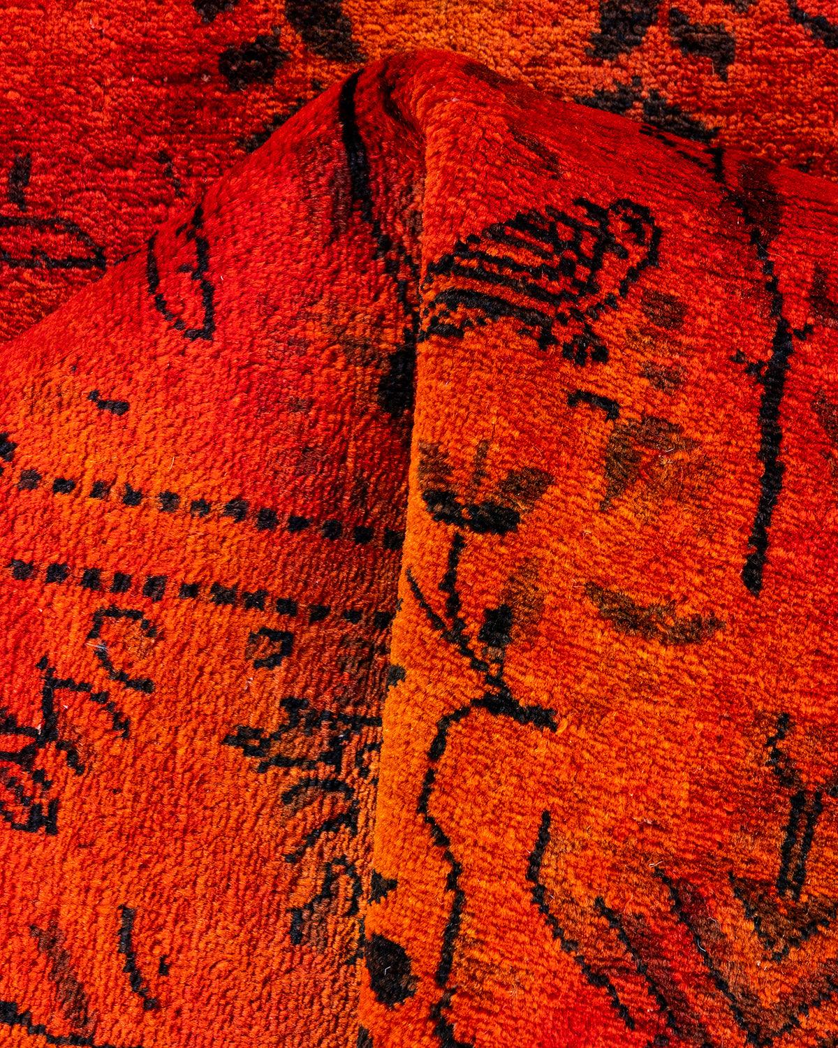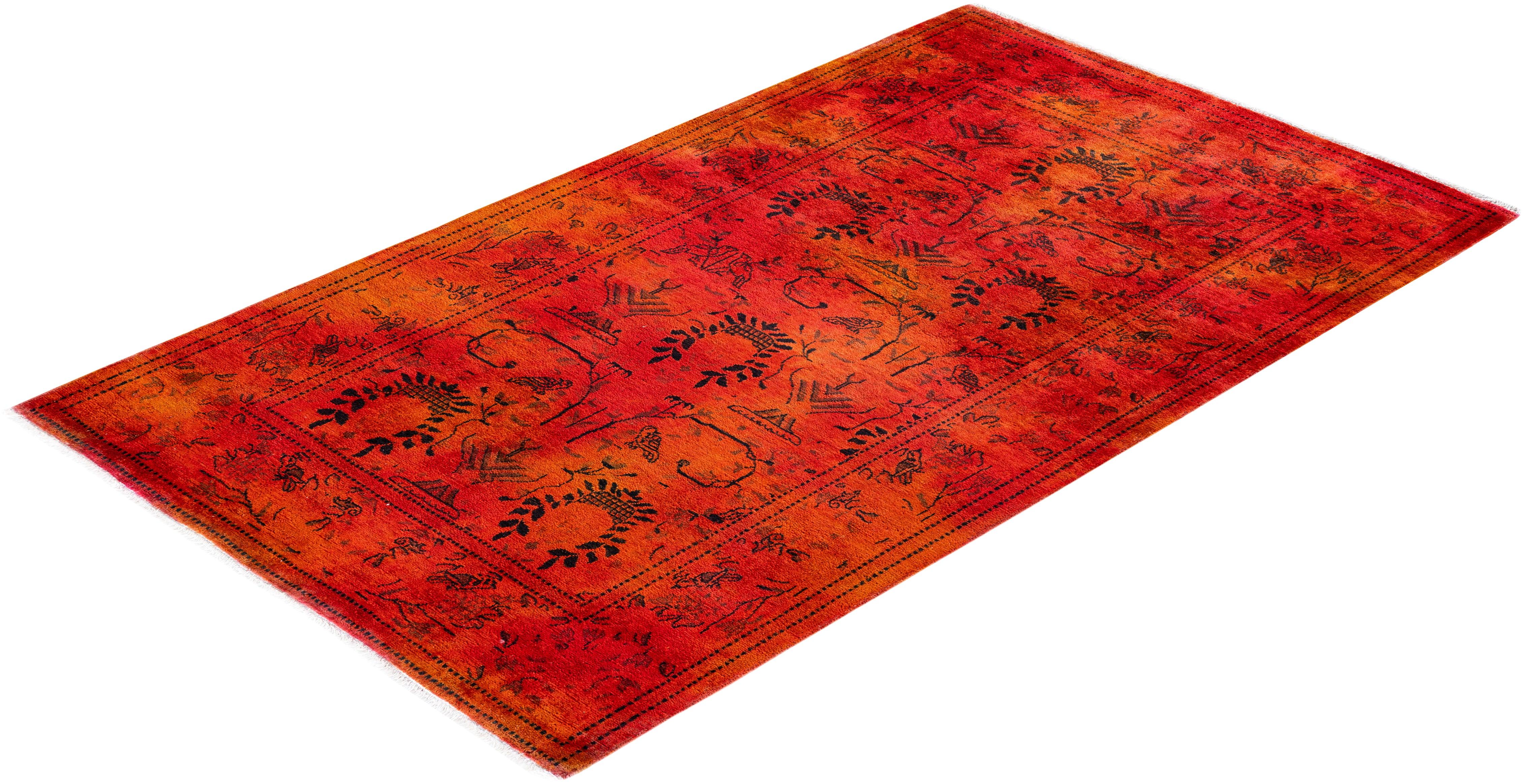 Contemporary Hand-Knotted Orange Area Rug 3' 2" x 5' 4"