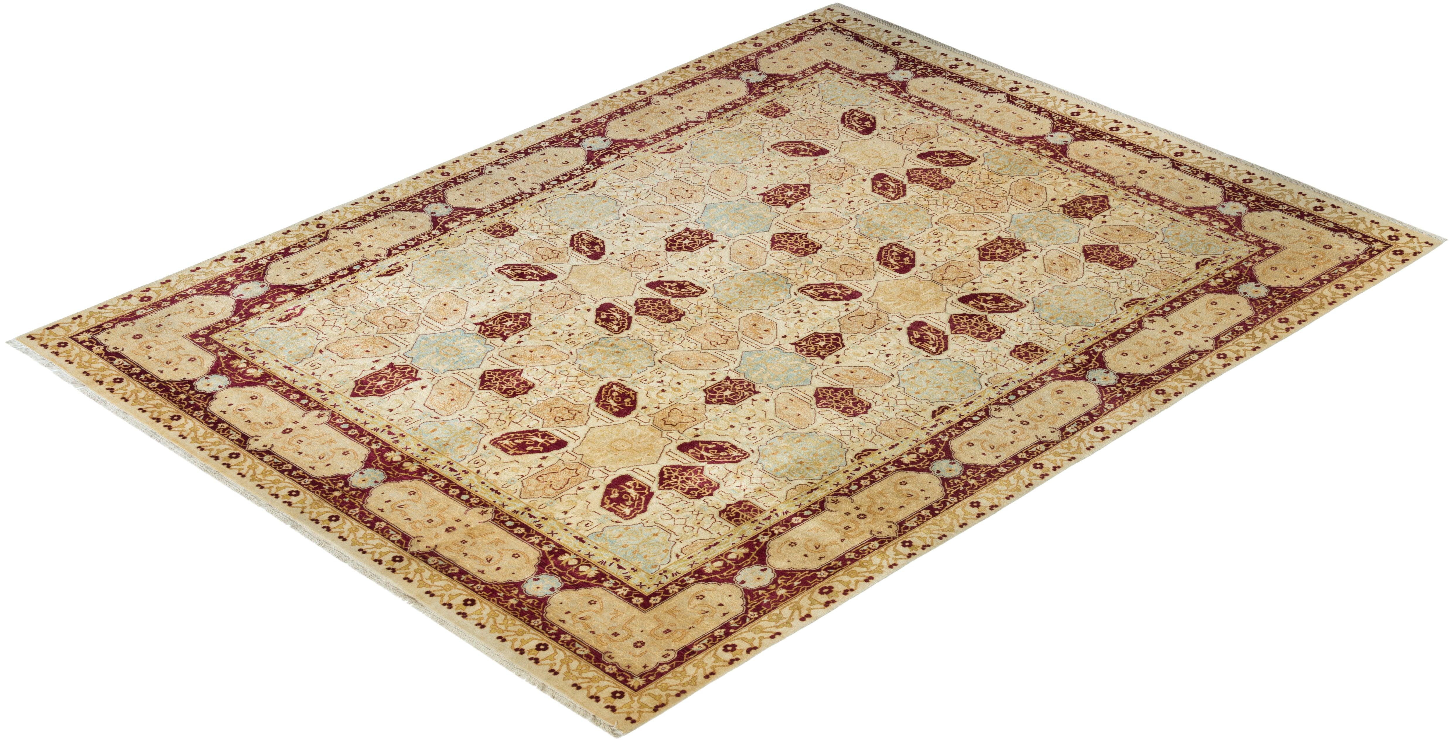 Traditional Hand Knotted Mogul Floral Ivory Area Rug 8' 3" x 10' 2"