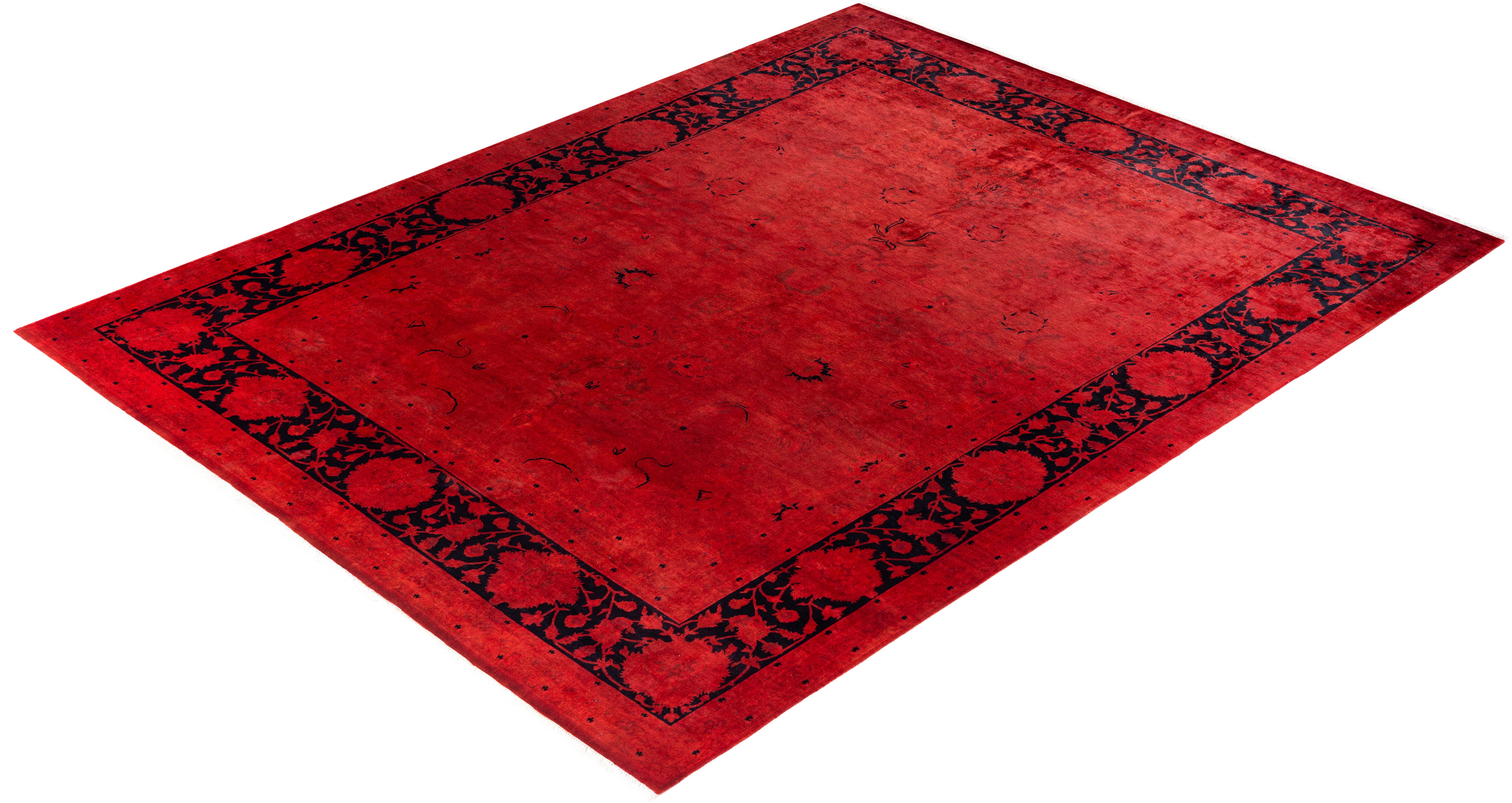 Contemporary Hand-Knotted Overdyed Orange Area Rug 8' 1" x 10' 3"