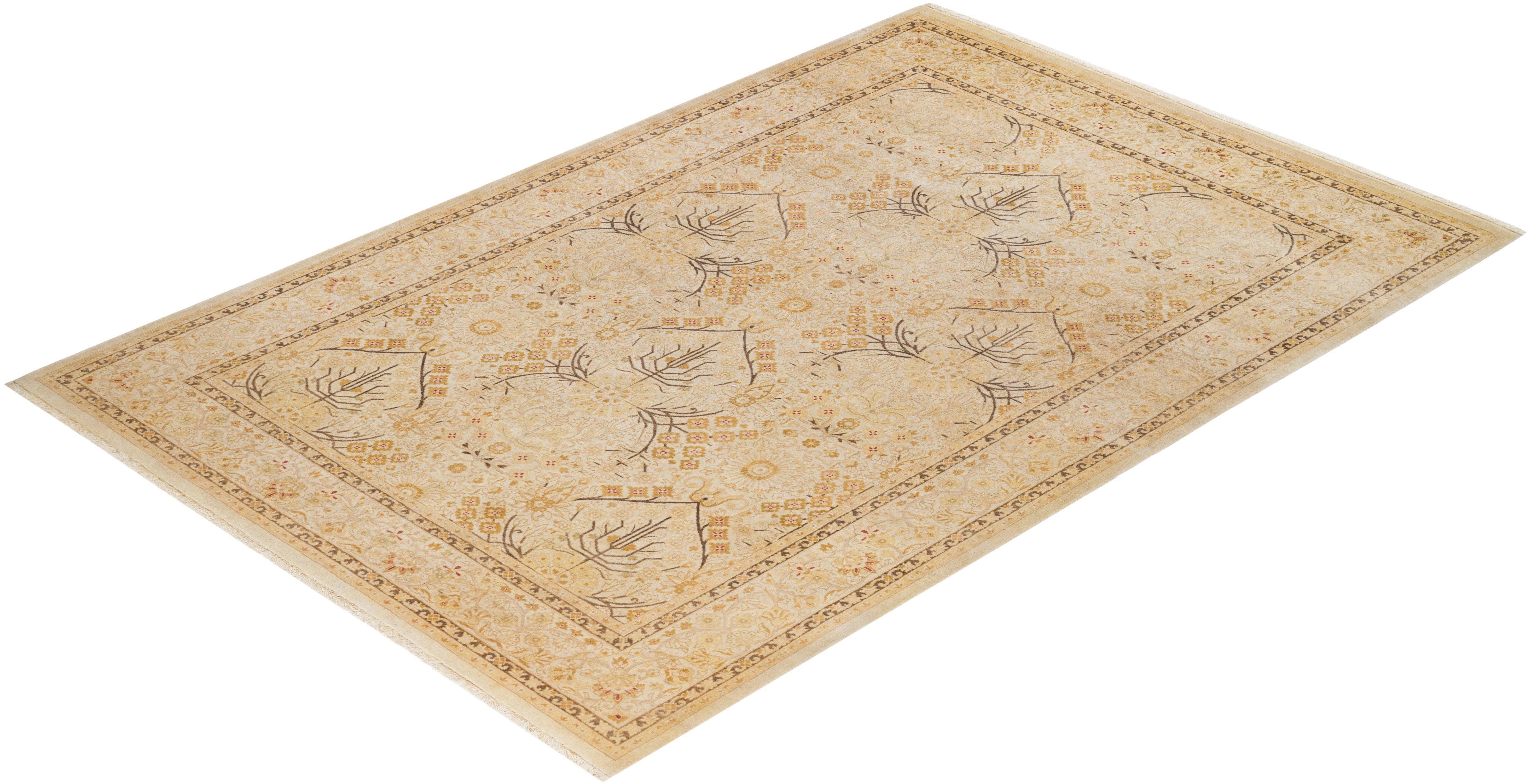 Traditional Hand Knotted Mogul Oriental Ivory Area Rug 6' 1" x 8' 10"