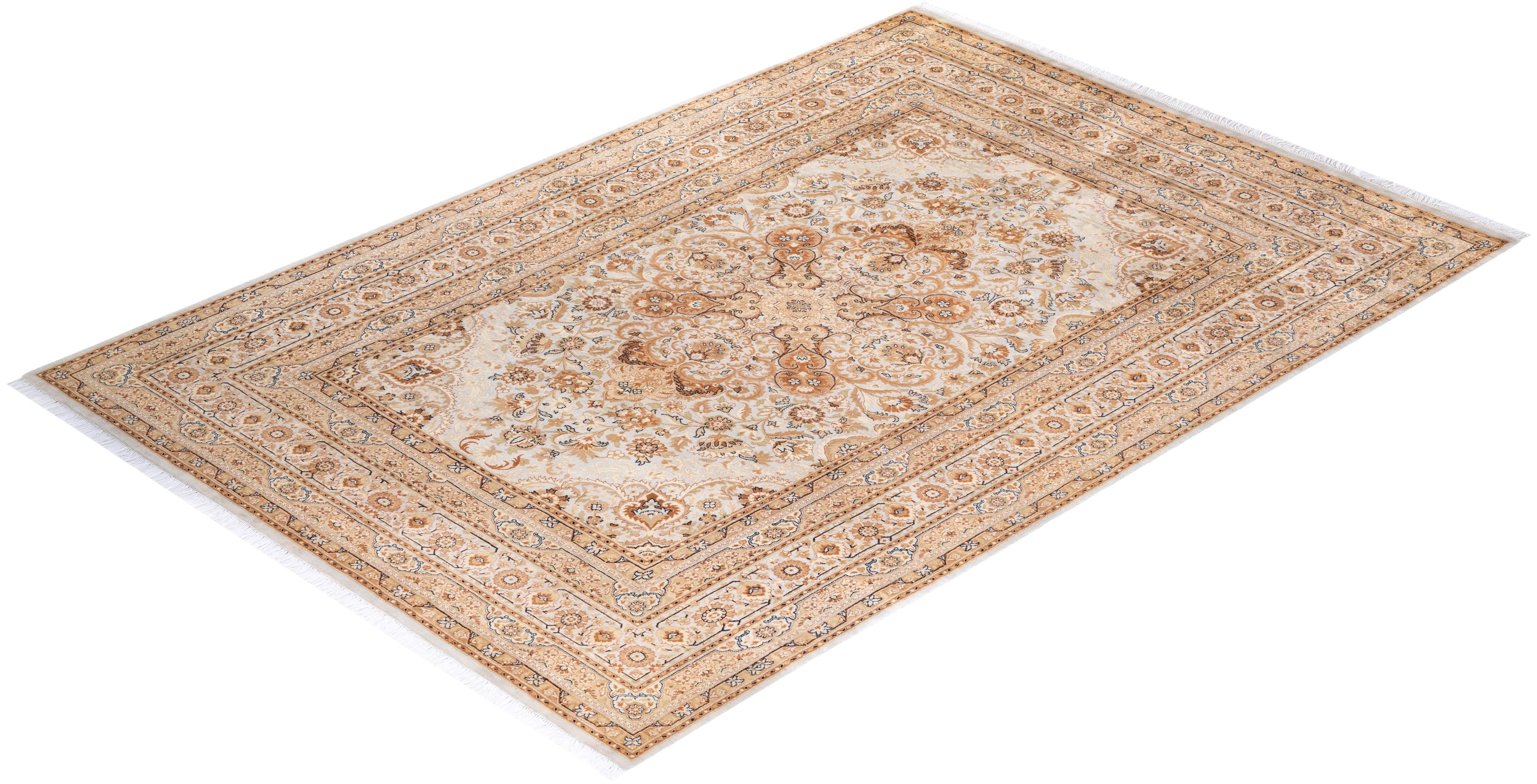 Traditional Hand Knotted Mogul Oriental Ivory Area Rug 6' 1" x 8' 10"