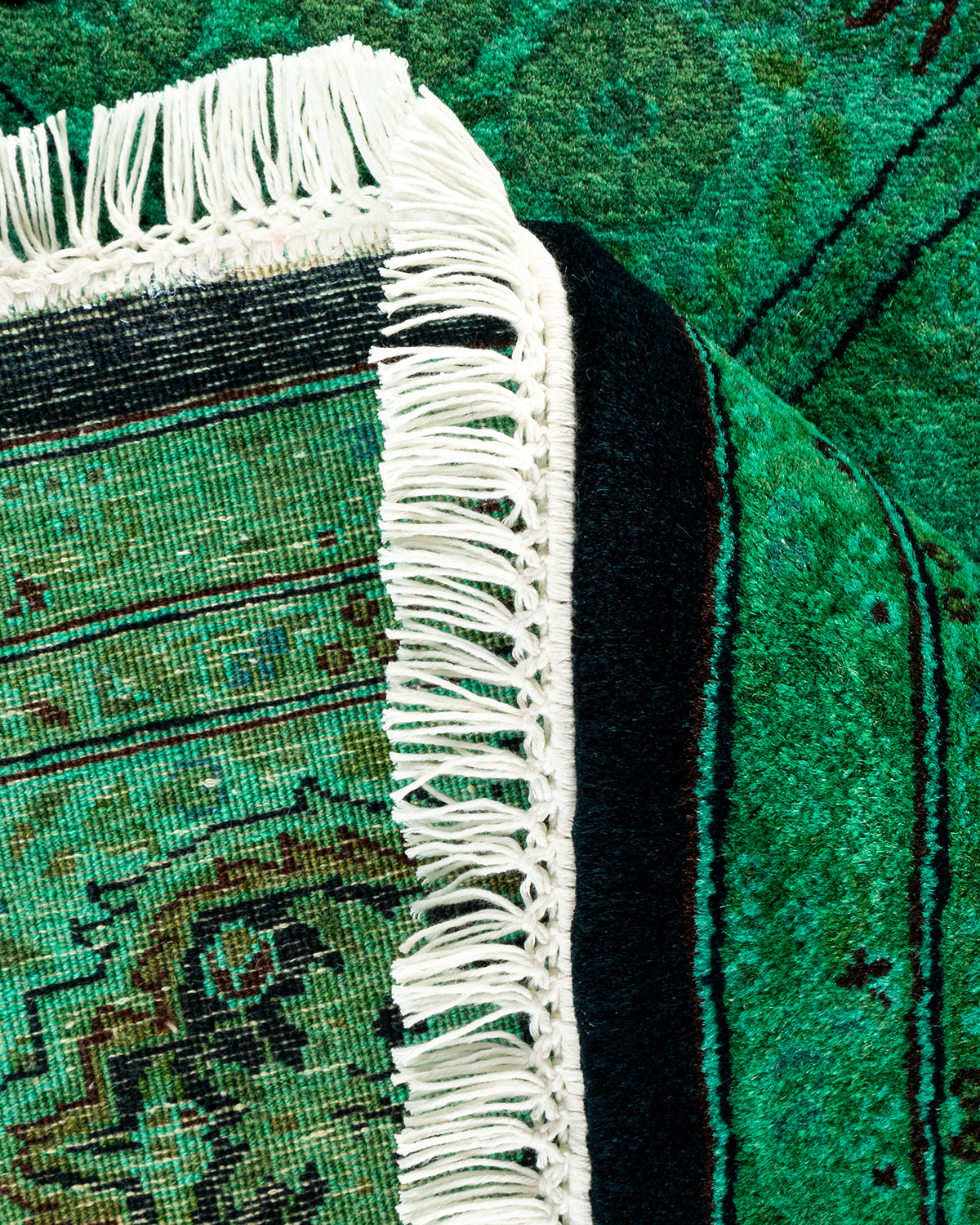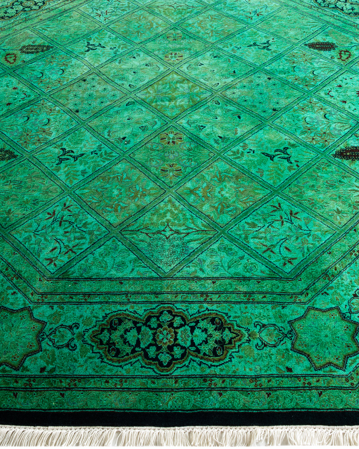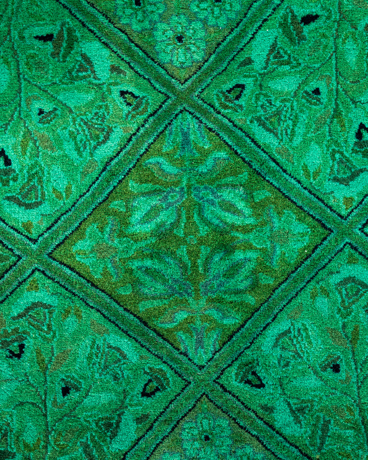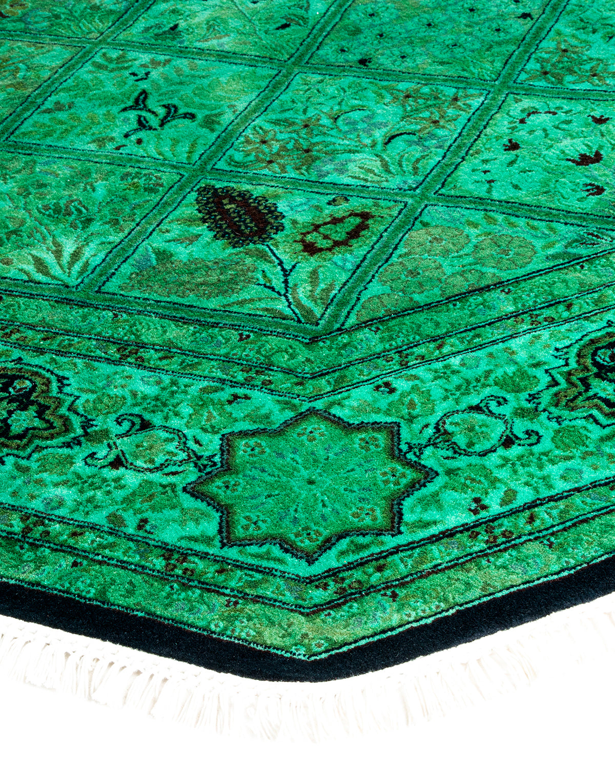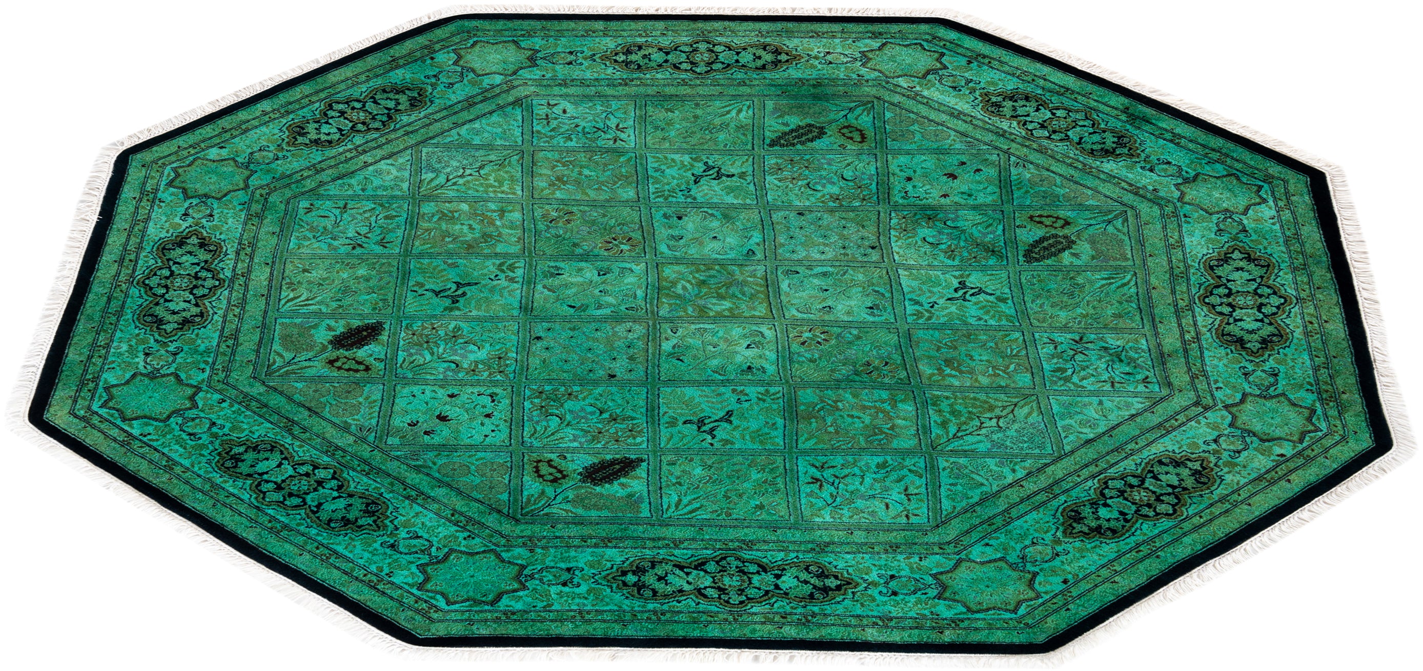 Contemporary Hand-Knotted Overdyed Green Octagon Area rug 6' 1" x 6' 1"