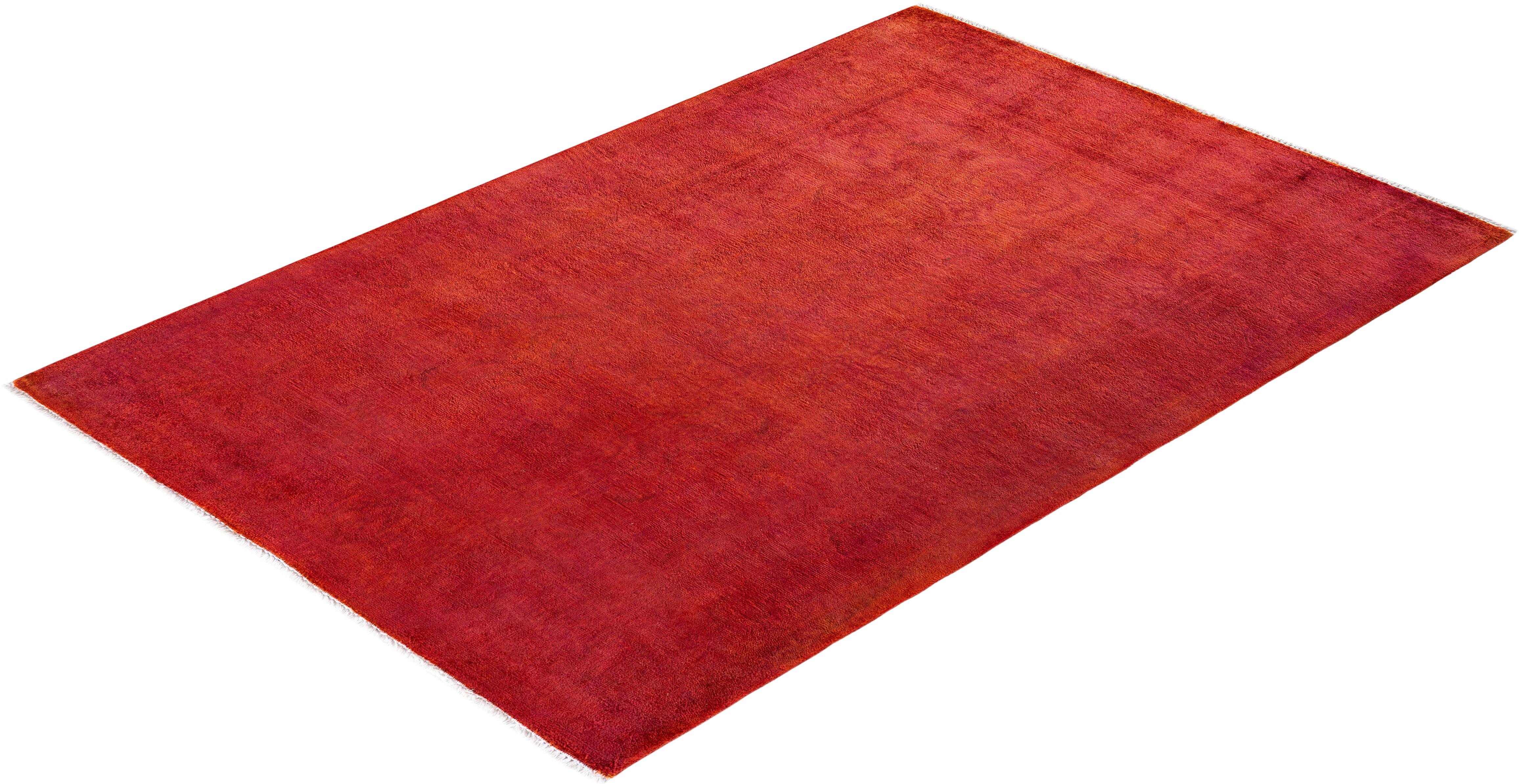 Contemporary Hand-Knotted Orange Area Rug 4' 1" x 6' 4"