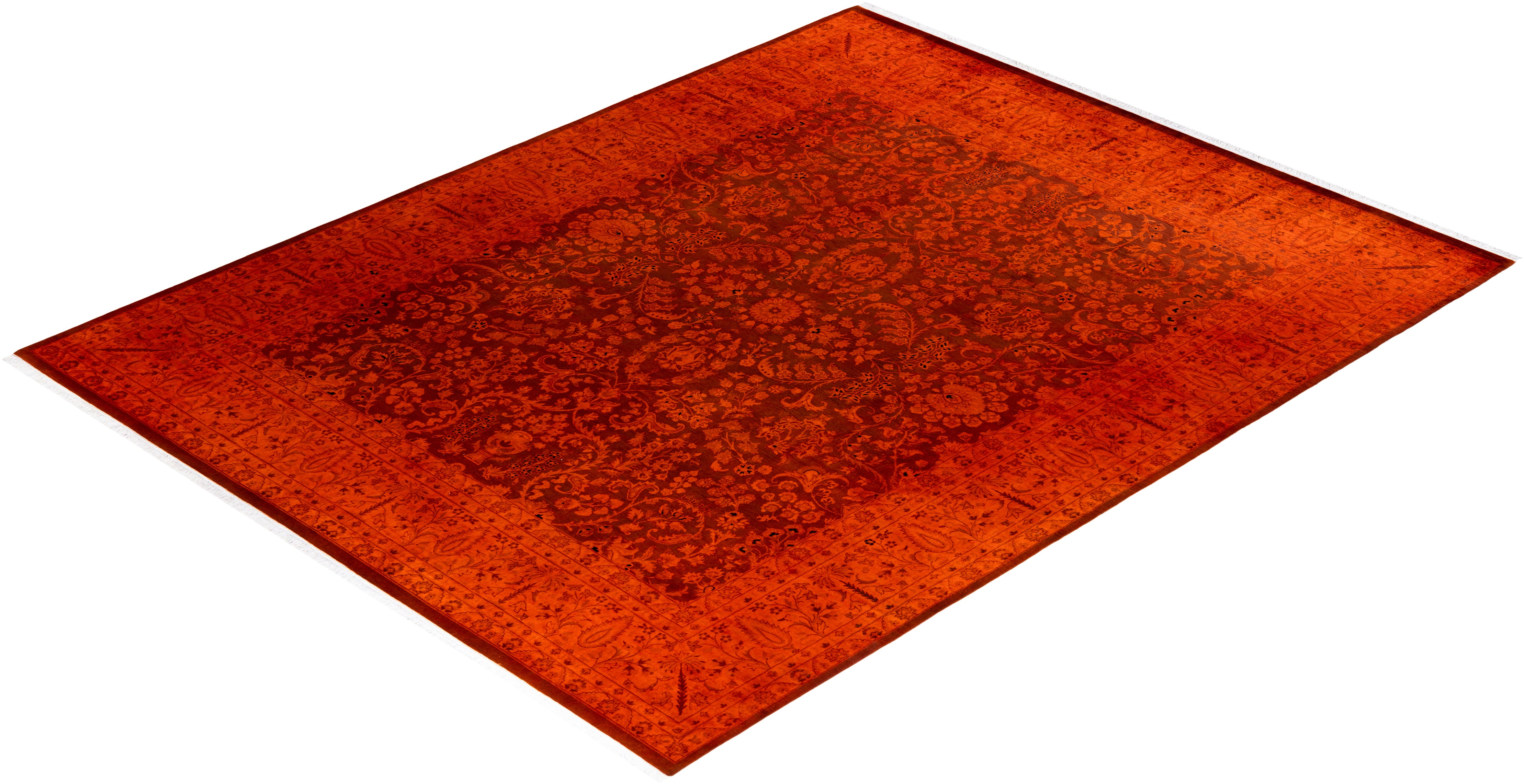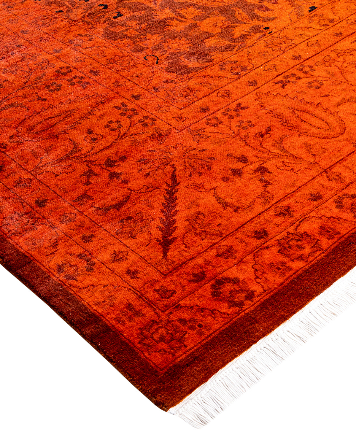 Contemporary Hand-Knotted Overdyed Orange Area Rug 8' 2" x 10' 5"