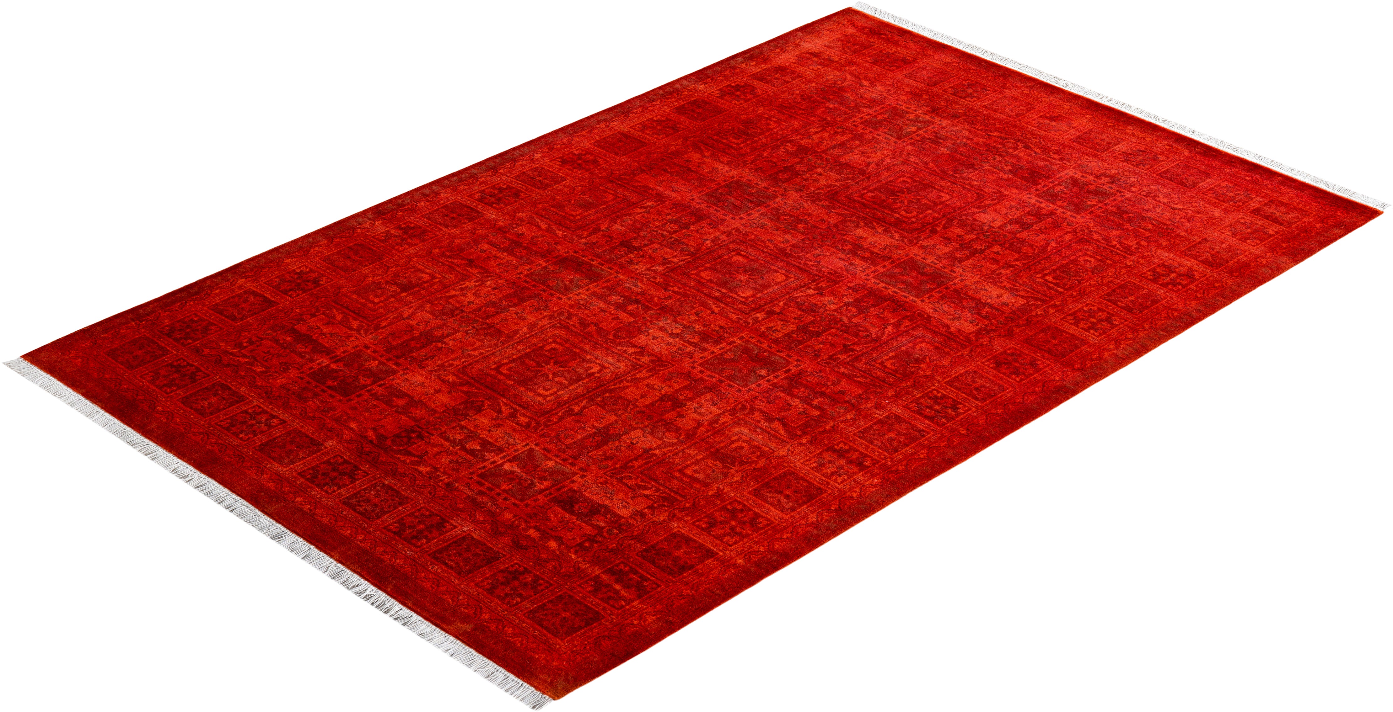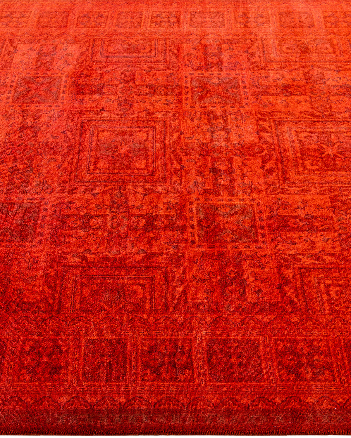 Contemporary Hand-Knotted Overdyed Orange Area Rug 4' 2" x 6' 5"