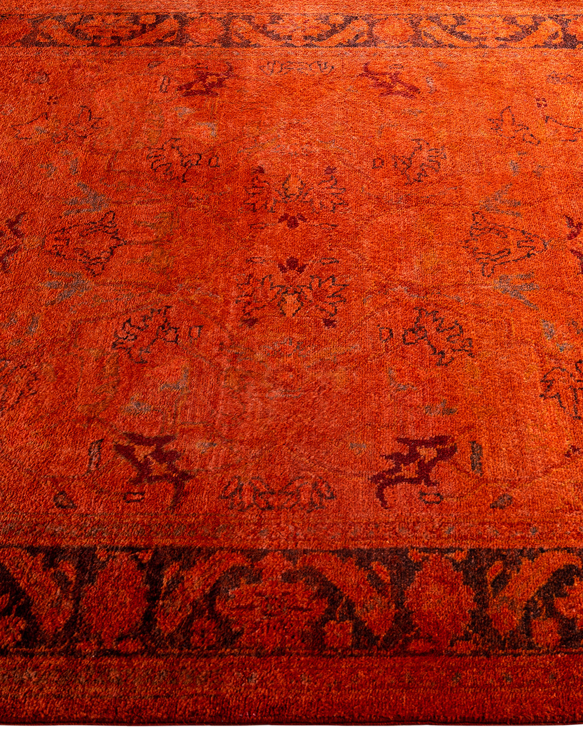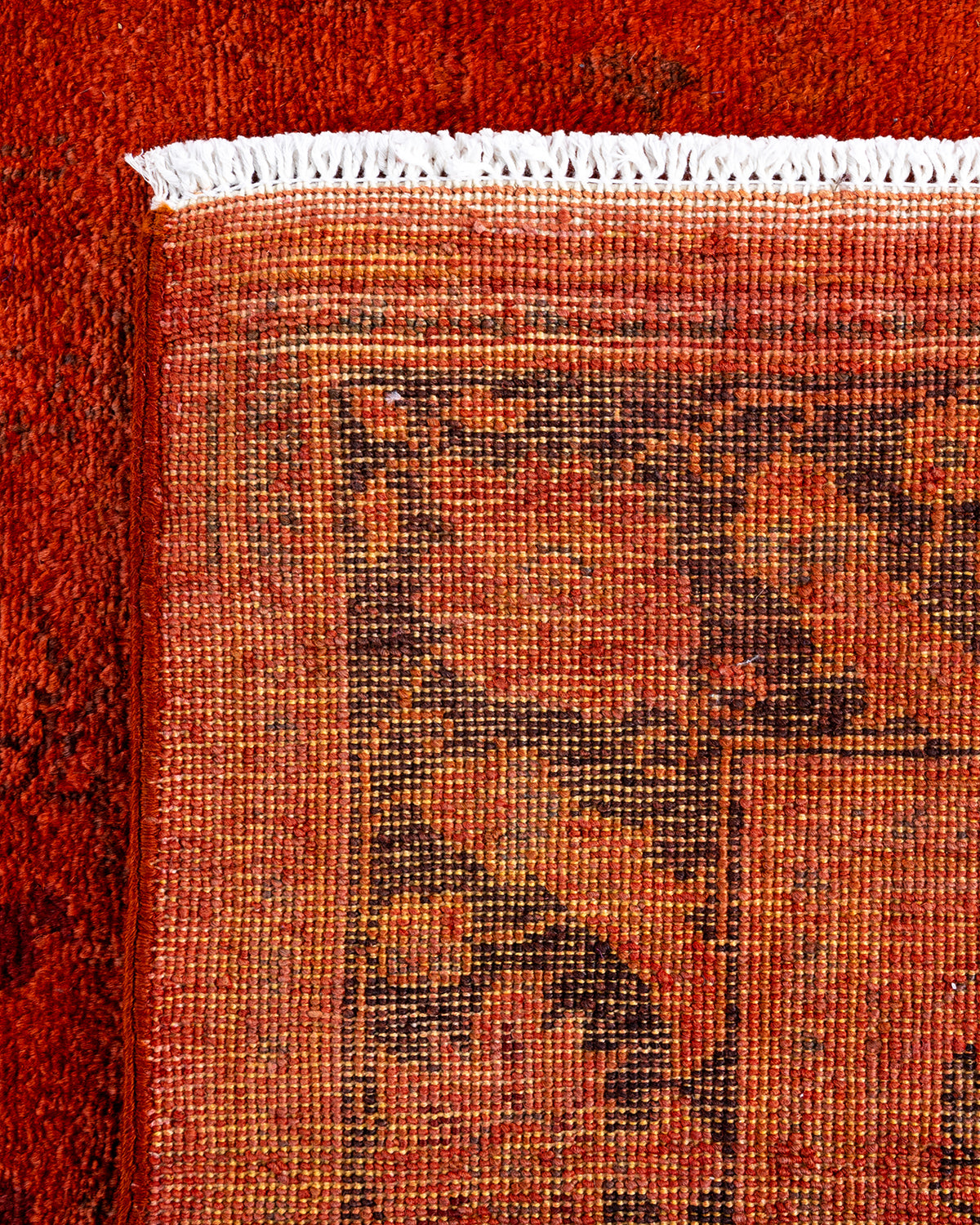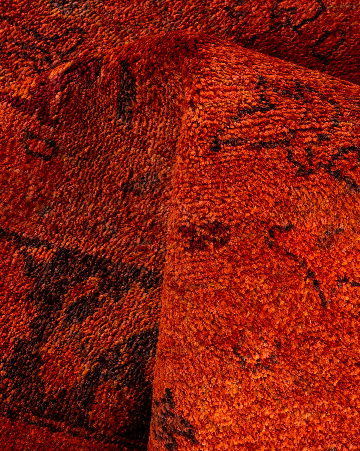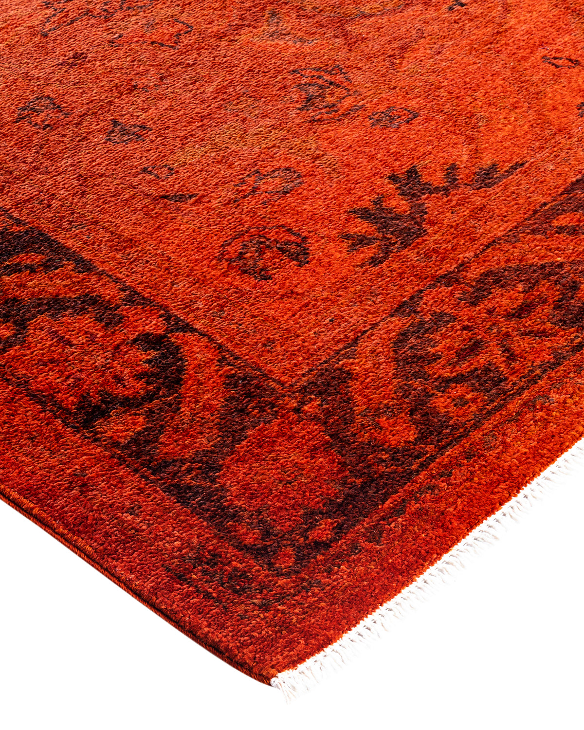 Contemporary Hand-Knotted Overdyed Orange Area Rug 4' 1" x 6' 1"