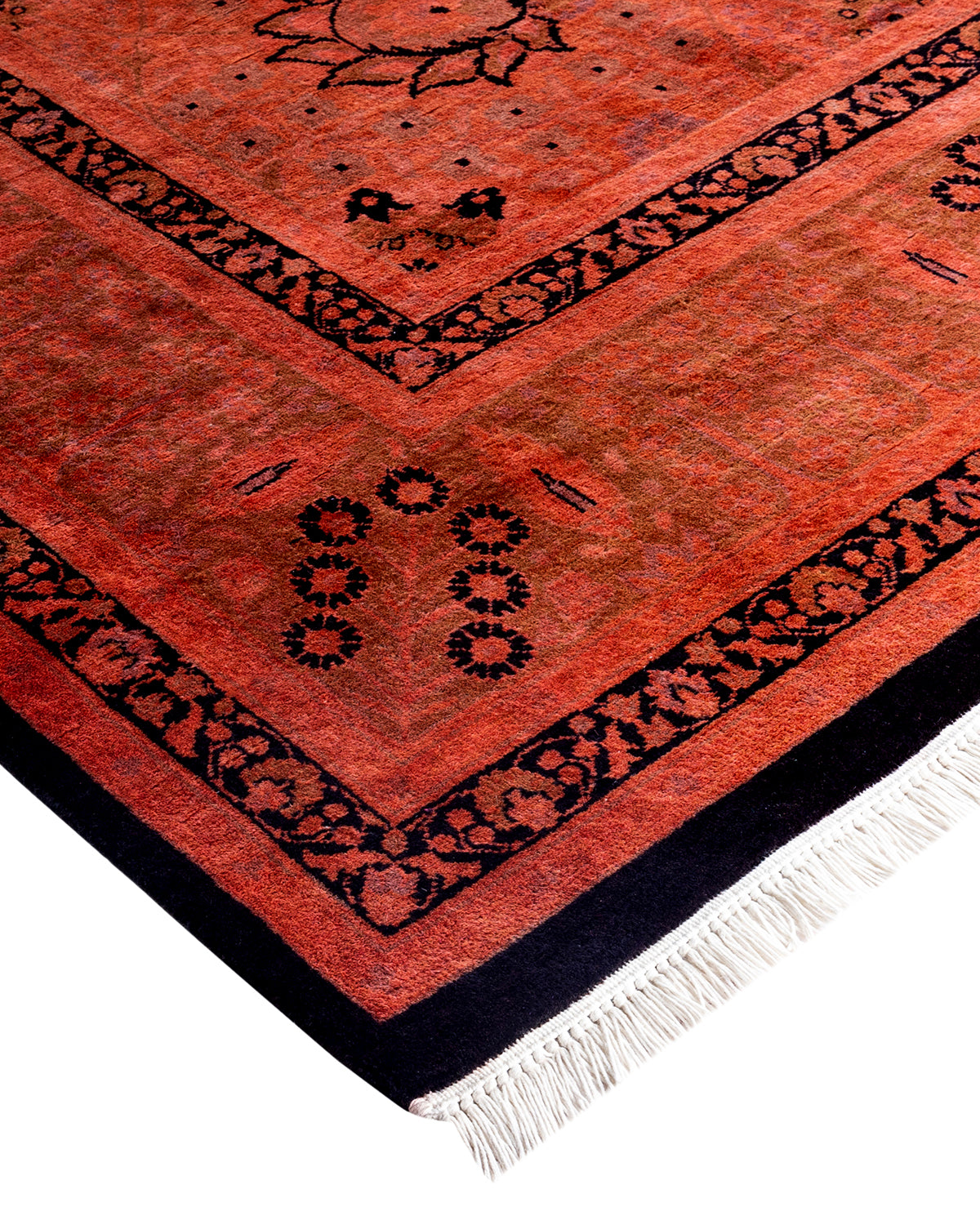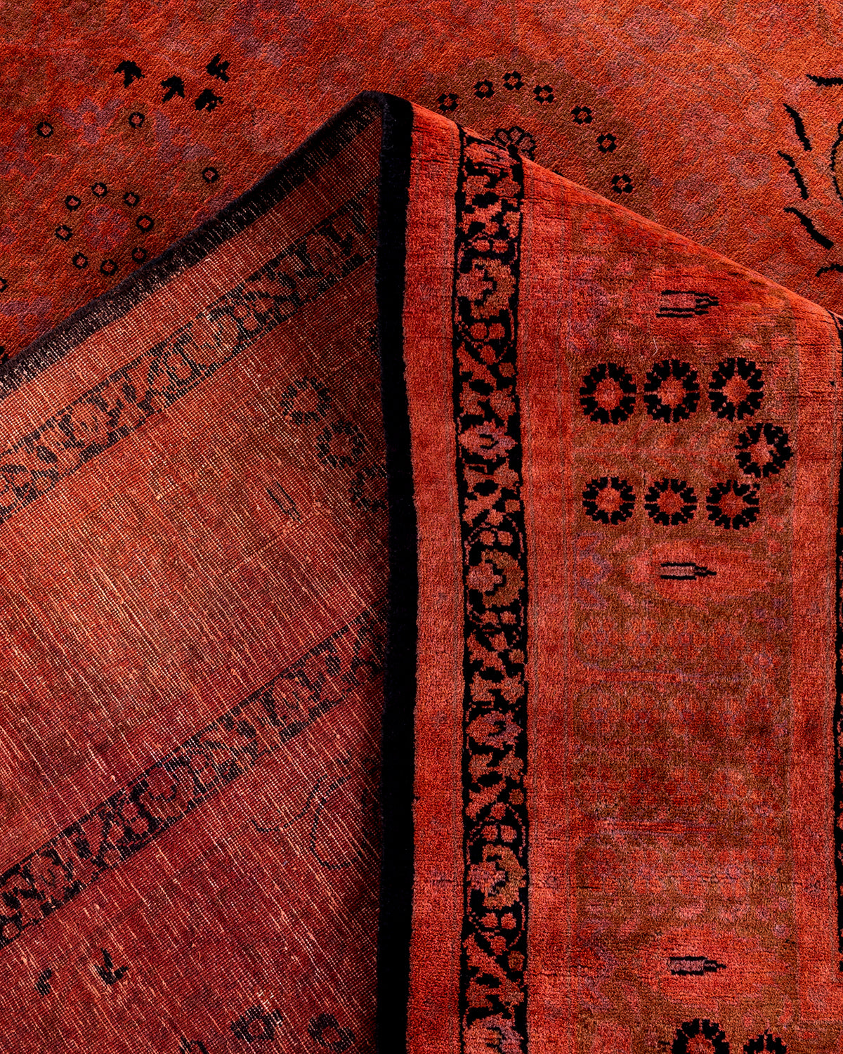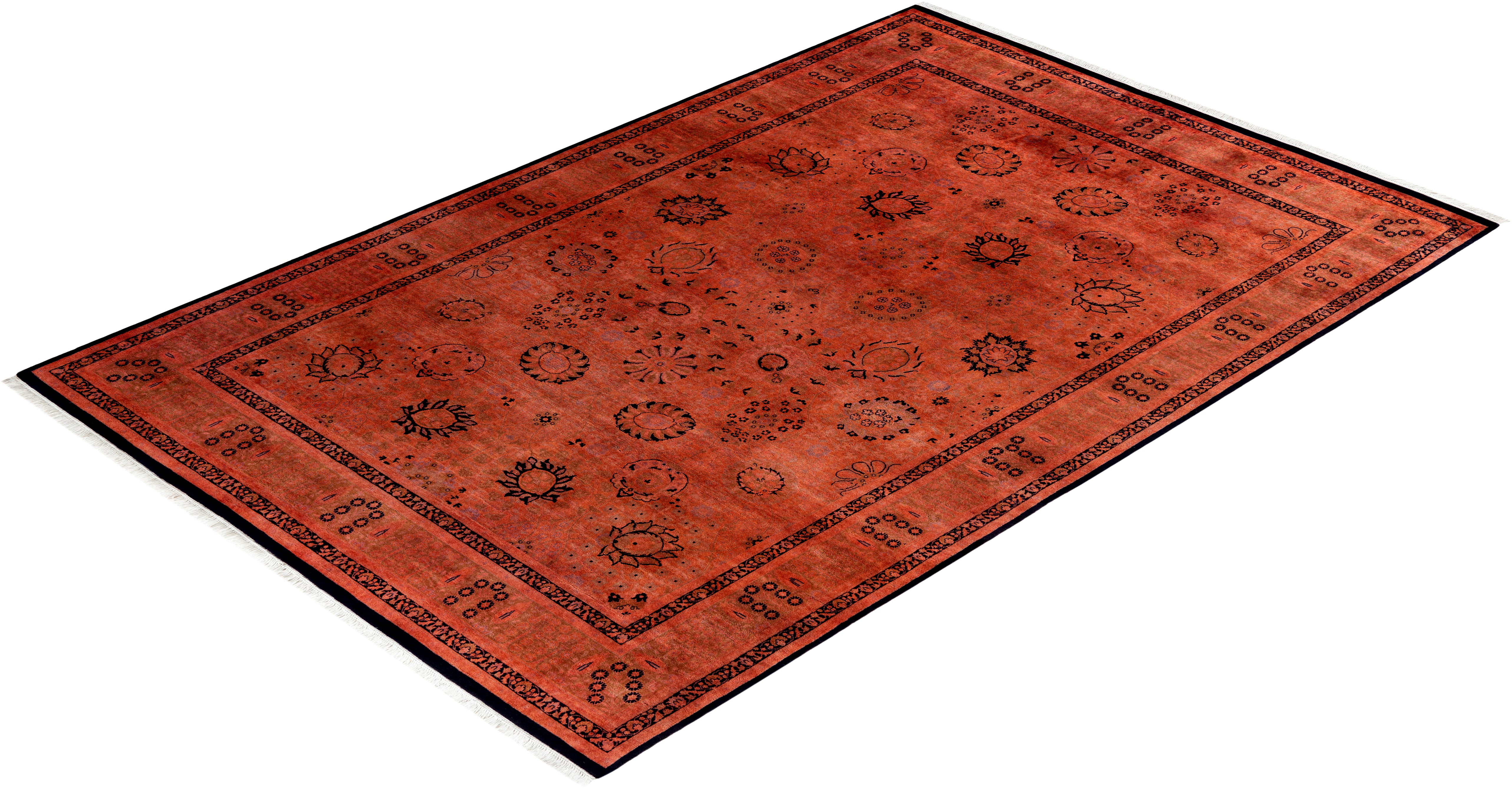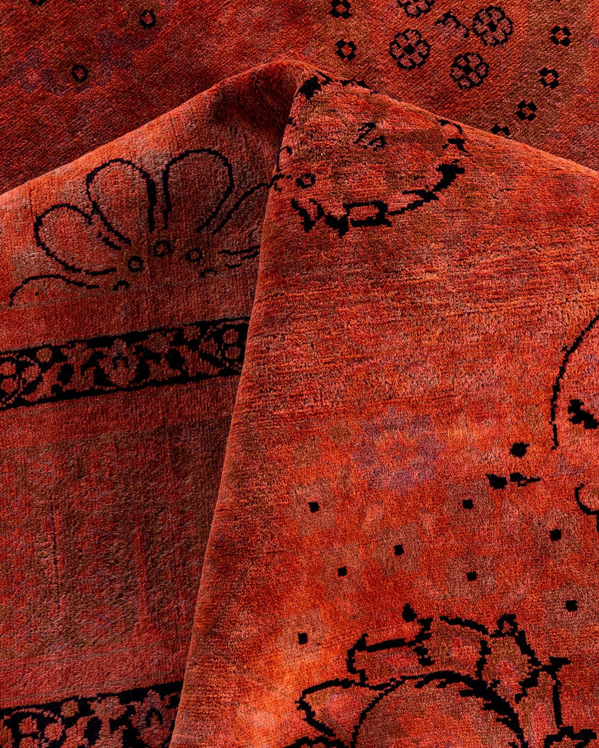 Contemporary Hand-Knotted Overdyed Orange Area Rug 6' 1" x 9' 4"