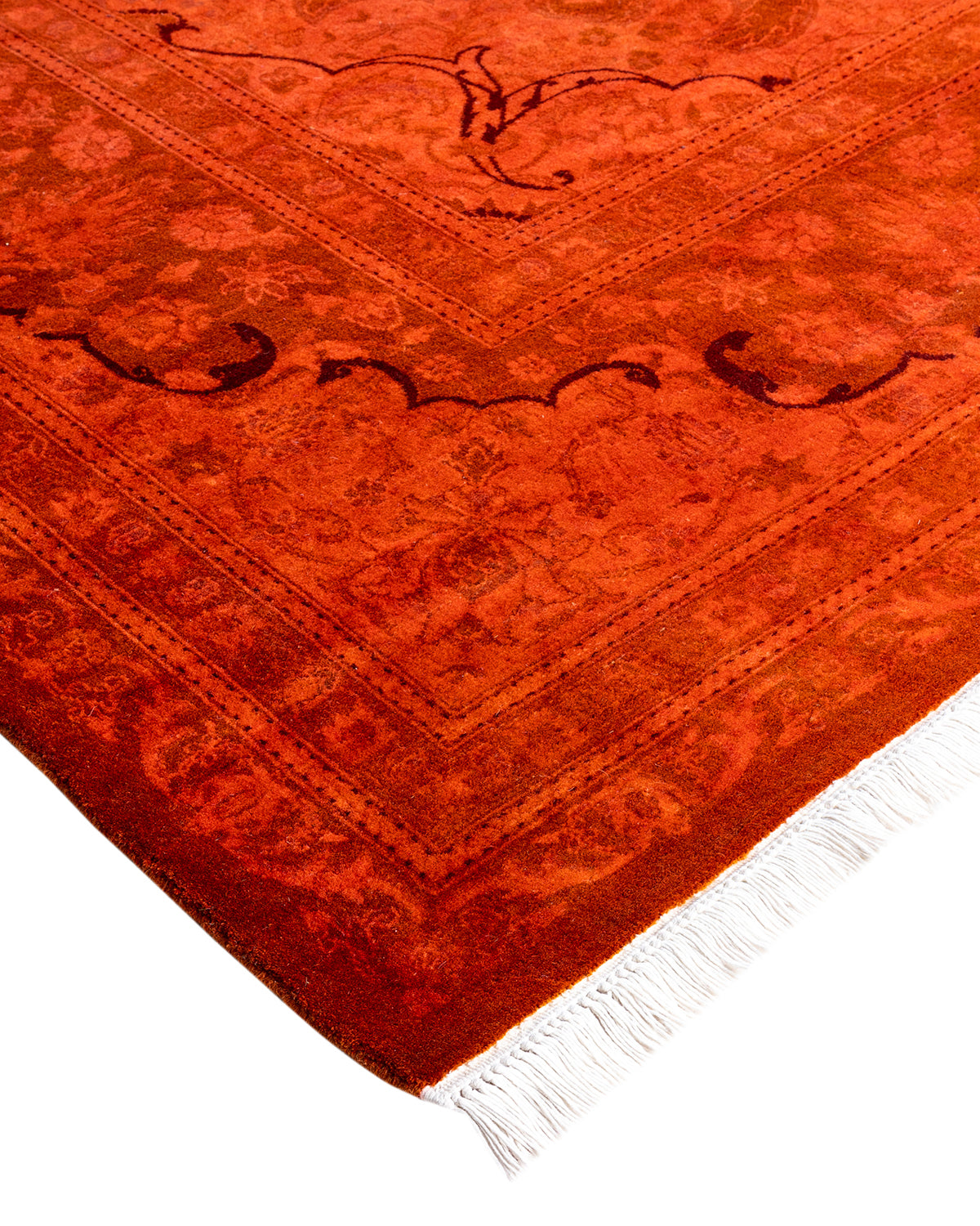 Contemporary Hand-Knotted Overdyed Orange Area Rug 8' 2" x 10' 5"