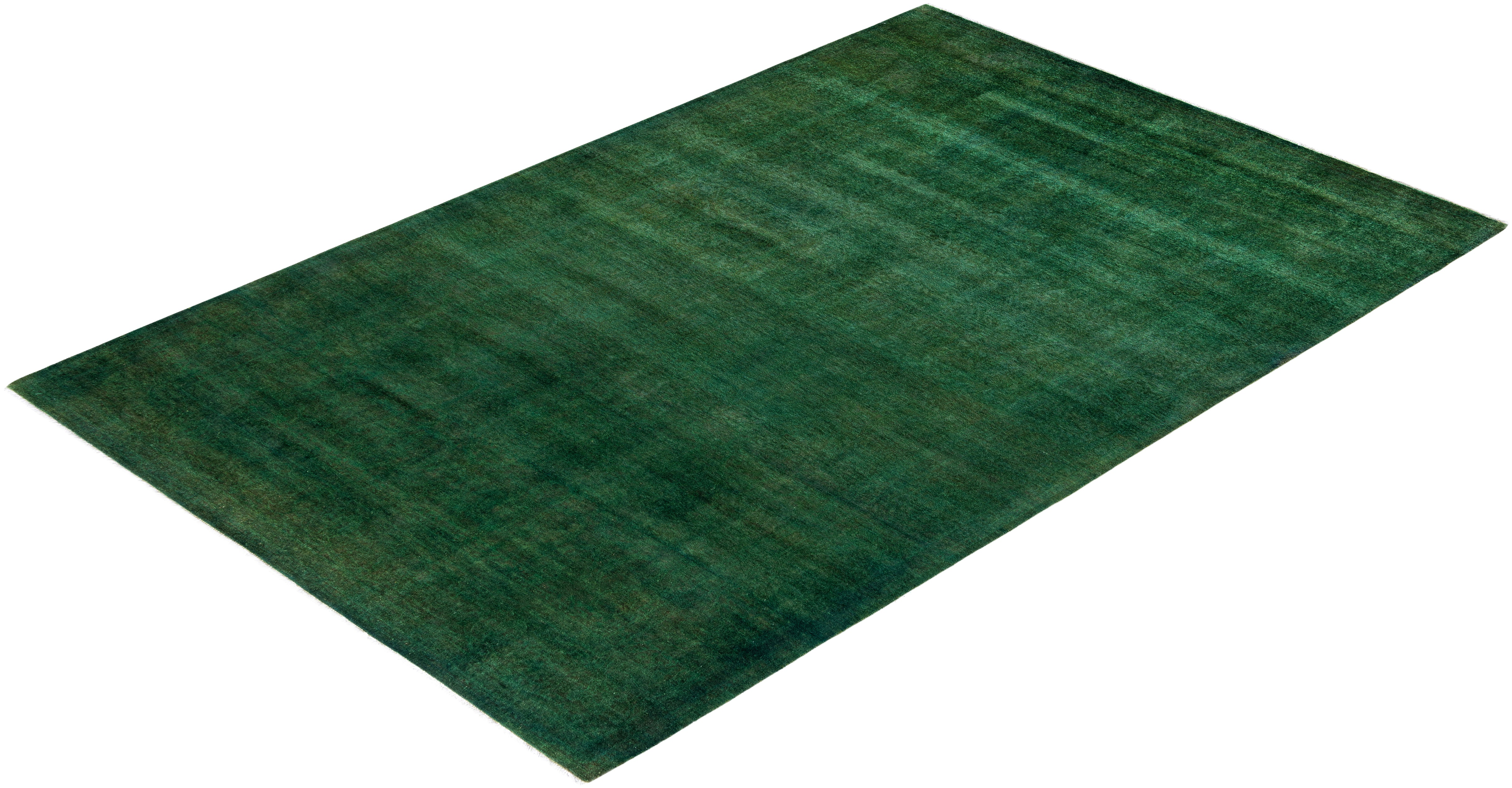 Overdyed One-of-a-Kind Wool Green Area Rug 6' 1" x 9' 5"