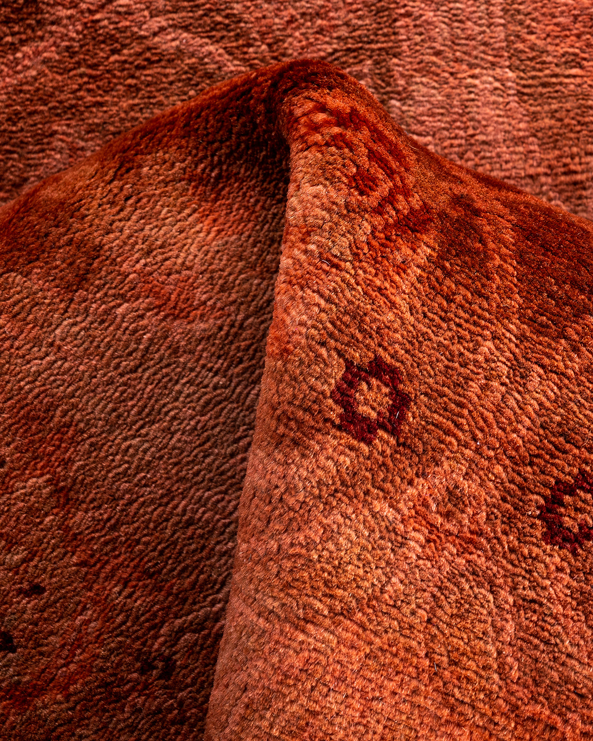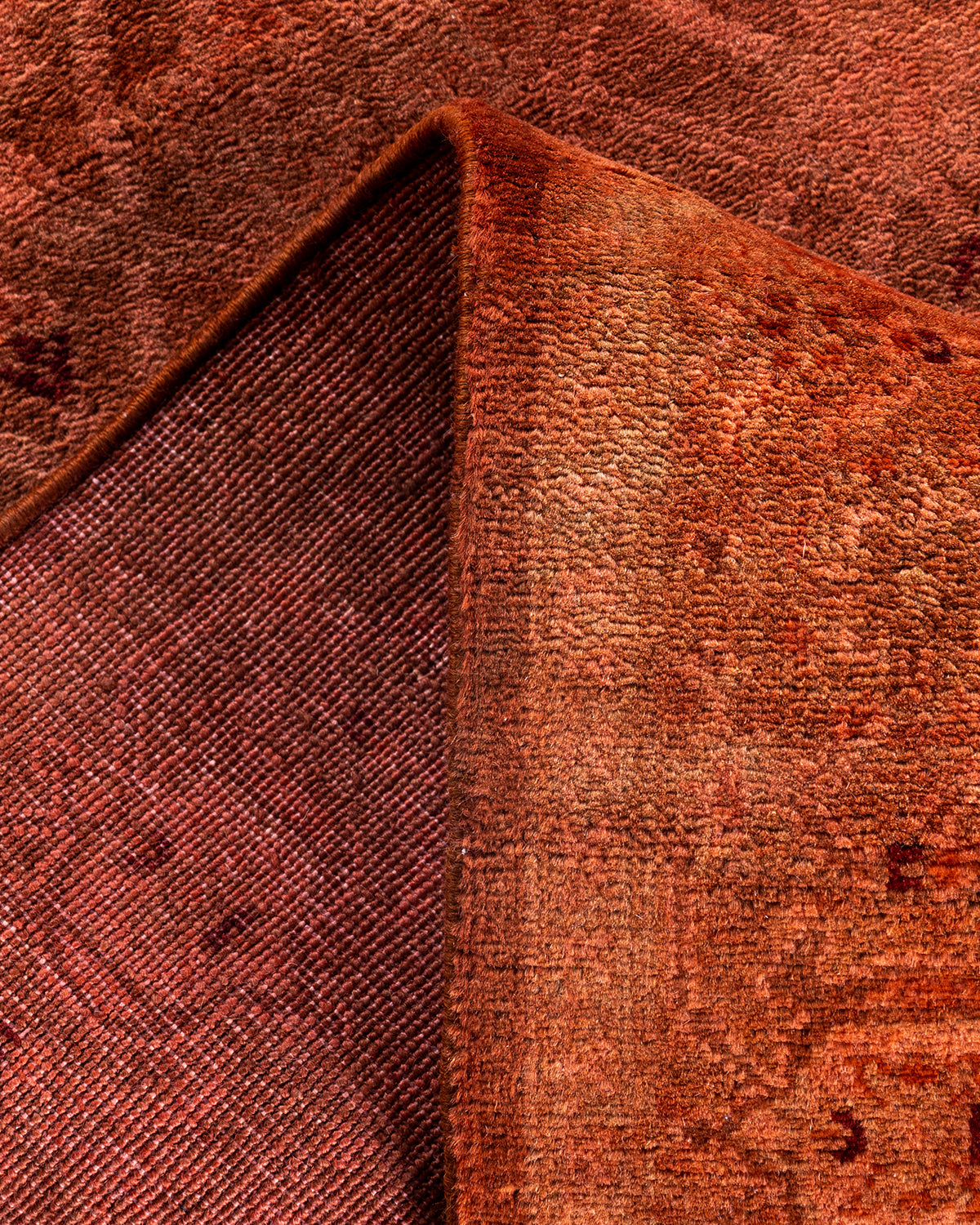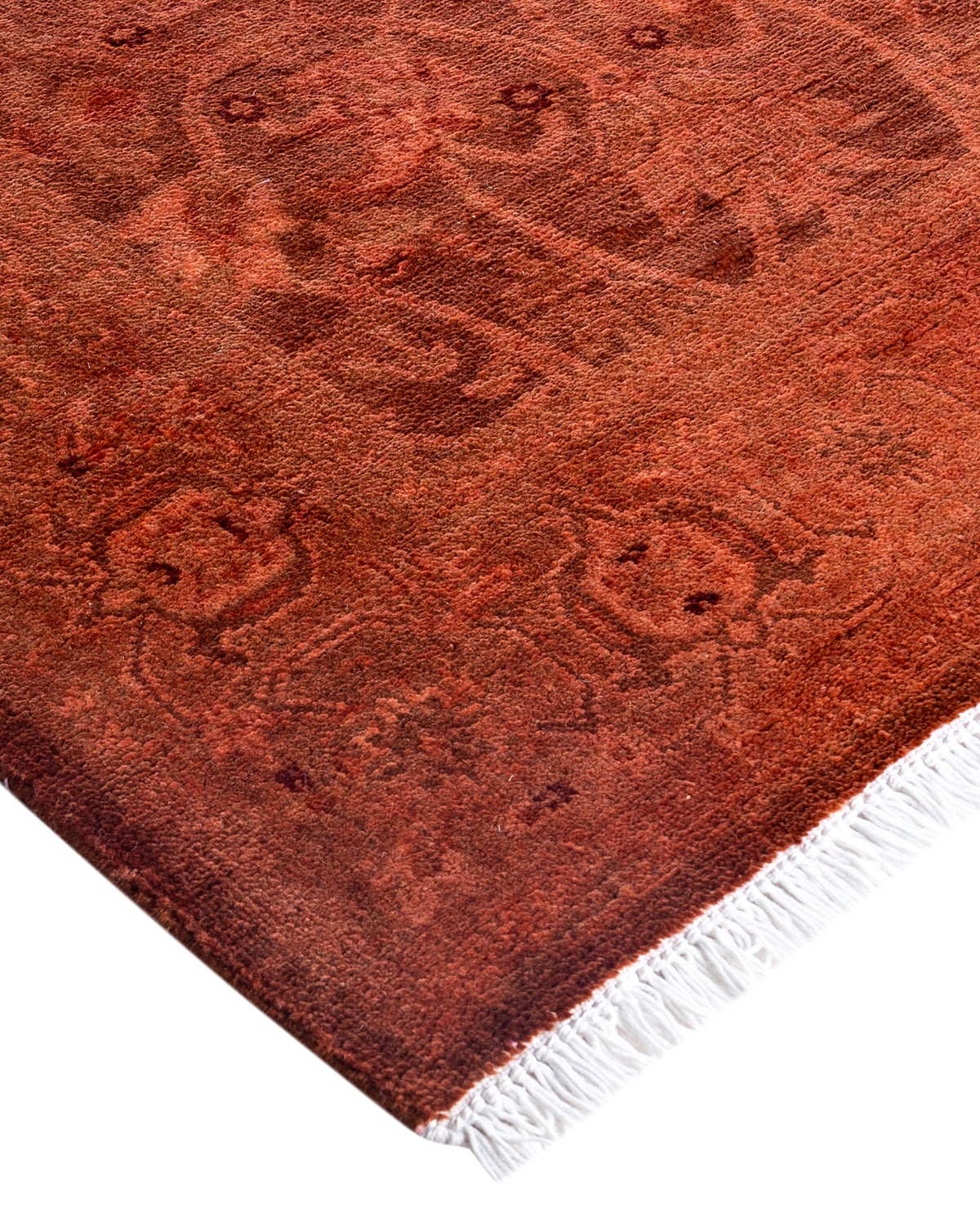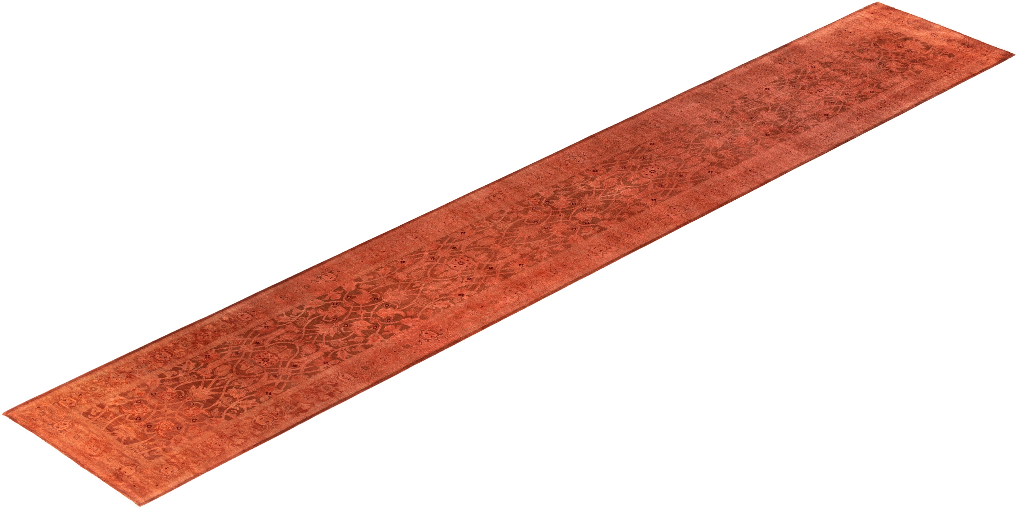 Contemporary Hand-Knotted Overdyed Orange Runner 2' 6" x 16' 4"