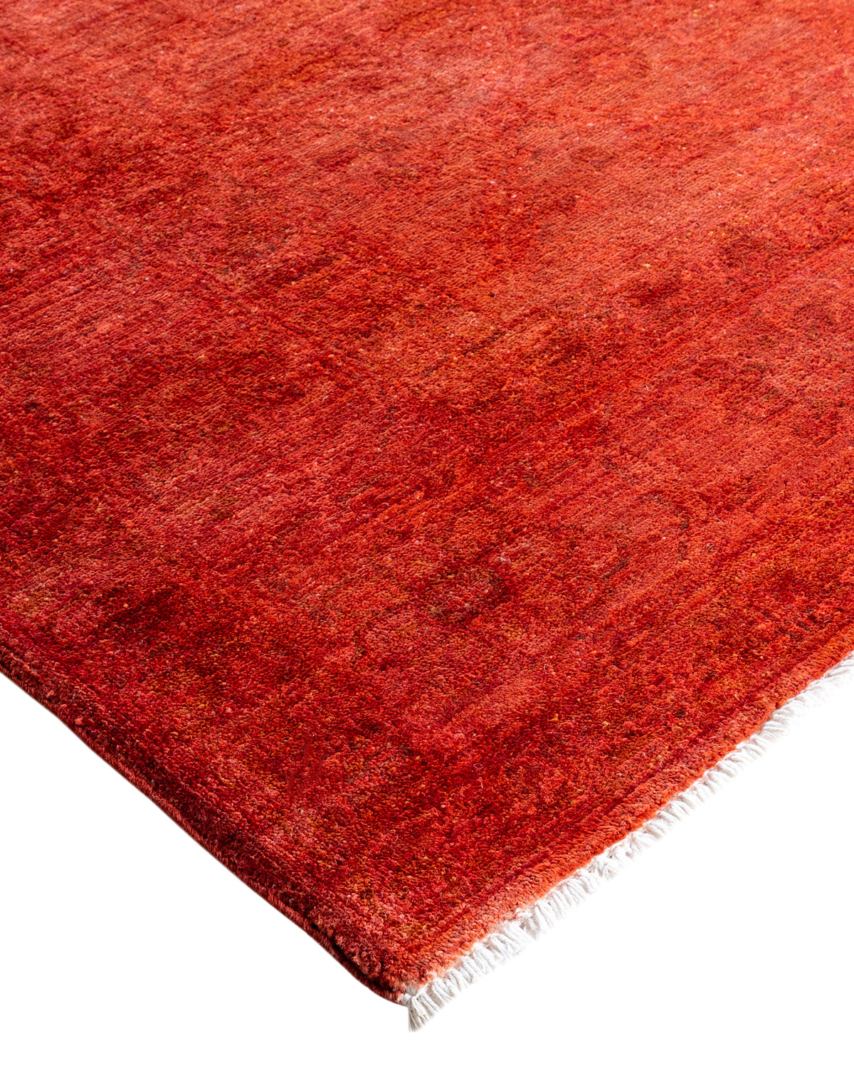 Contemporary Hand-Knotted Overdyed Orange Area Rug 6' 8" x 8' 8"