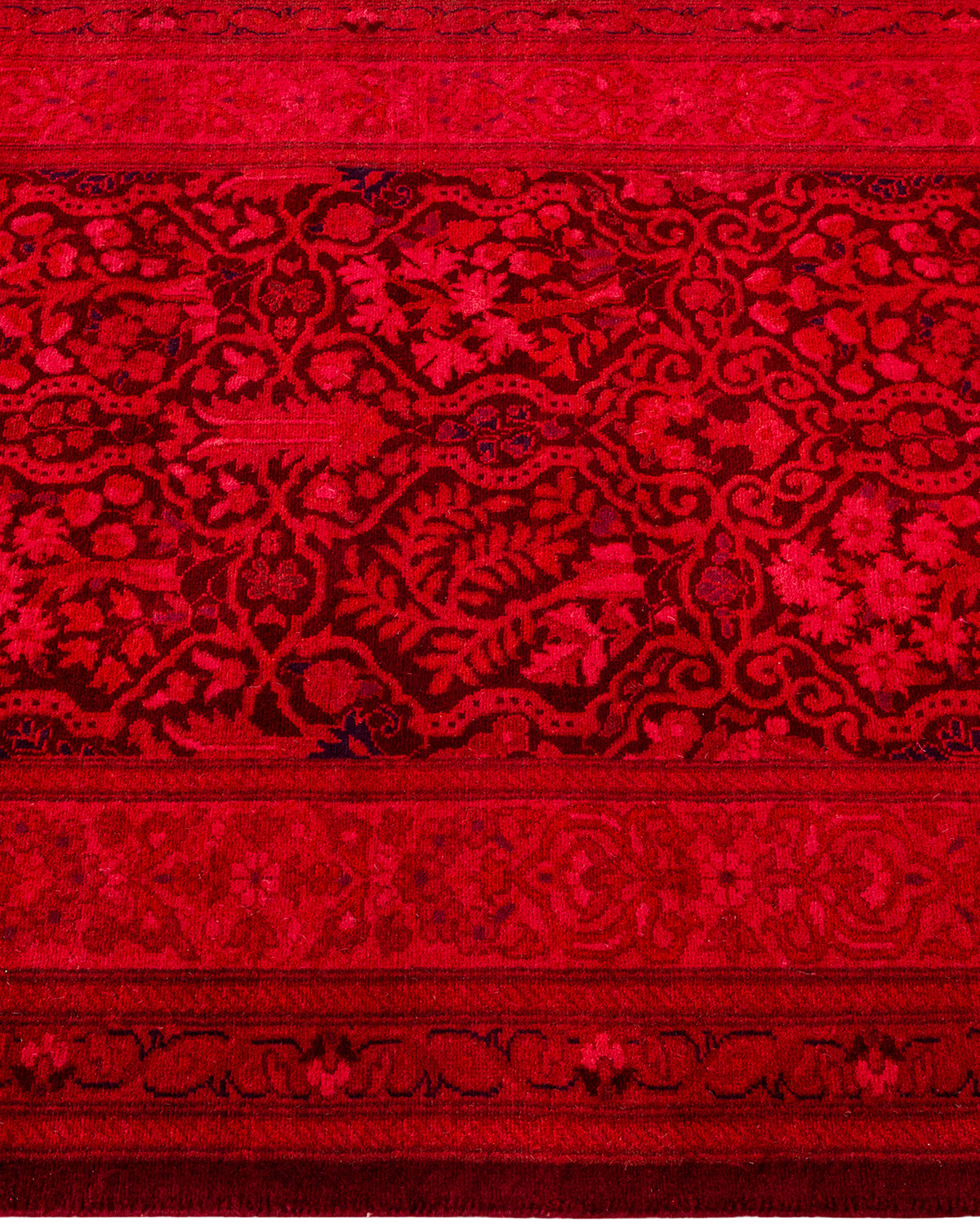 Overdyed rugs epitomize classic with a twist: traditional patterns overdyed in brilliant color. Each hand-knotted rug is washed in a 100%-natural botanical dye that reveals hidden nuances in the designs. These are rugs that transcend trends, and their sturdy construction ensures that they’ll withstand years of heavy traffic.