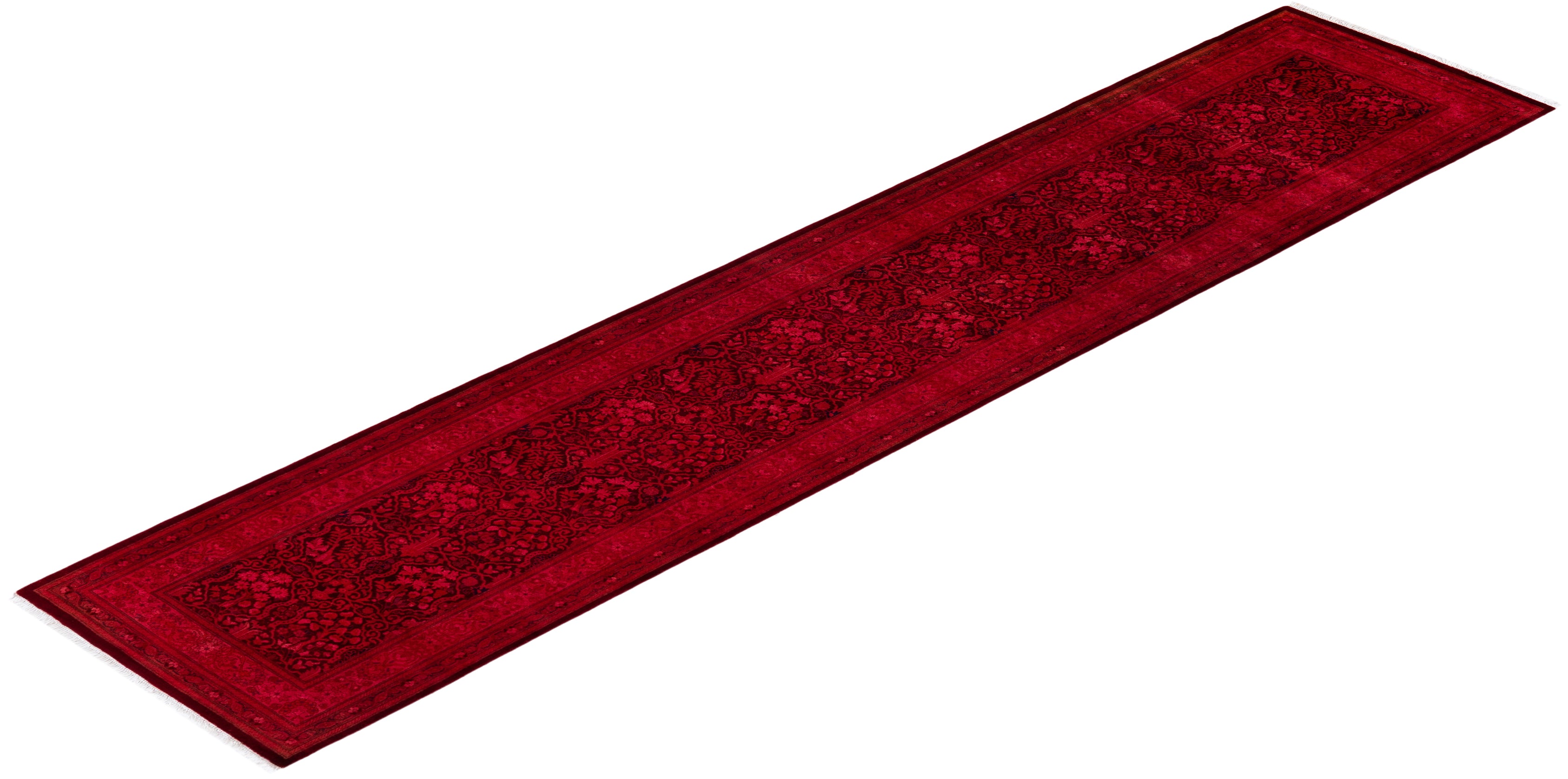 Contemporary Hand-Knotted Overdyed Red Runner 2' 7" x 12' 2"