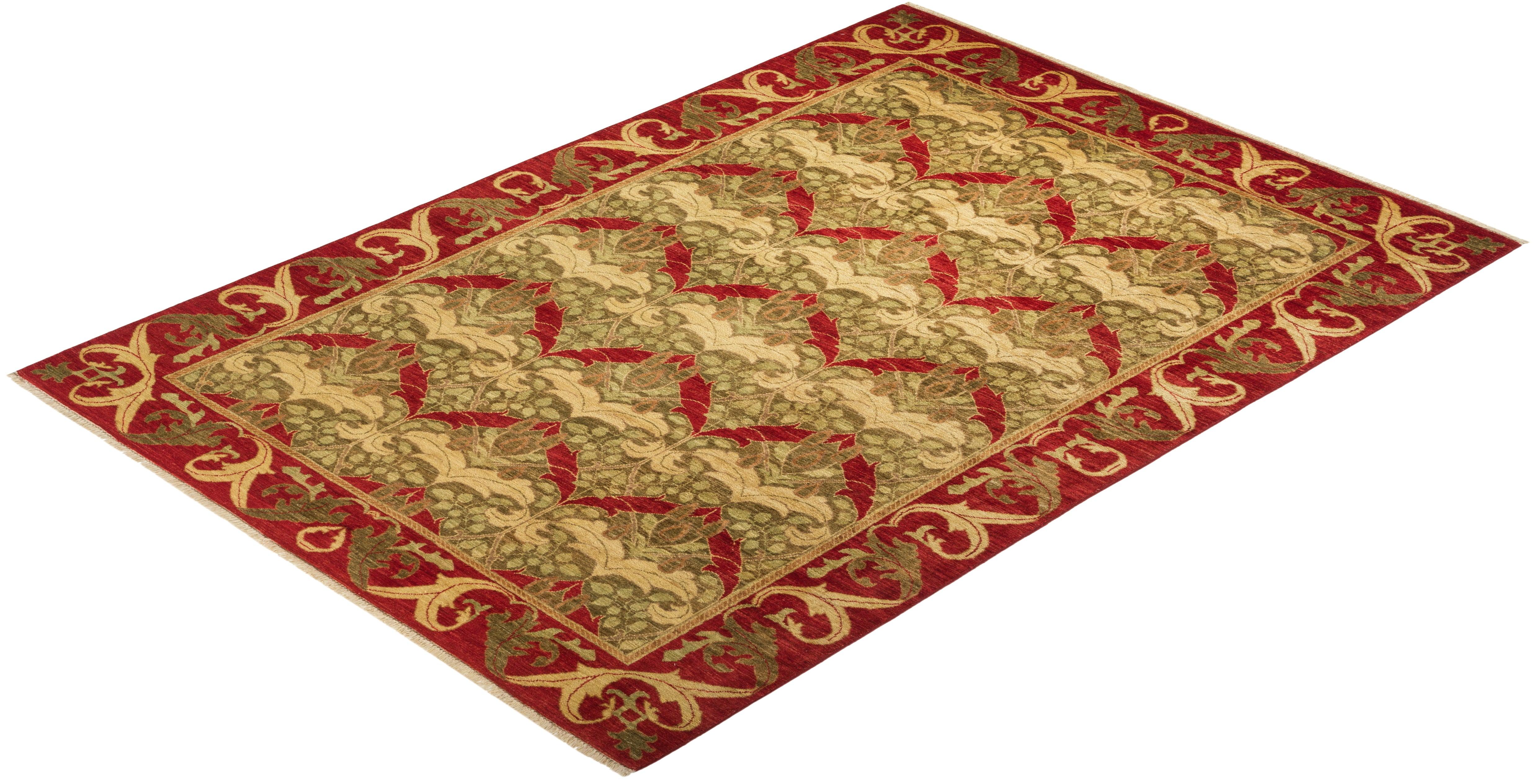 With simple, bold, yet informal designs and a broad palette of colors that ranges from earthy hues to brilliant gems, the rugs in the Arts & Crafts collection infuse a room with a sense of sophisticated rebellion. Nature-inspired motifs are the focal point in lieu of more traditional motifs. Skillfully made with sumptuous wool piles, these rugs bring a harmonious freedom and charming irreverence to any space.