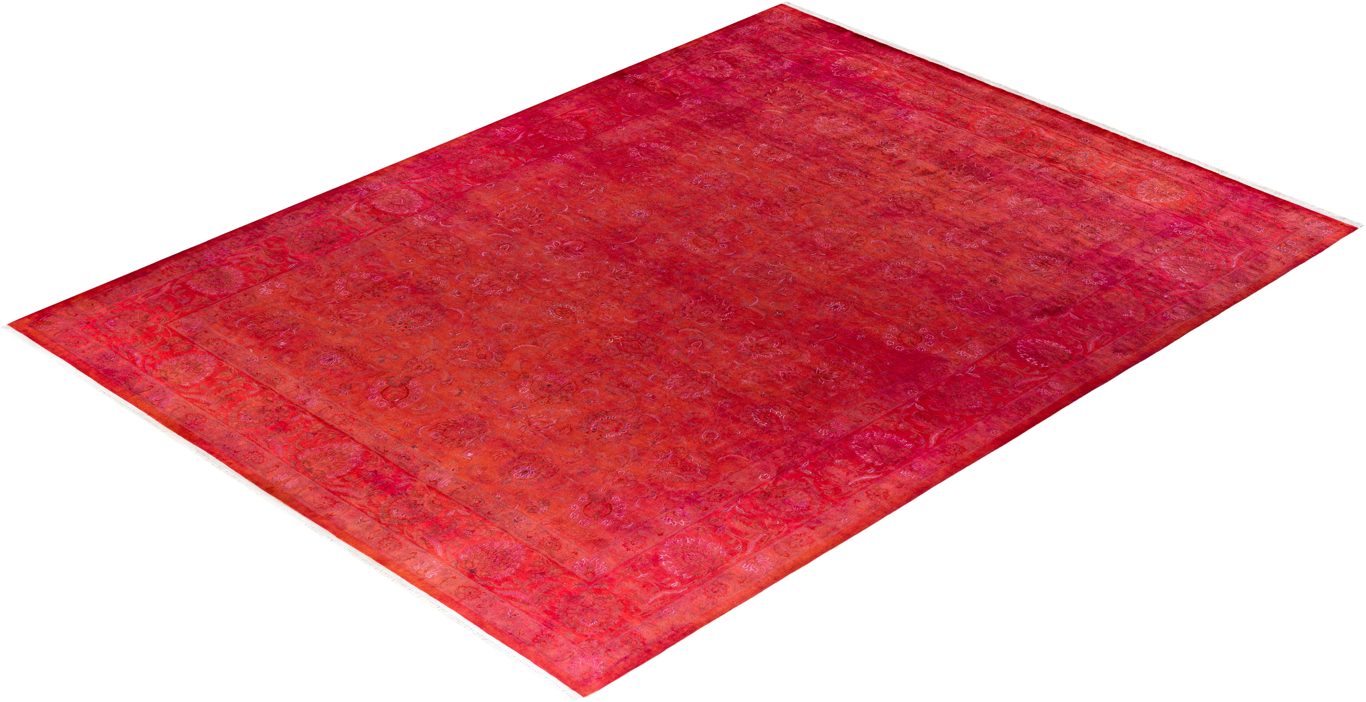 Contemporary Hand-Knotted Overdyed Orange Area Rug 9' 2" x 12' 4"