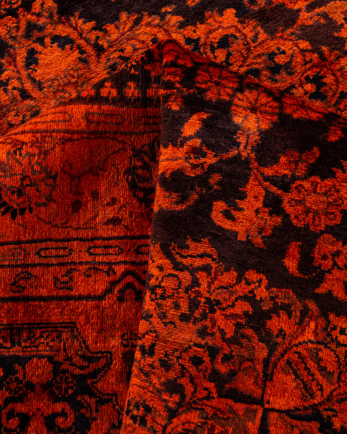 Contemporary Hand-Knotted Overdyed Orange Area Rug 6' 1" x 8' 10"
