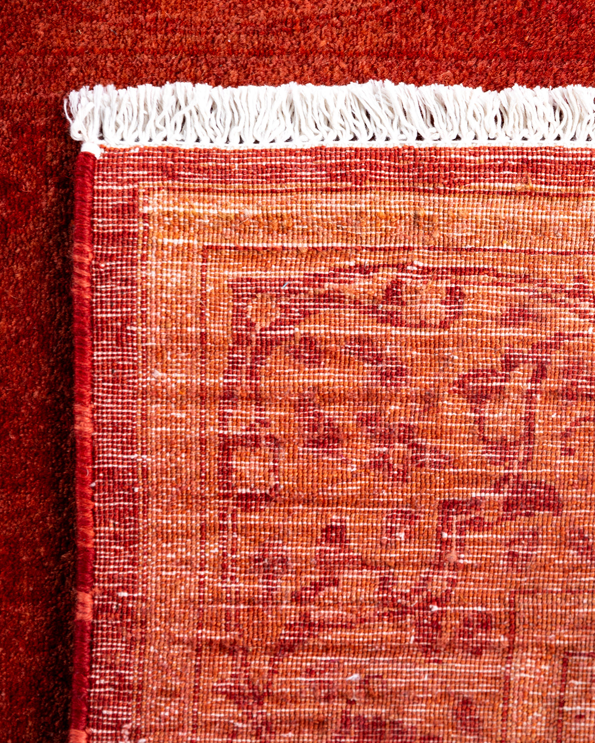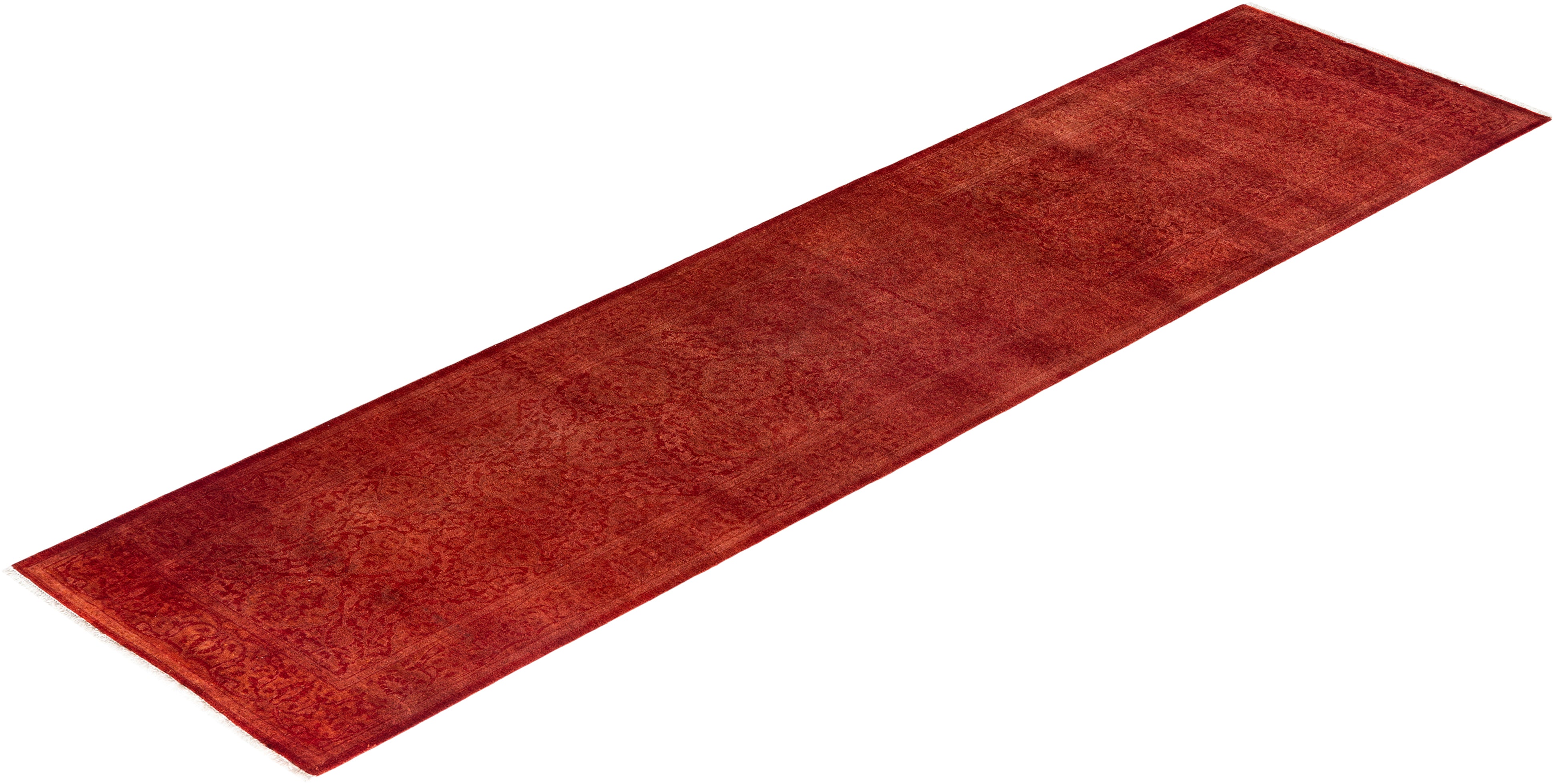 Contemporary Hand-Knotted Overdyed Orange Runner 2' 5" x 9' 9"