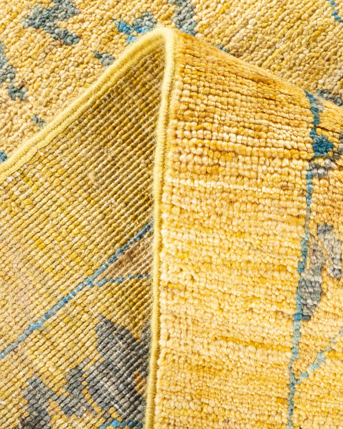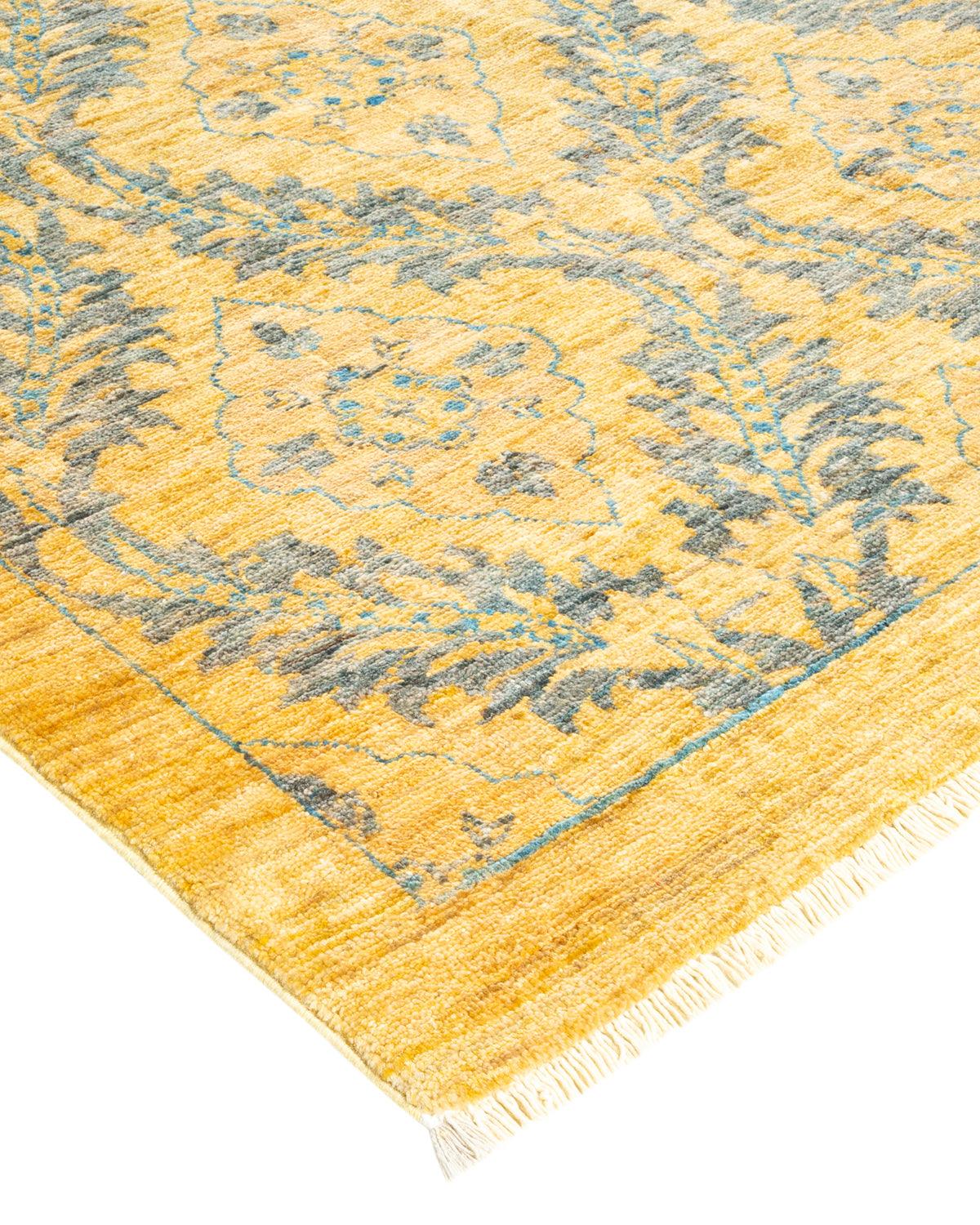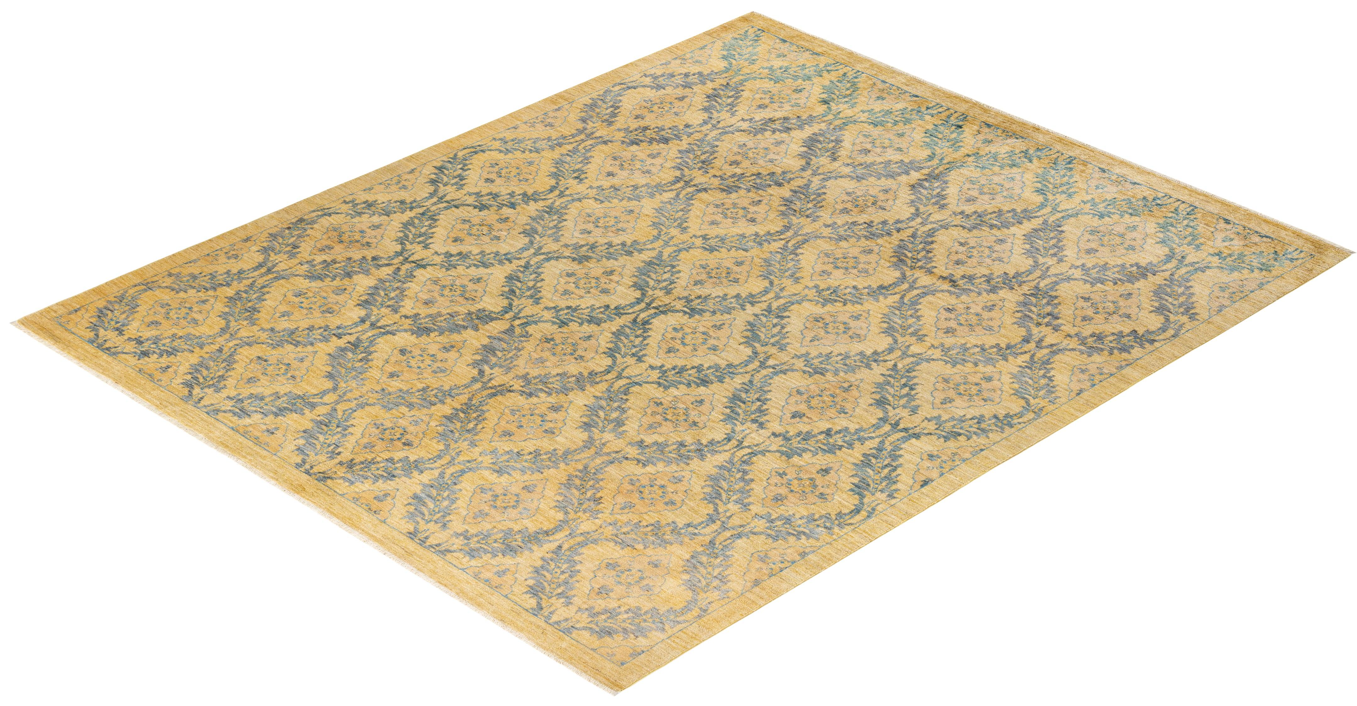 Contemporary Hand Knotted Eclectic Oriental Yellow Area Rug 7' 10" x 9' 8"
