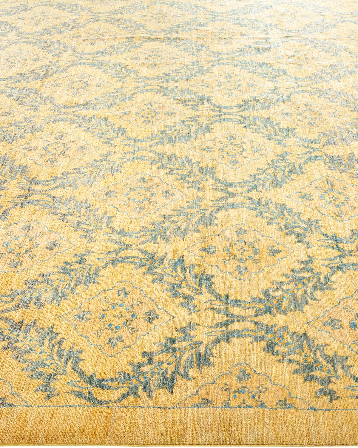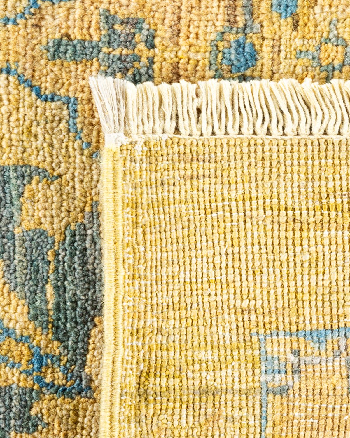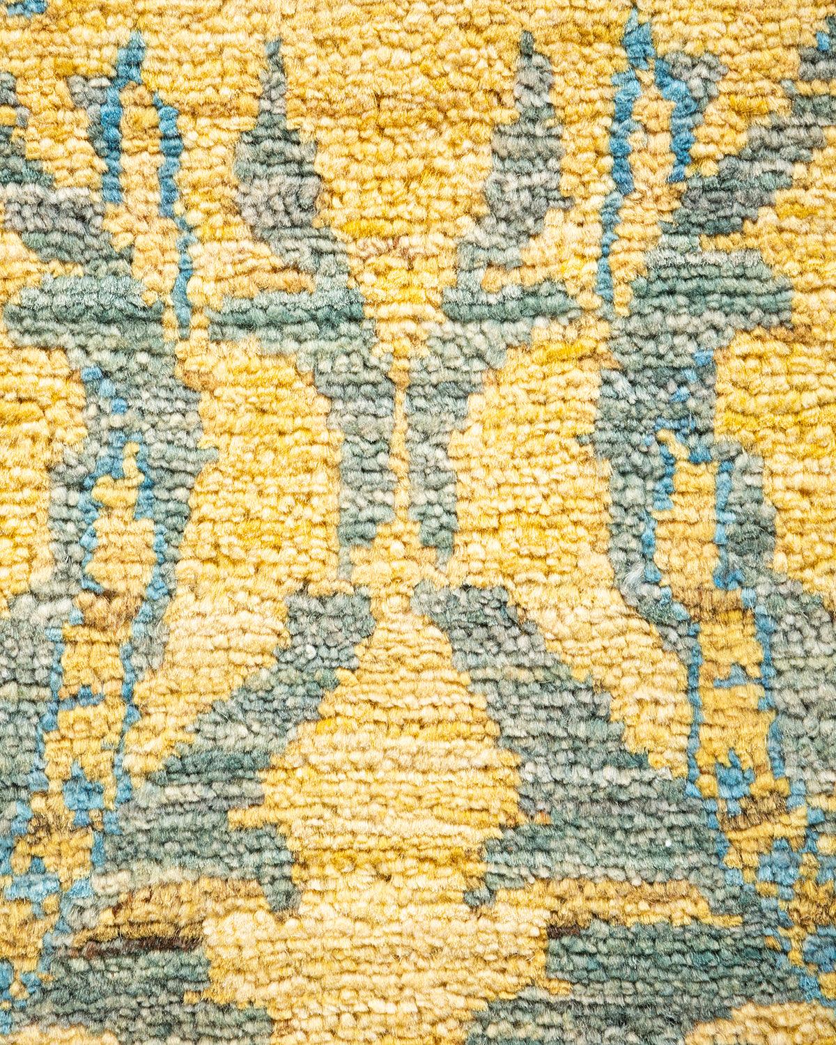 Contemporary Hand Knotted Eclectic Oriental Yellow Area Rug 7' 10" x 9' 8"