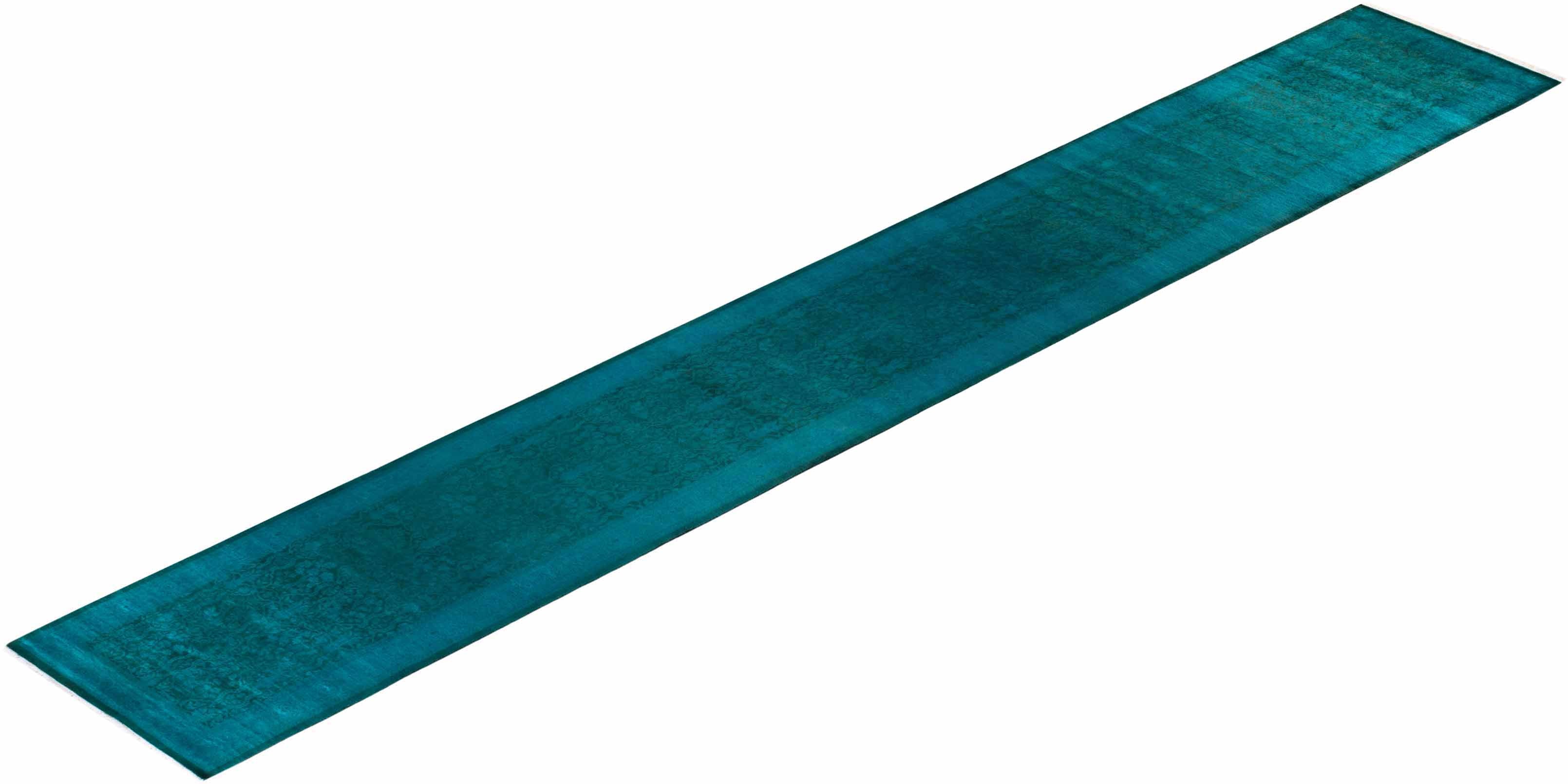 Contemporary Hand-Knotted Overdyed Blue Runner 2' 7" x 17' 9"