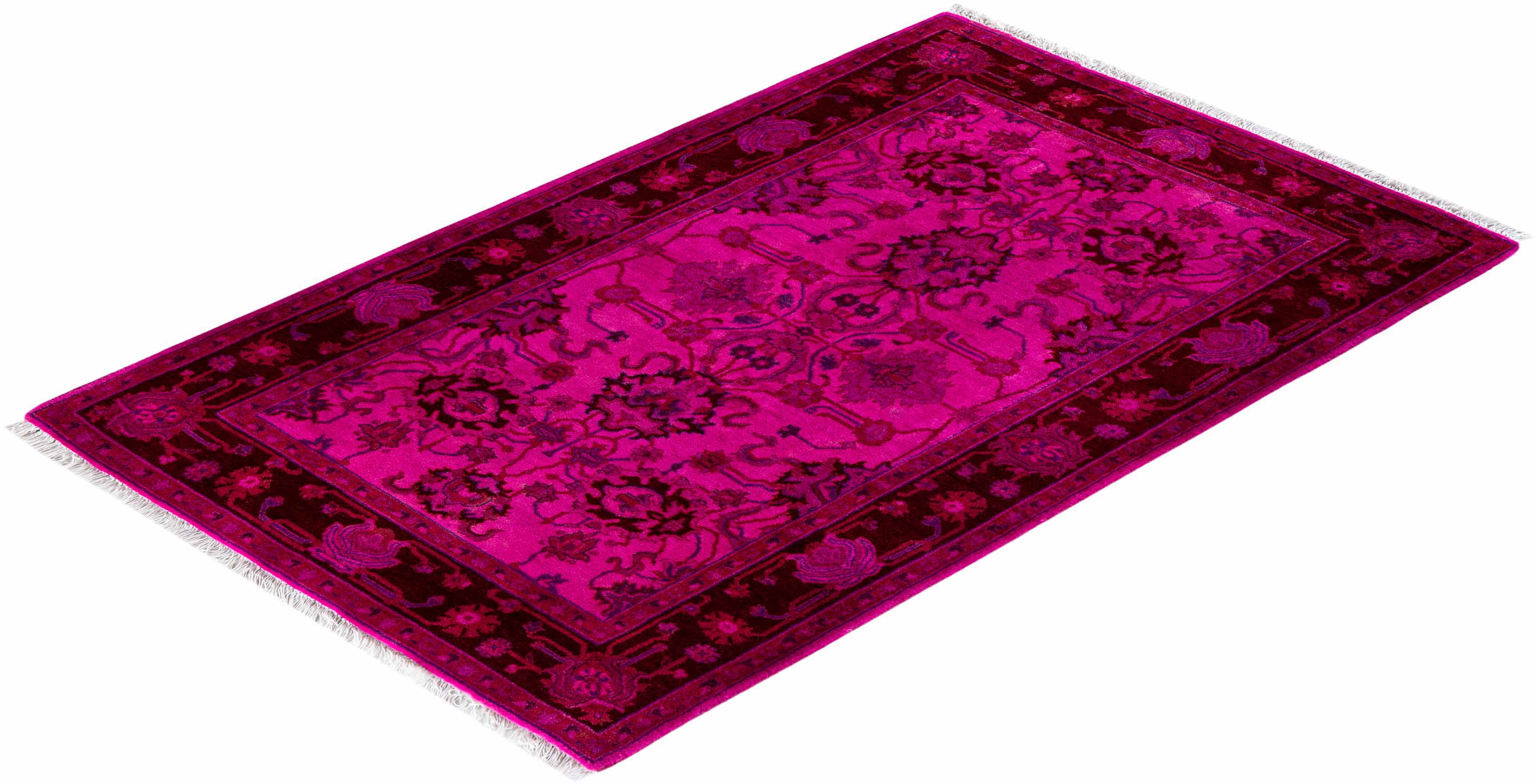 Contemporary Hand-Knotted Overdyed Pink Area Rug 2' 8" x 4' 3"