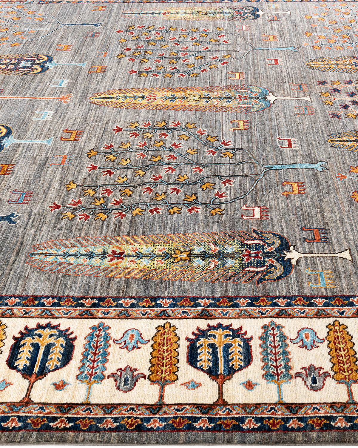 The rich textile tradition of western Africa inspired the Tribal collection of hand-knotted rugs. Incorporating a medley of geometric motifs, in palettes ranging from earthy to vivacious, these rugs bring a sense of energy as well as plush texture to any room.